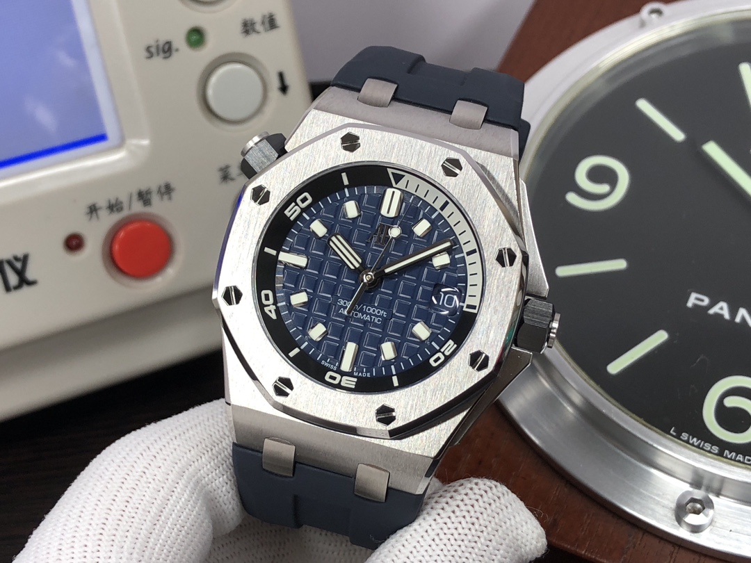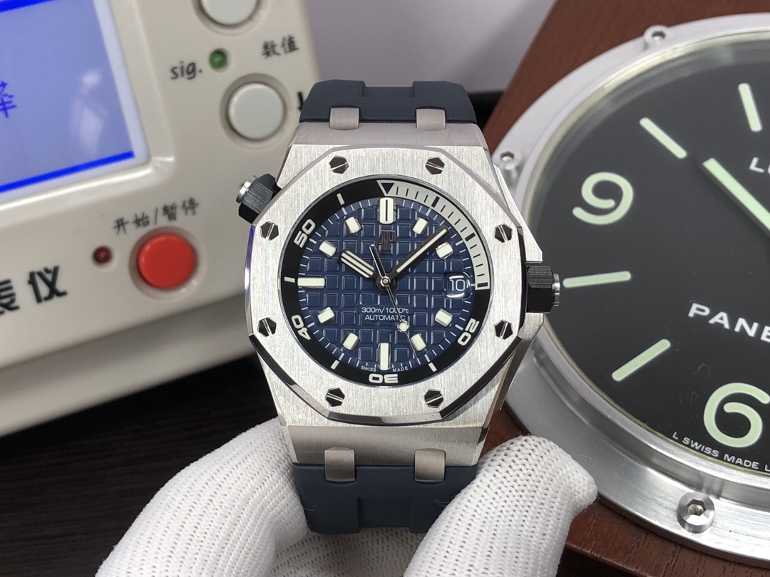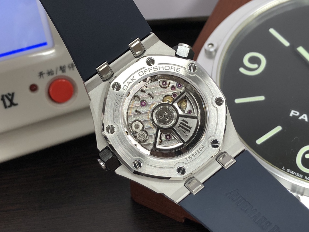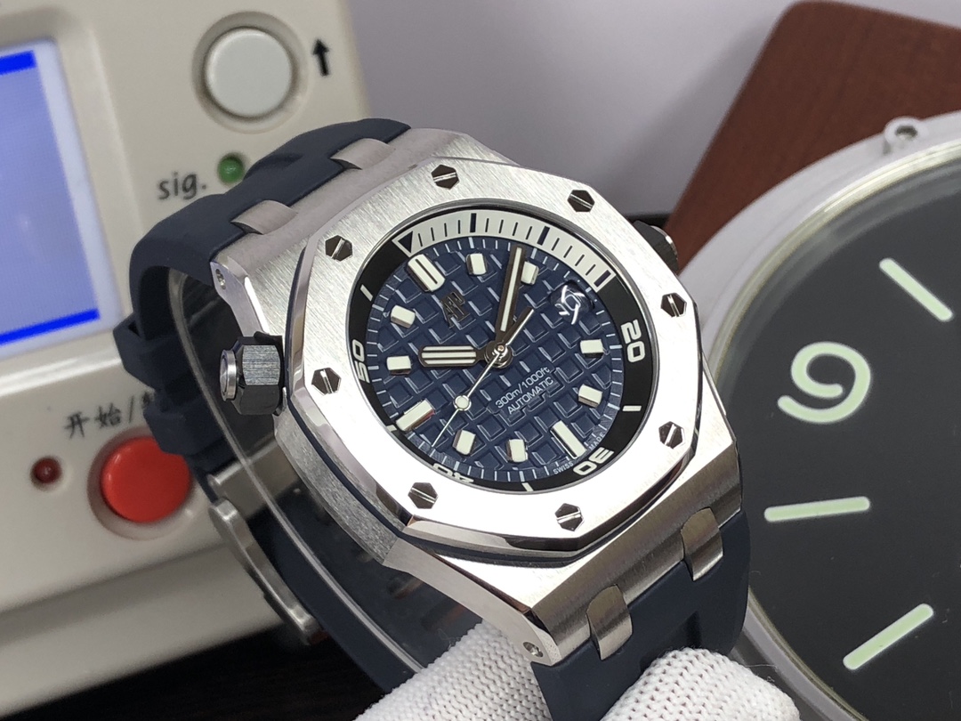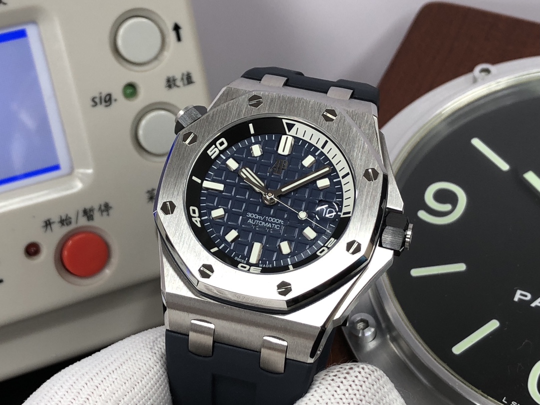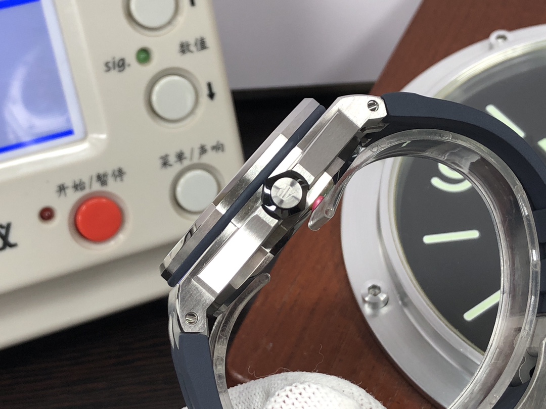 这款手表是AAAAA 1:1 质量 (非常棒). 使用了和原版一模一样的材料. 商标部分也保持了和爱彼/Audemars Piguet一样. 图片拍摄是实物手表拍摄, 您所收到的实物保证和我们图片一模一样.