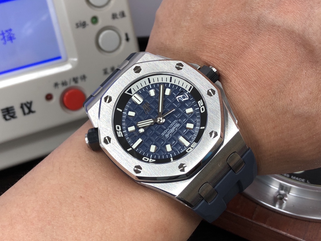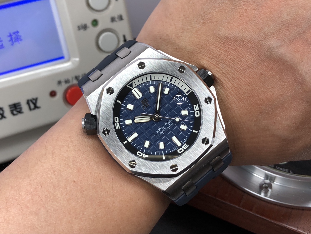 这款手表是AAAAA 1:1 质量 (非常棒). 使用了和原版一模一样的材料. 商标部分也保持了和爱彼/Audemars Piguet一样. 图片拍摄是实物手表拍摄, 您所收到的实物保证和我们图片一模一样.