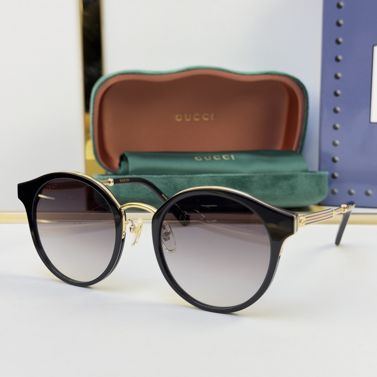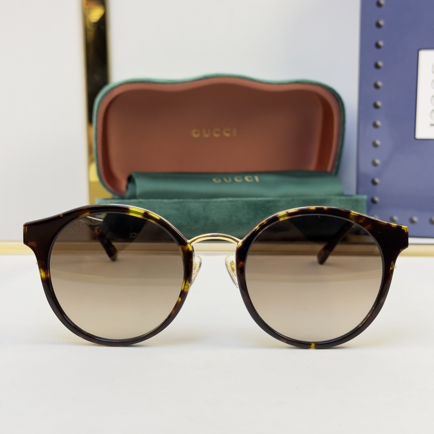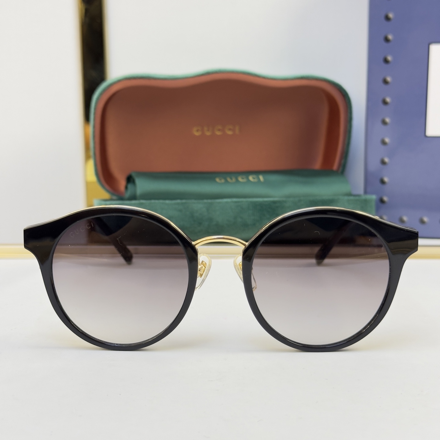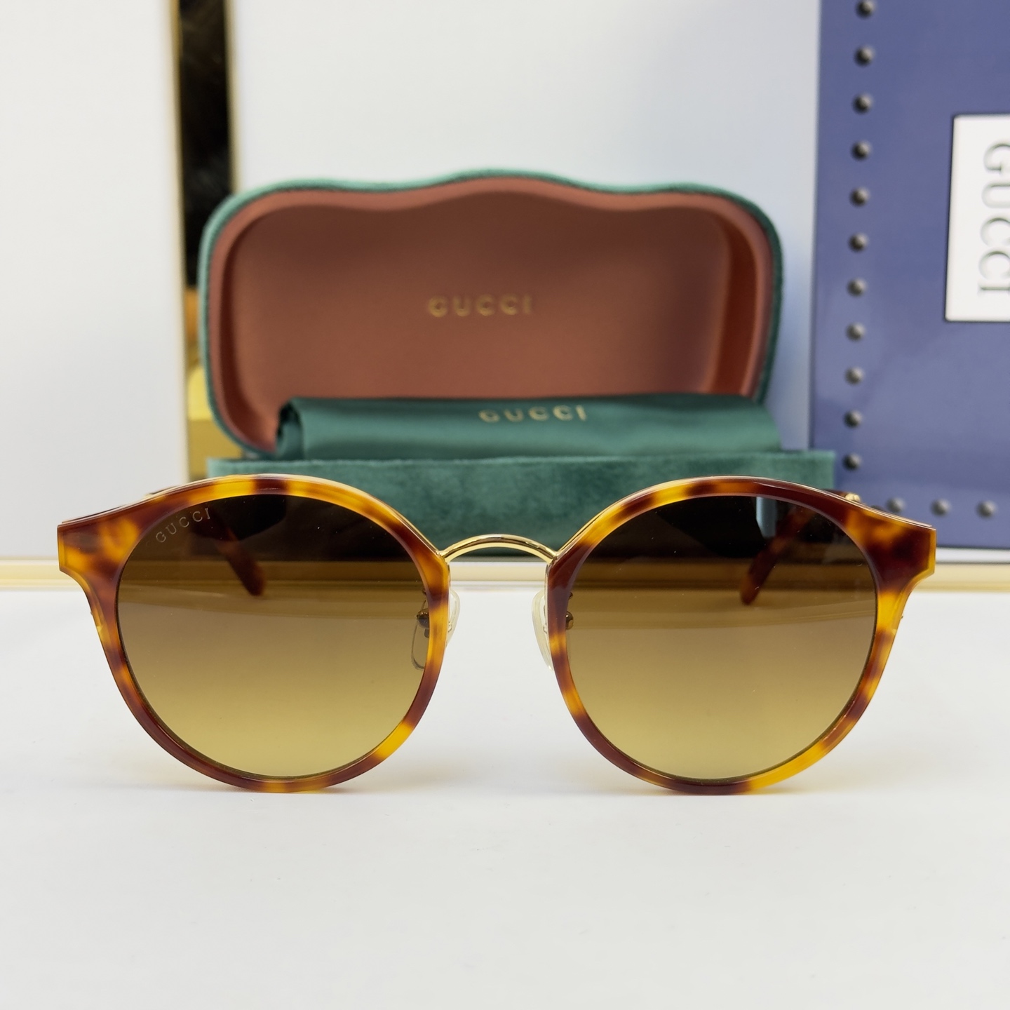 这款太阳眼镜是AAAAA 1:1 质量 (非常棒). 使用了和原版一模一样的材料. 商标部分也保持了和古奇/Gucci一样. 图片拍摄是实物太阳眼镜拍摄, 您所收到的实物保证和我们图片一模一样.