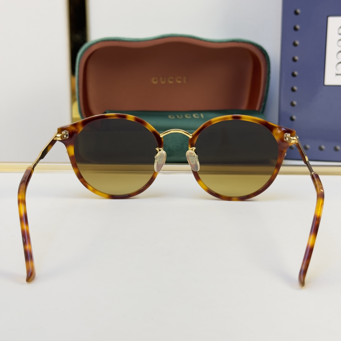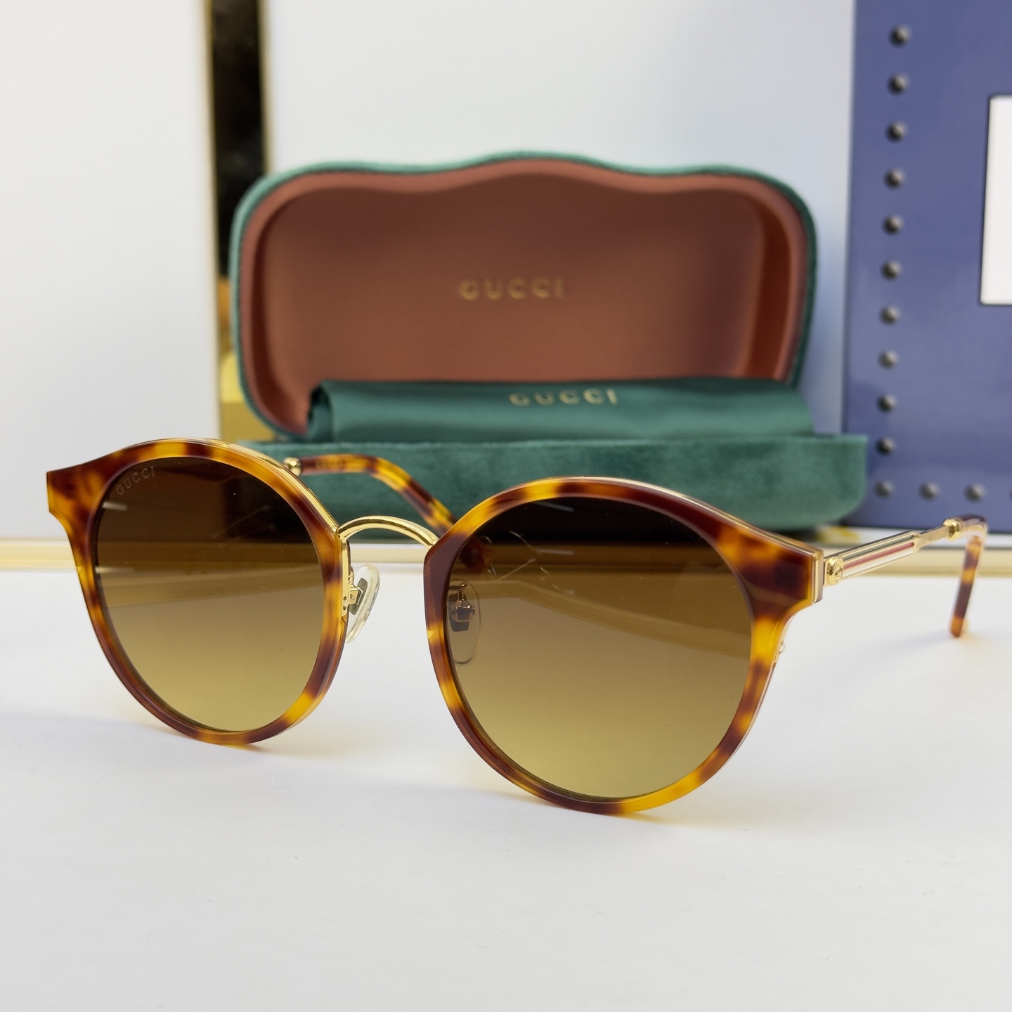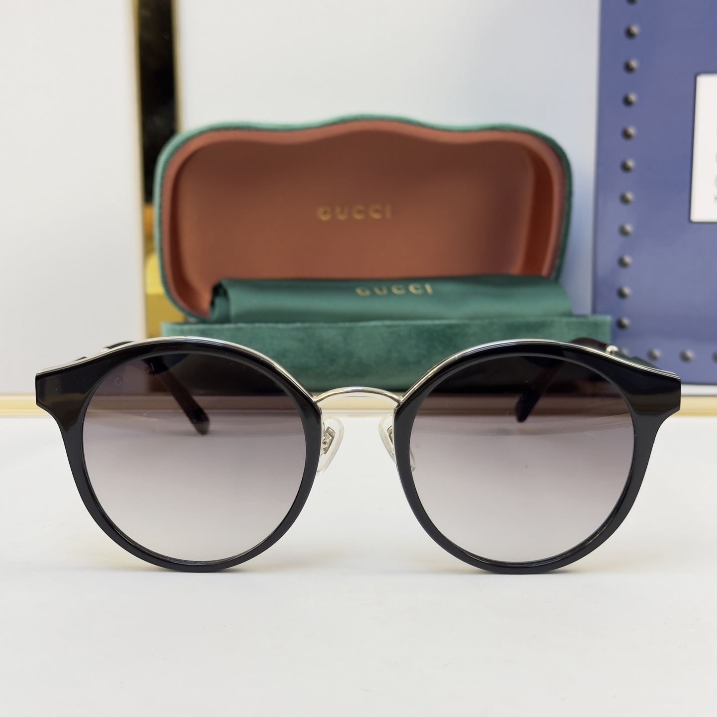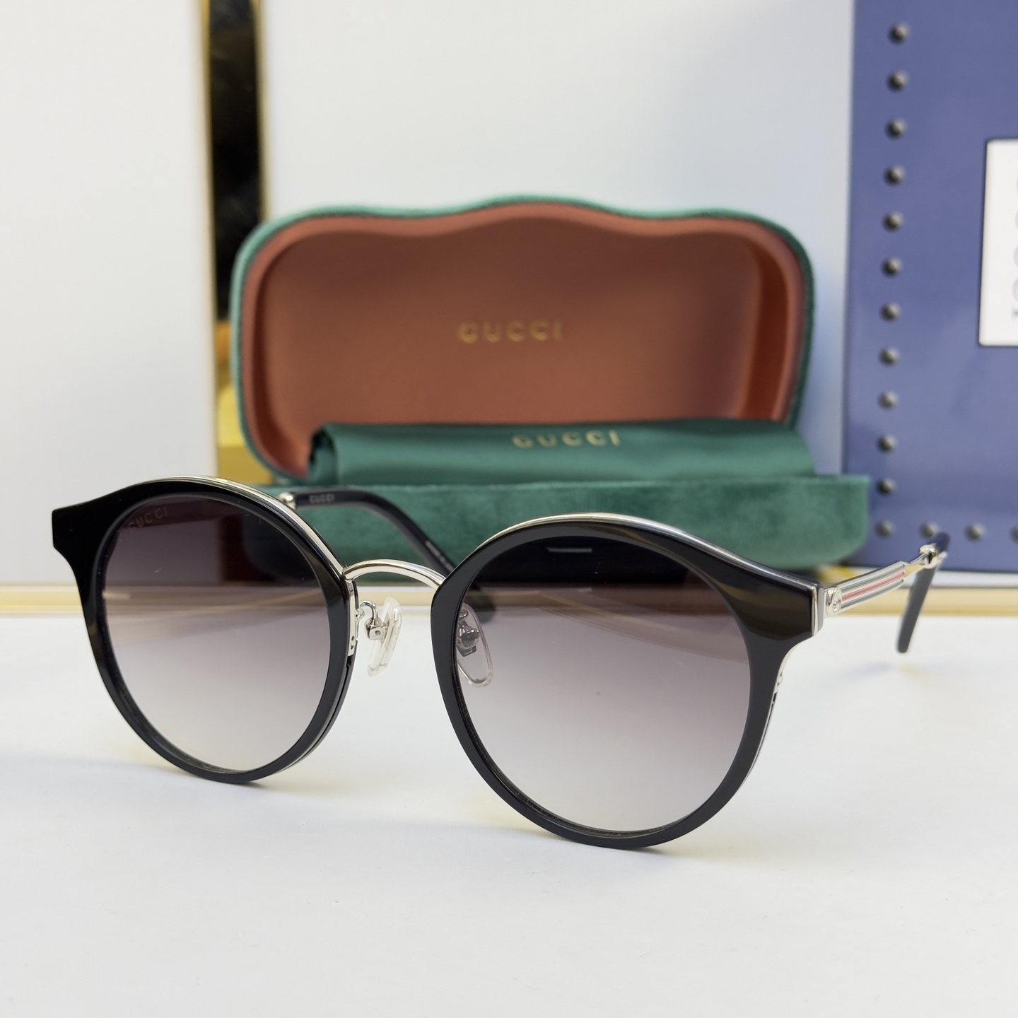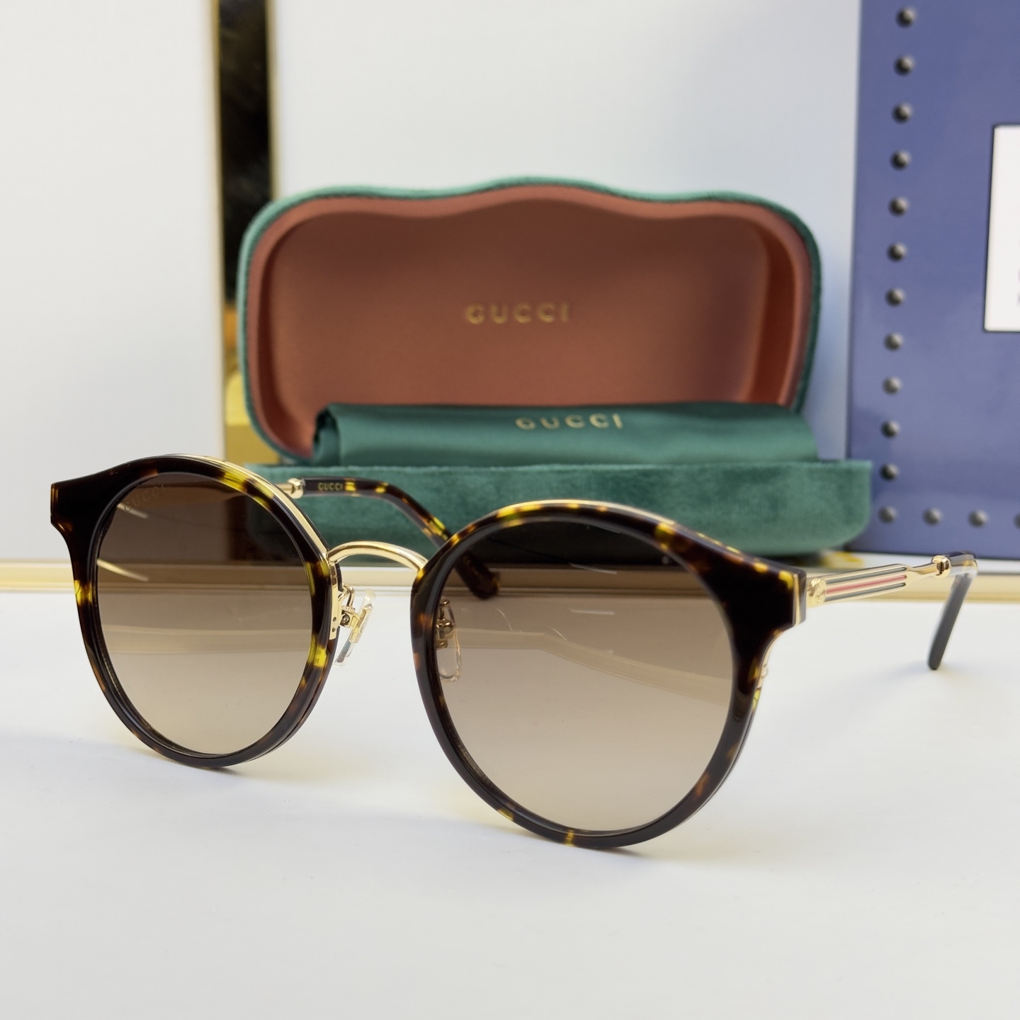 这款太阳眼镜是AAAAA 1:1 质量 (非常棒). 使用了和原版一模一样的材料. 商标部分也保持了和古奇/Gucci一样. 图片拍摄是实物太阳眼镜拍摄, 您所收到的实物保证和我们图片一模一样.