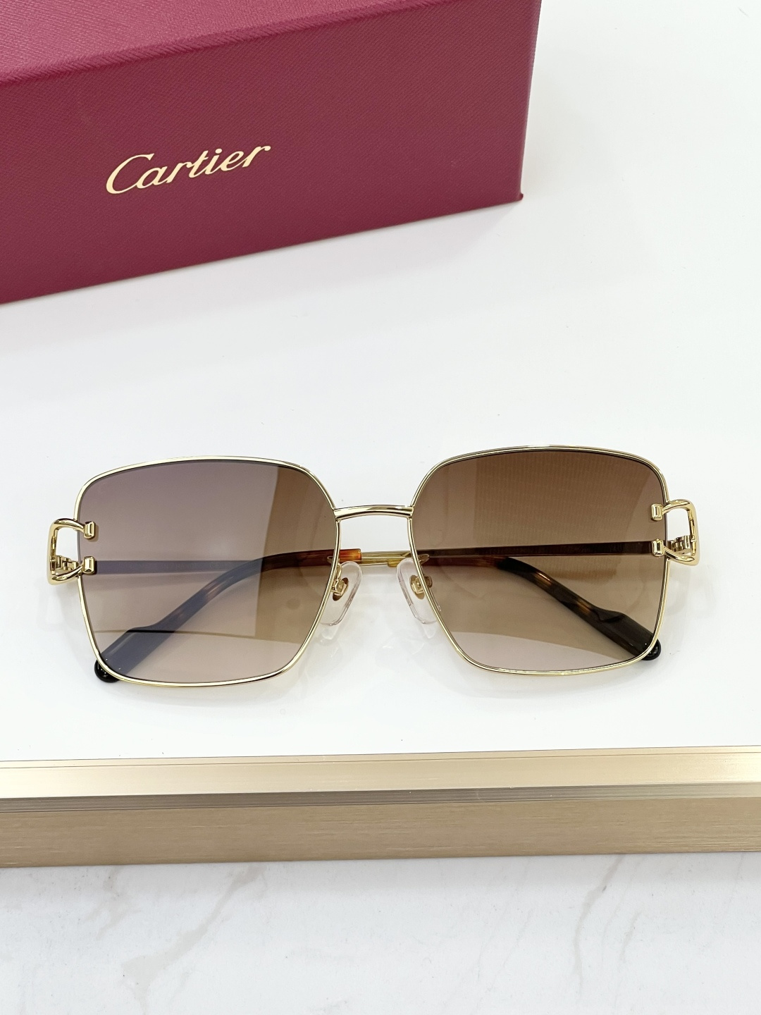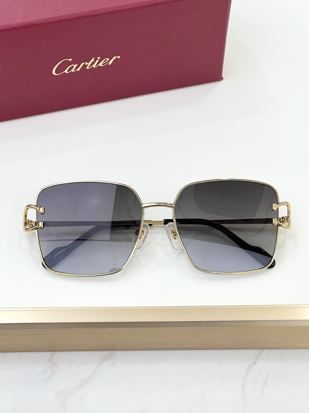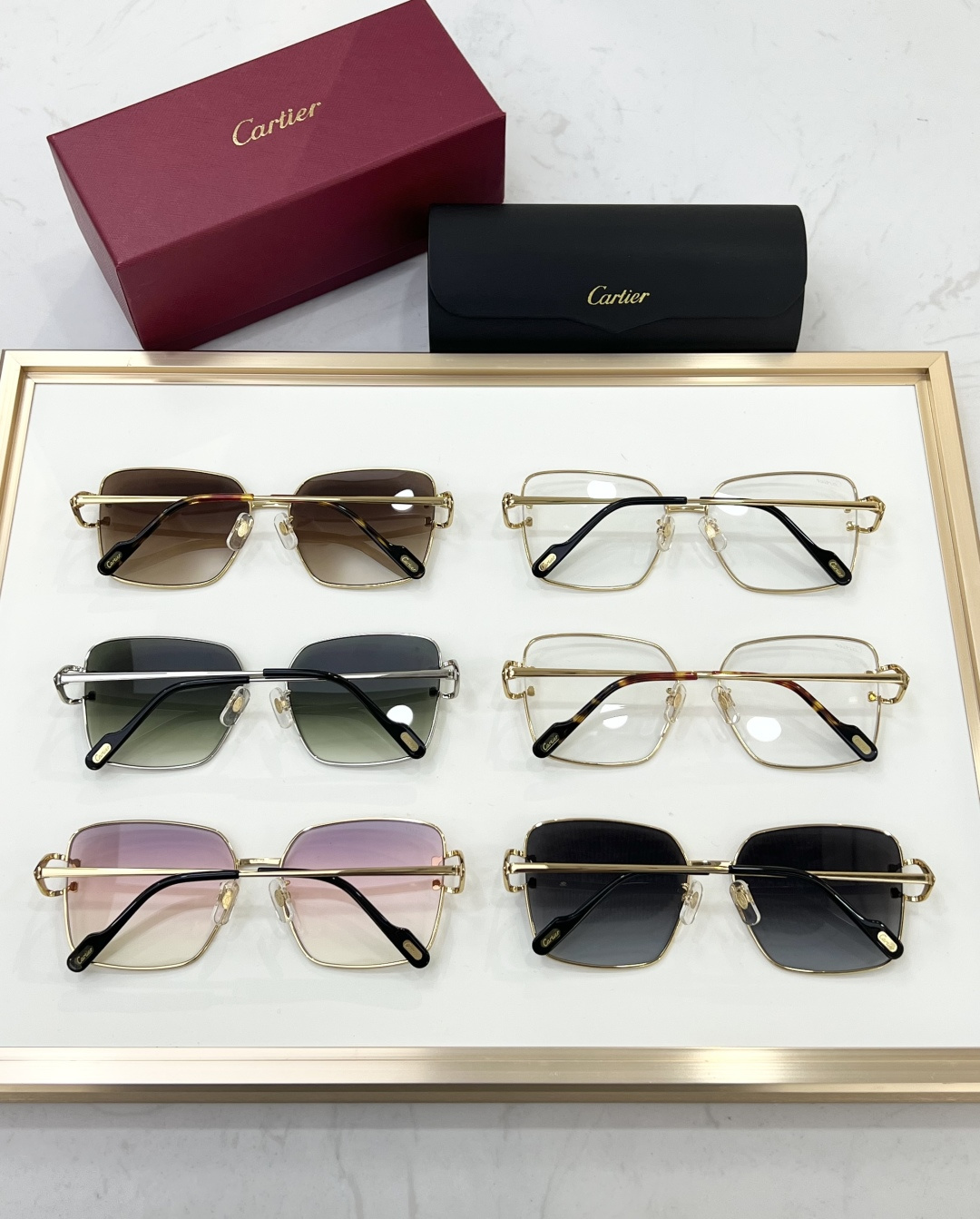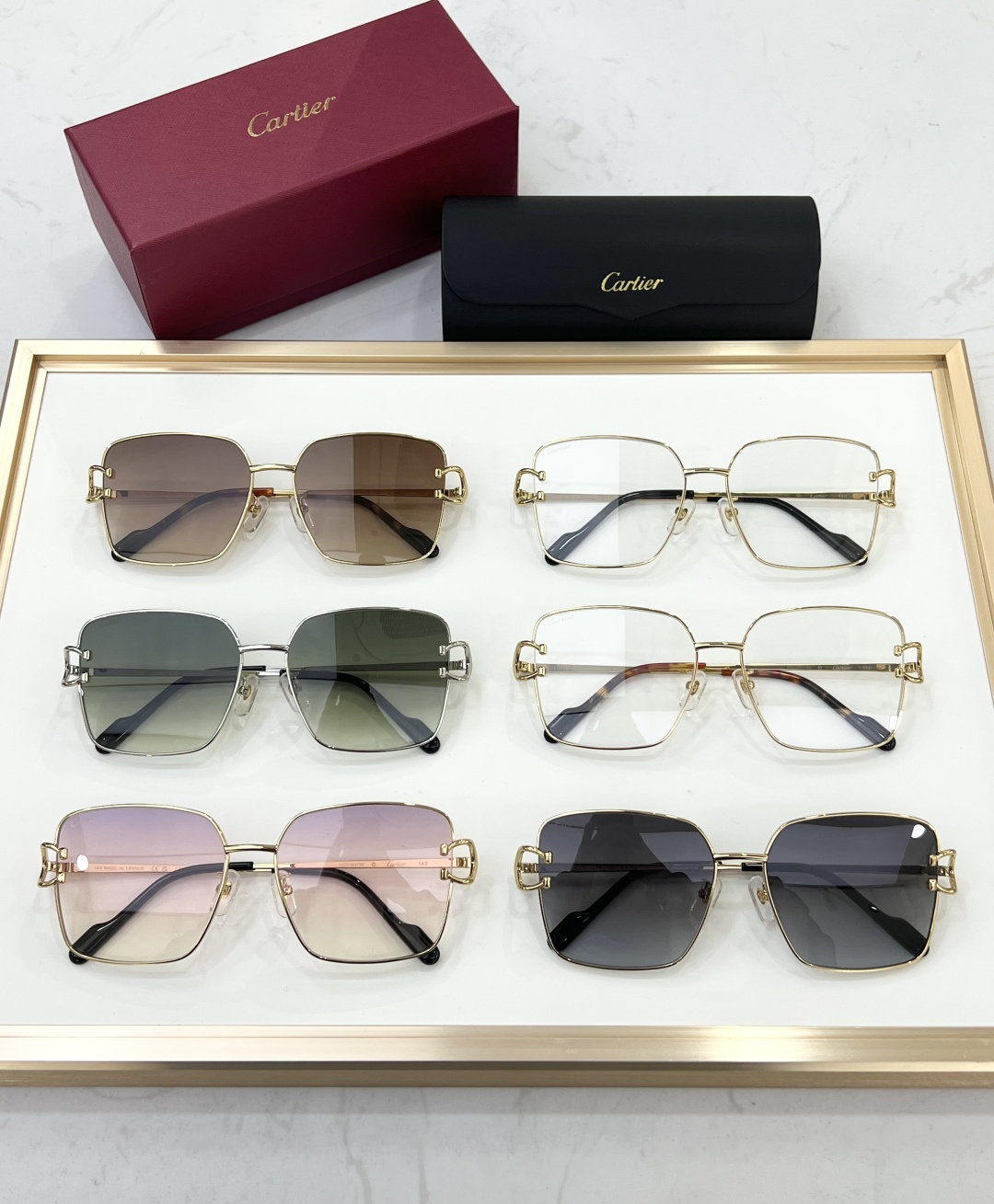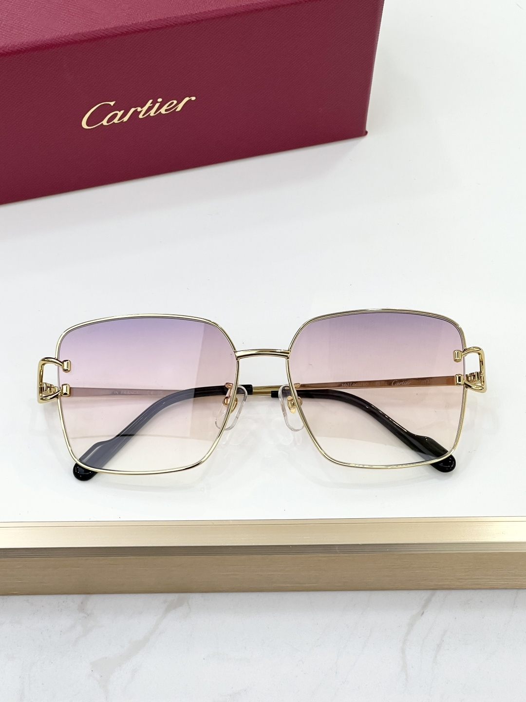 这款太阳眼镜是AAAAA 1:1 质量 (非常棒). 使用了和原版一模一样的材料. 商标部分也保持了和卡地亚/Cartier一样. 图片拍摄是实物太阳眼镜拍摄, 您所收到的实物保证和我们图片一模一样.
