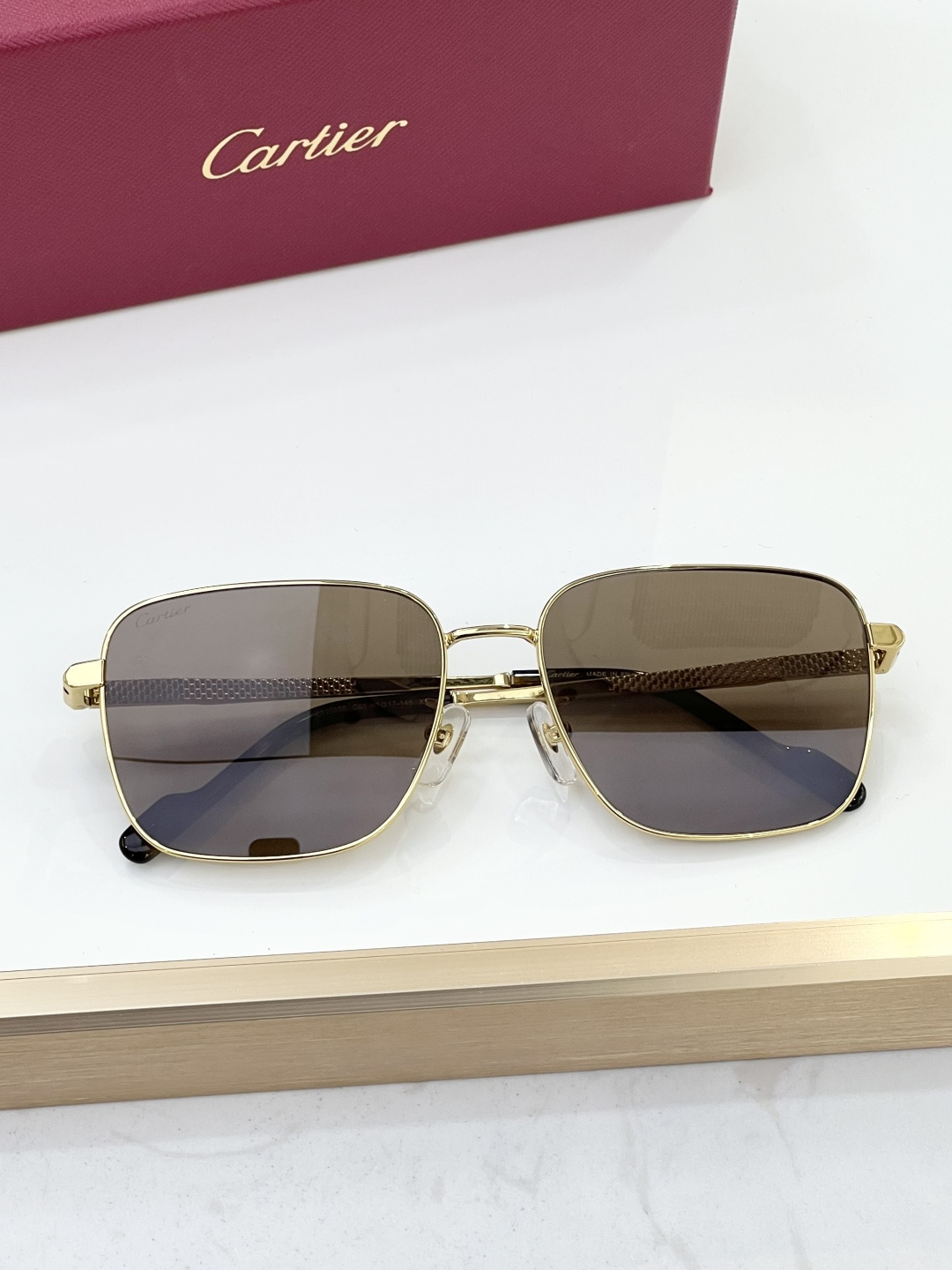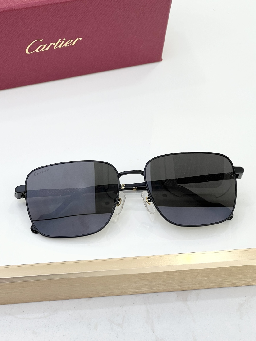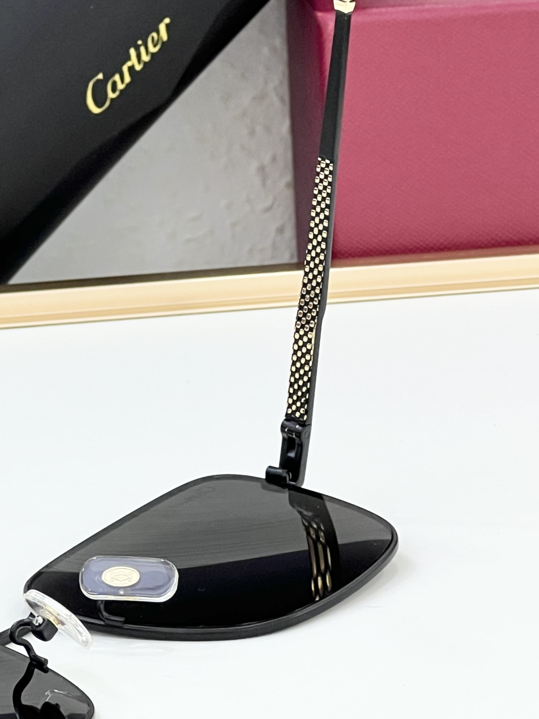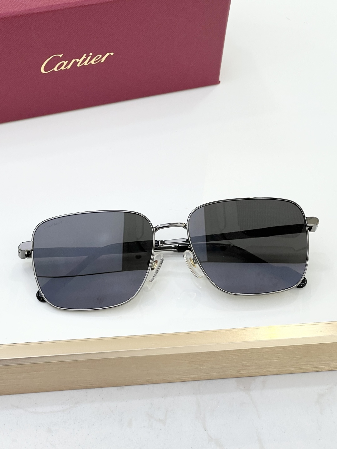 这款太阳眼镜是AAAAA 1:1 质量 (非常棒). 使用了和原版一模一样的材料. 商标部分也保持了和卡地亚/Cartier一样. 图片拍摄是实物太阳眼镜拍摄, 您所收到的实物保证和我们图片一模一样.