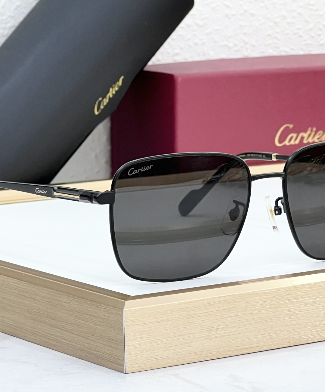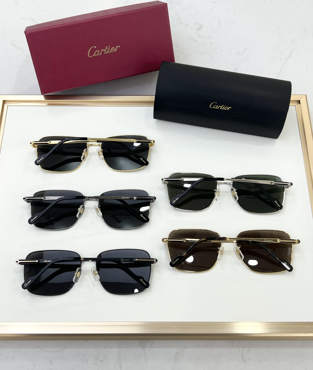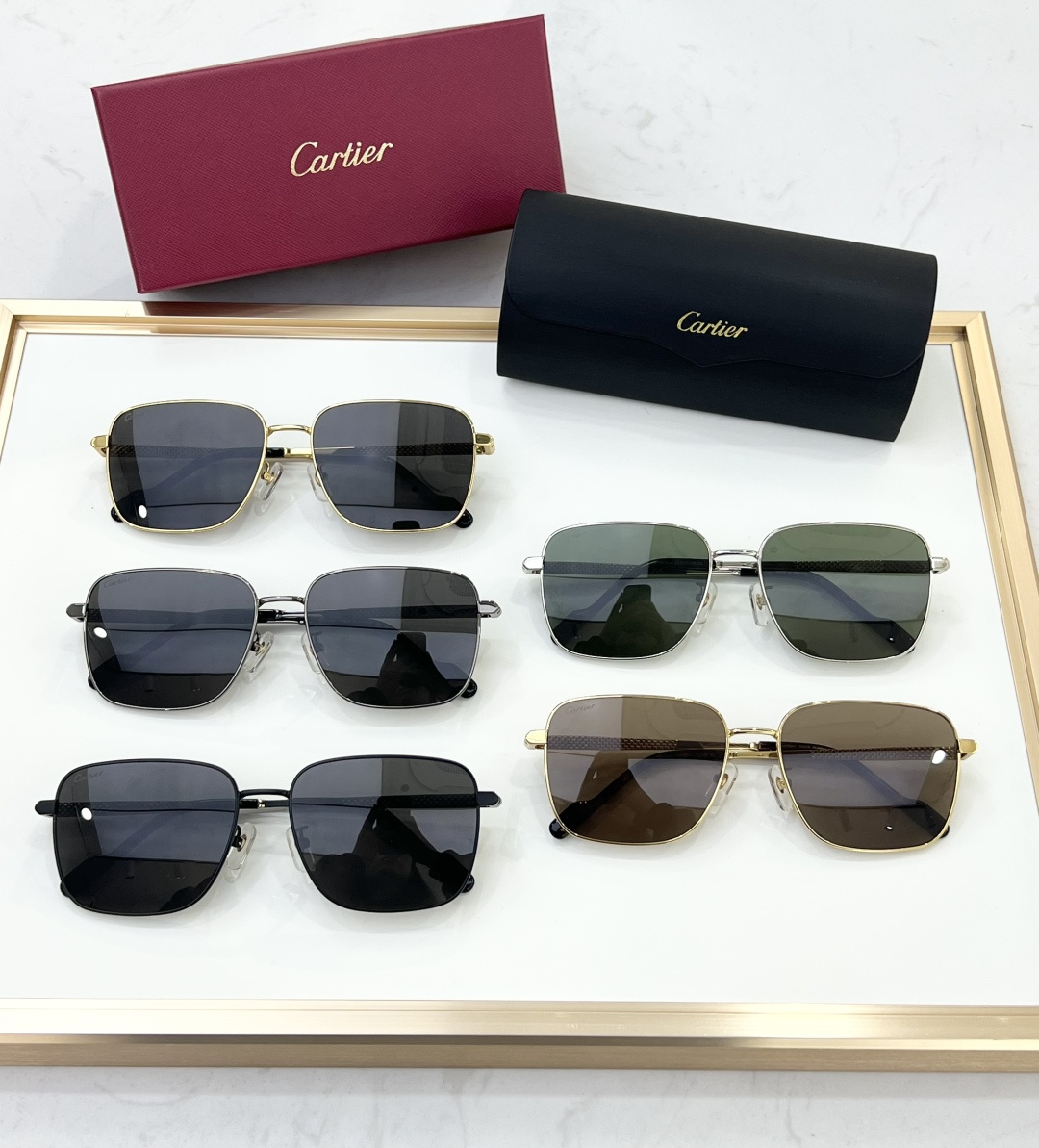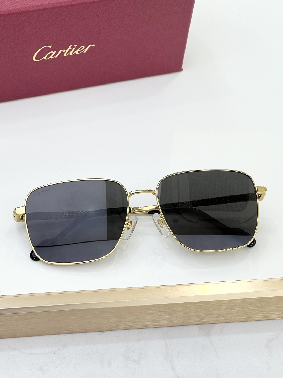 这款太阳眼镜是AAAAA 1:1 质量 (非常棒). 使用了和原版一模一样的材料. 商标部分也保持了和卡地亚/Cartier一样. 图片拍摄是实物太阳眼镜拍摄, 您所收到的实物保证和我们图片一模一样.