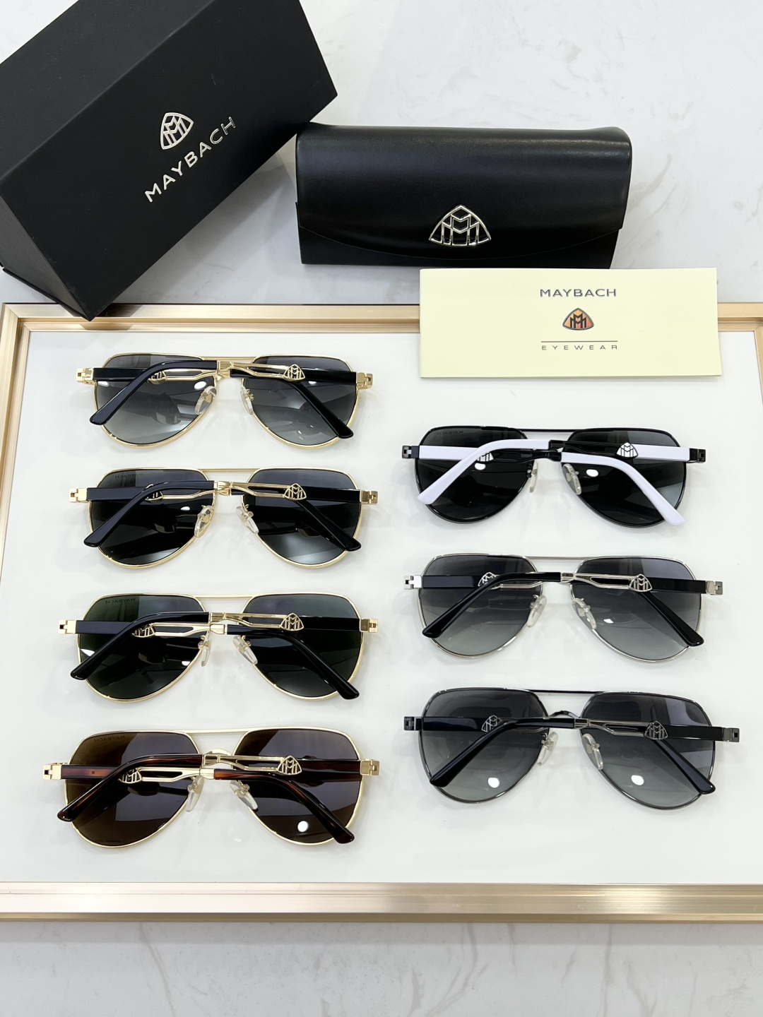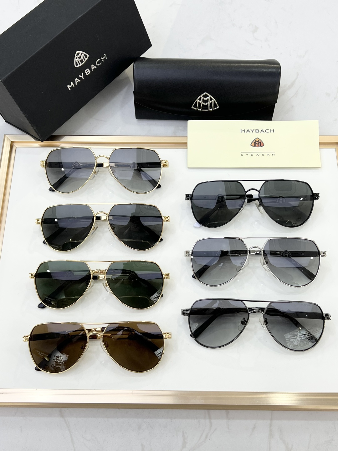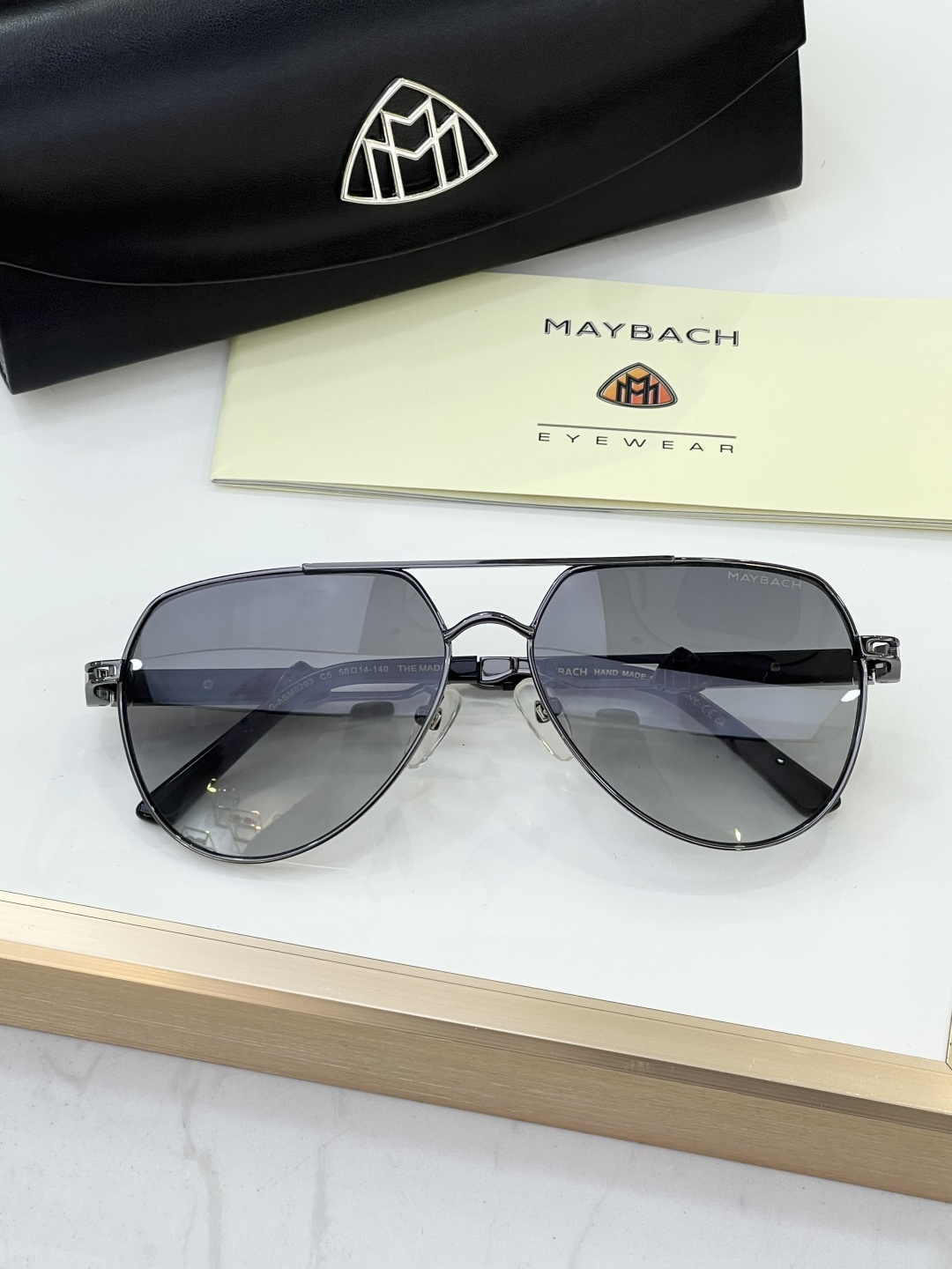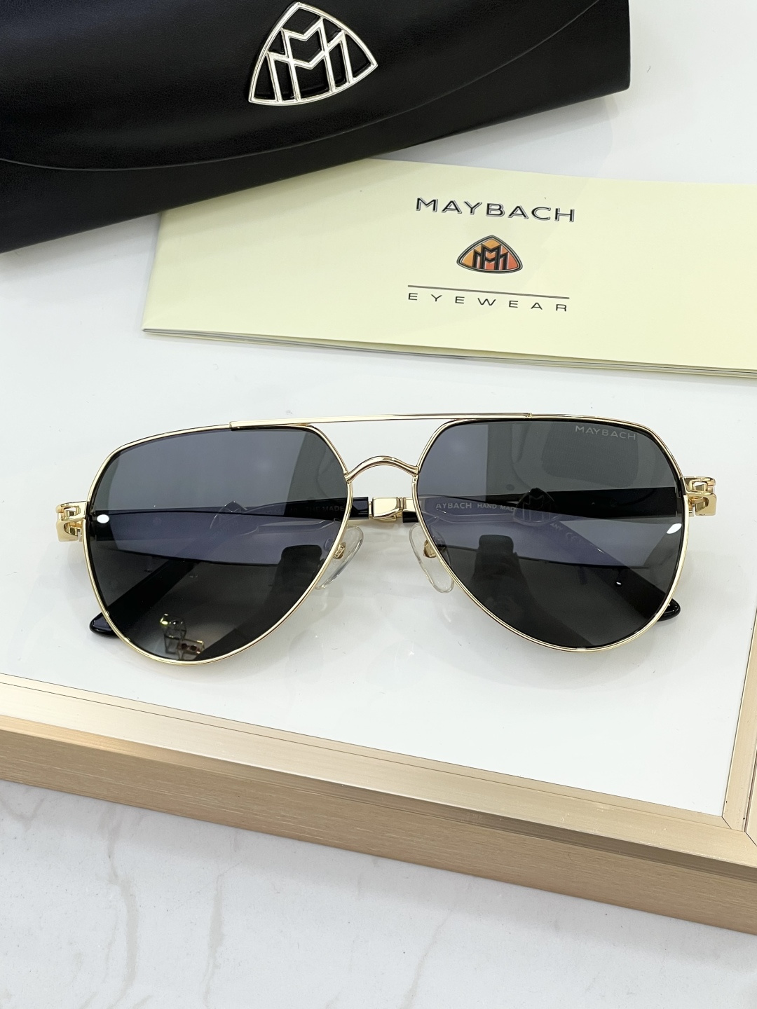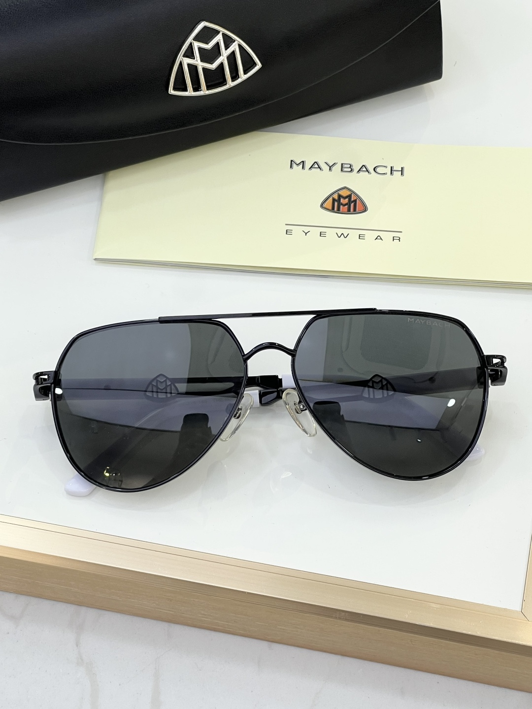 这款太阳眼镜是AAAAA 1:1 质量 (非常棒). 使用了和原版一模一样的材料. 商标部分也保持了和MAYBACH一样. 图片拍摄是实物太阳眼镜拍摄, 您所收到的实物保证和我们图片一模一样.