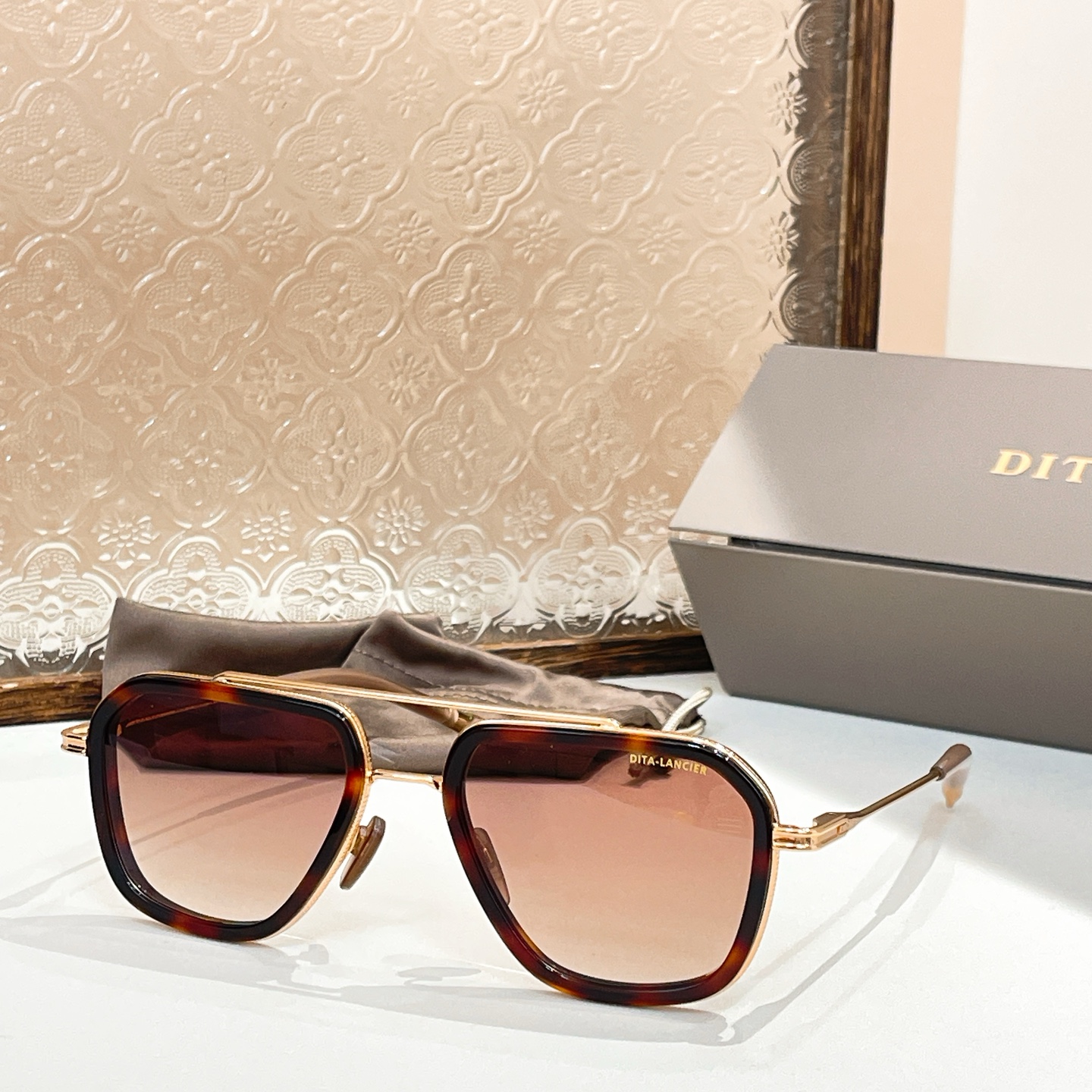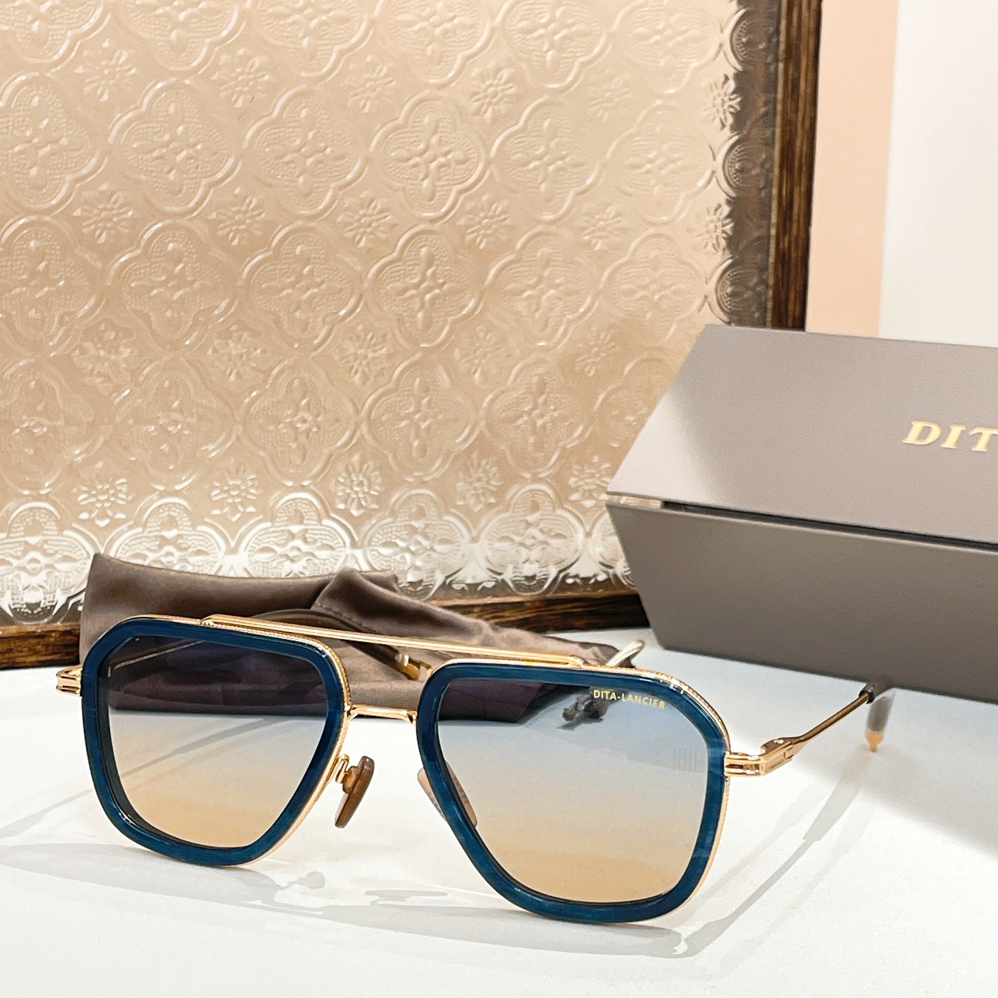 这款太阳眼镜是AAAAA 1:1 质量 (非常棒). 使用了和原版一模一样的材料. 商标部分也保持了和迪塔/Dita一样. 图片拍摄是实物太阳眼镜拍摄, 您所收到的实物保证和我们图片一模一样.
