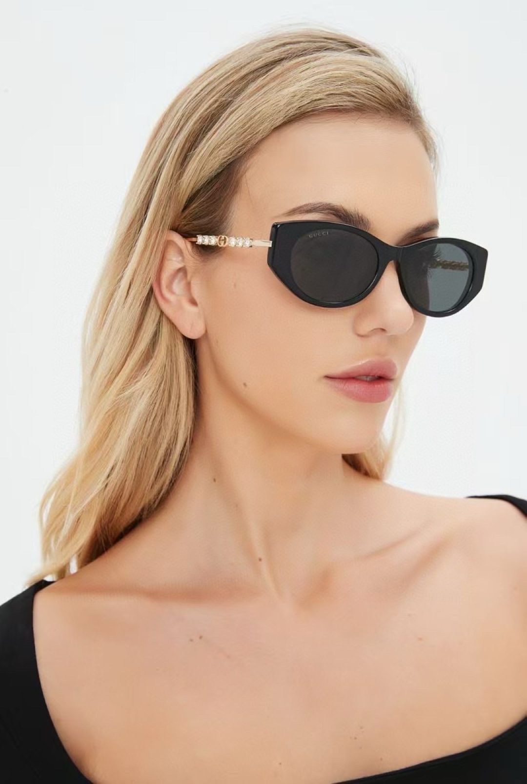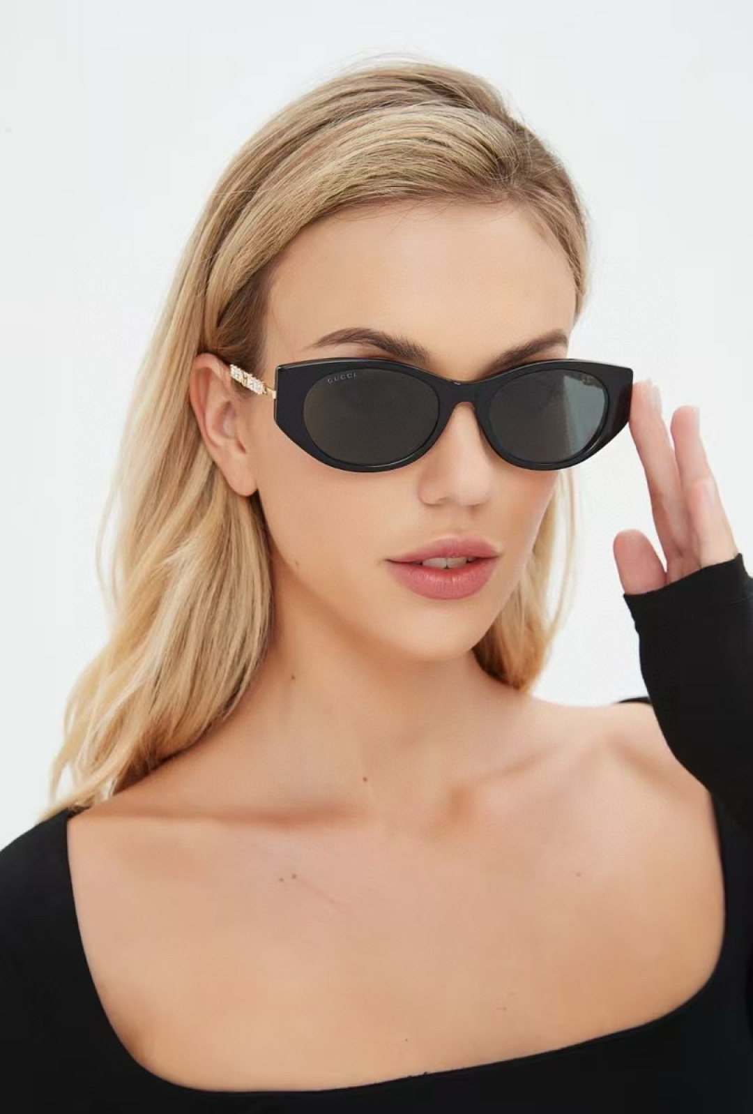 这款太阳眼镜是AAAAA 1:1 质量 (非常棒). 使用了和原版一模一样的材料. 商标部分也保持了和古奇/Gucci一样. 图片拍摄是实物太阳眼镜拍摄, 您所收到的实物保证和我们图片一模一样.