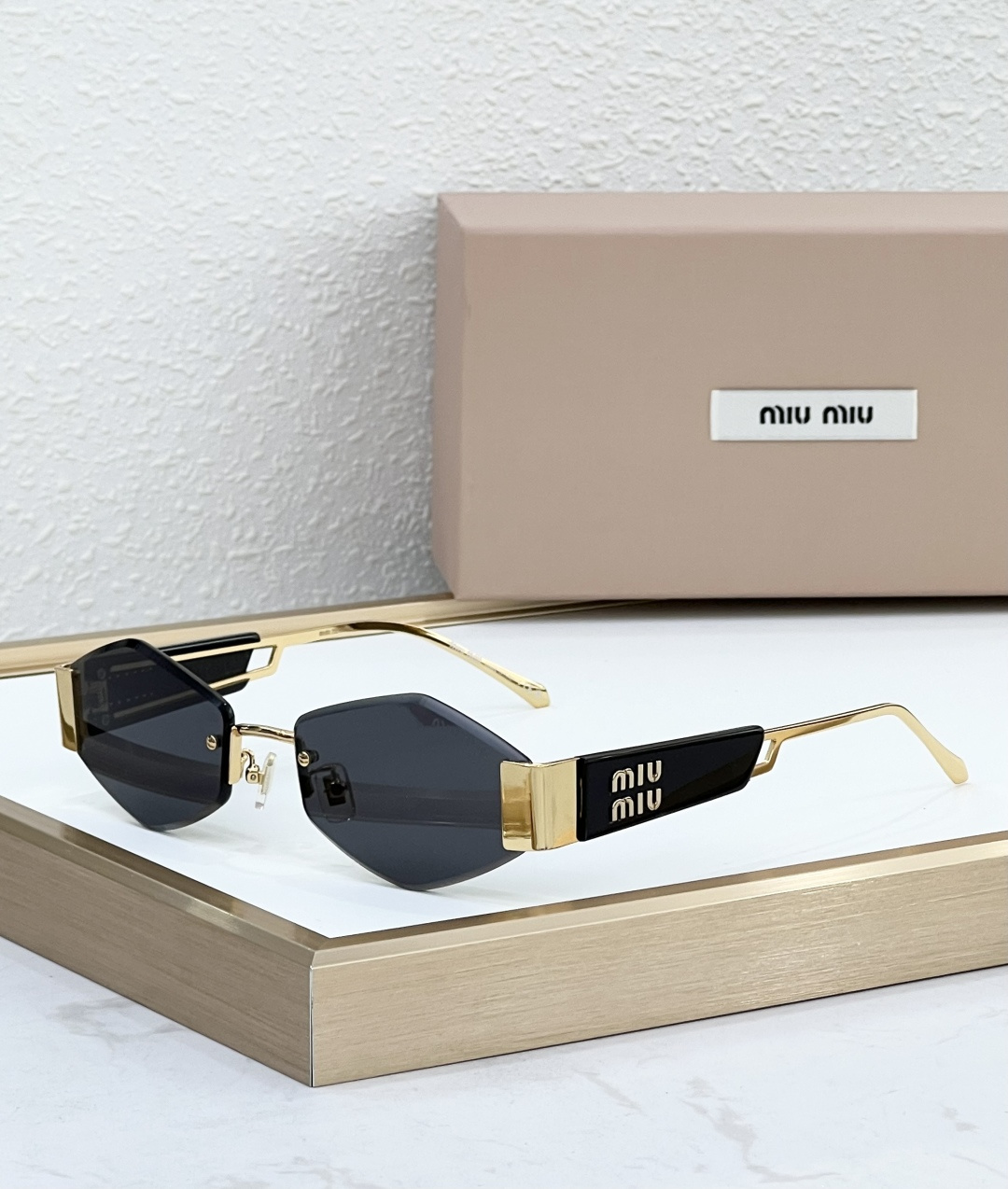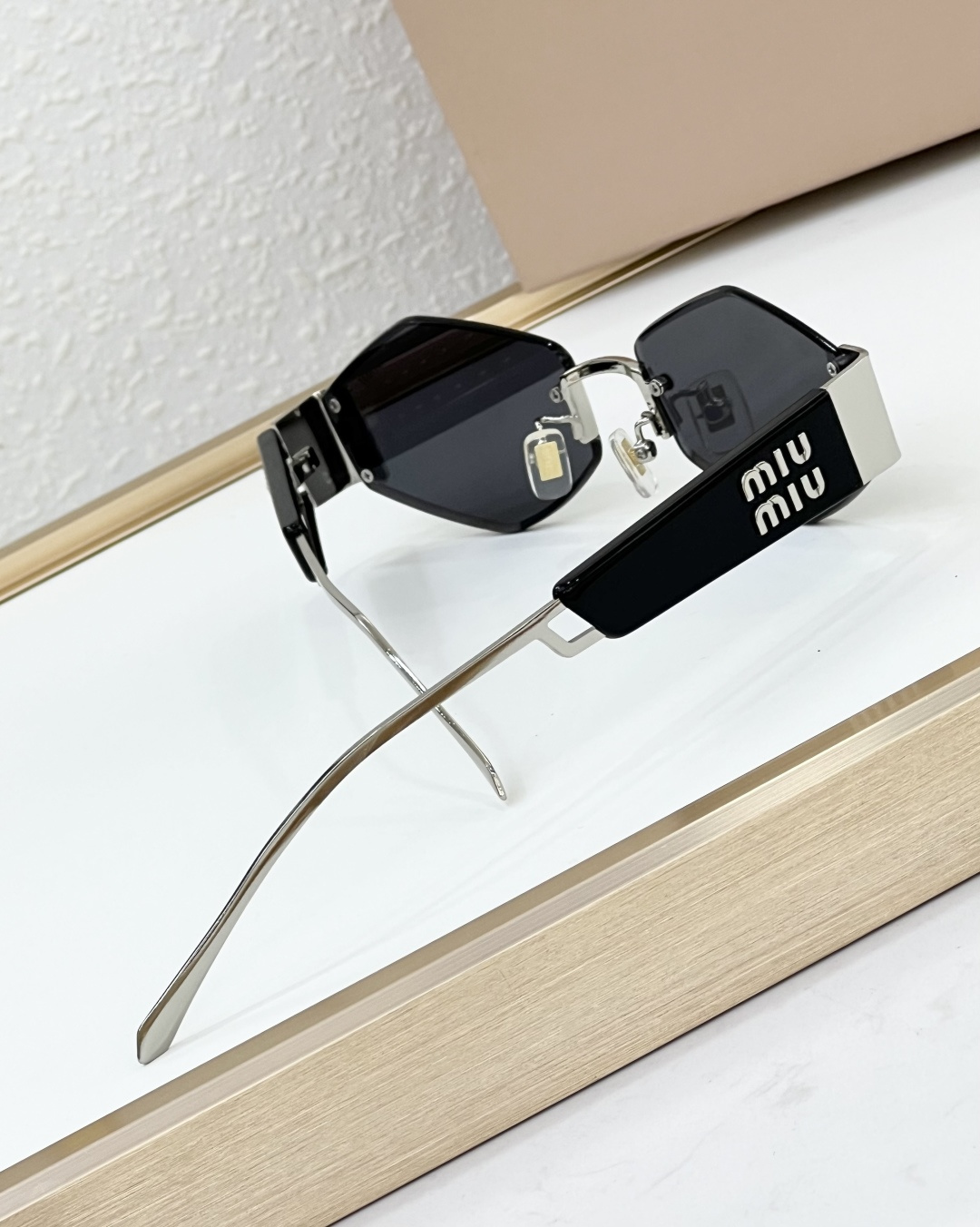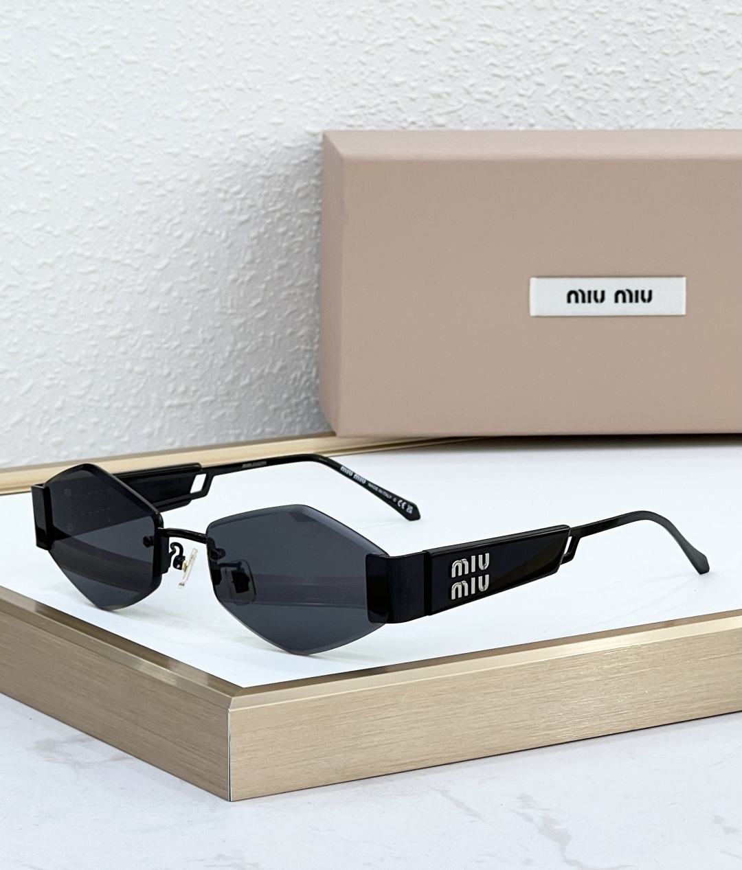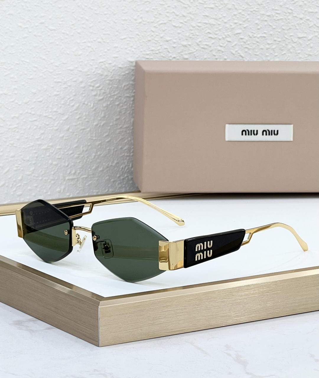 这款太阳眼镜是AAAAA 1:1 质量 (非常棒). 使用了和原版一模一样的材料. 商标部分也保持了和缪缪/Miu Miu一样. 图片拍摄是实物太阳眼镜拍摄, 您所收到的实物保证和我们图片一模一样.