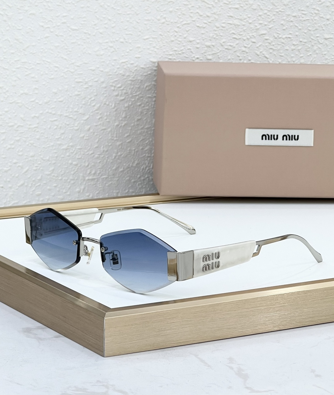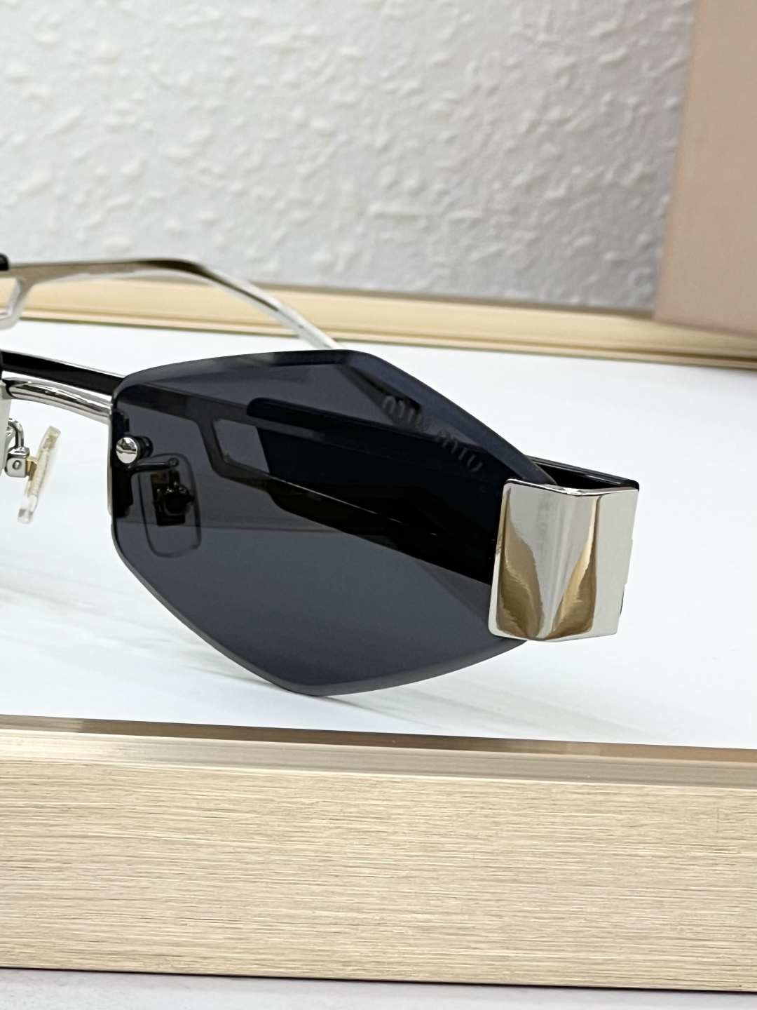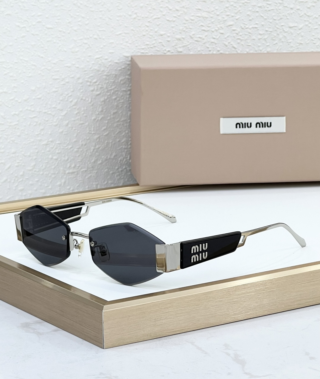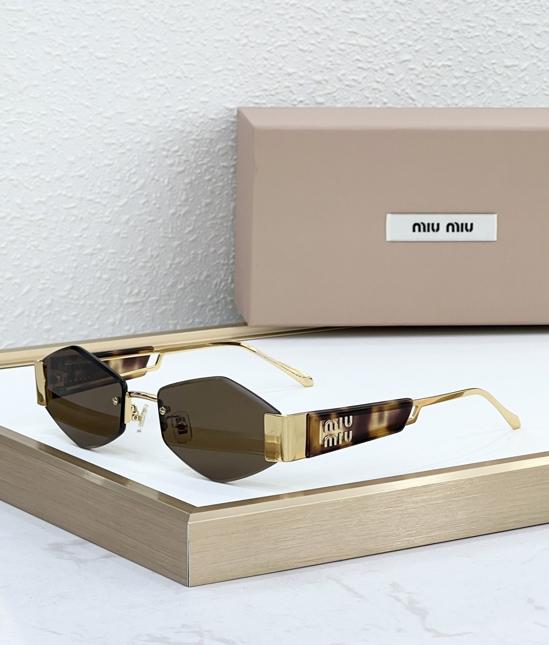 这款太阳眼镜是AAAAA 1:1 质量 (非常棒). 使用了和原版一模一样的材料. 商标部分也保持了和缪缪/Miu Miu一样. 图片拍摄是实物太阳眼镜拍摄, 您所收到的实物保证和我们图片一模一样.