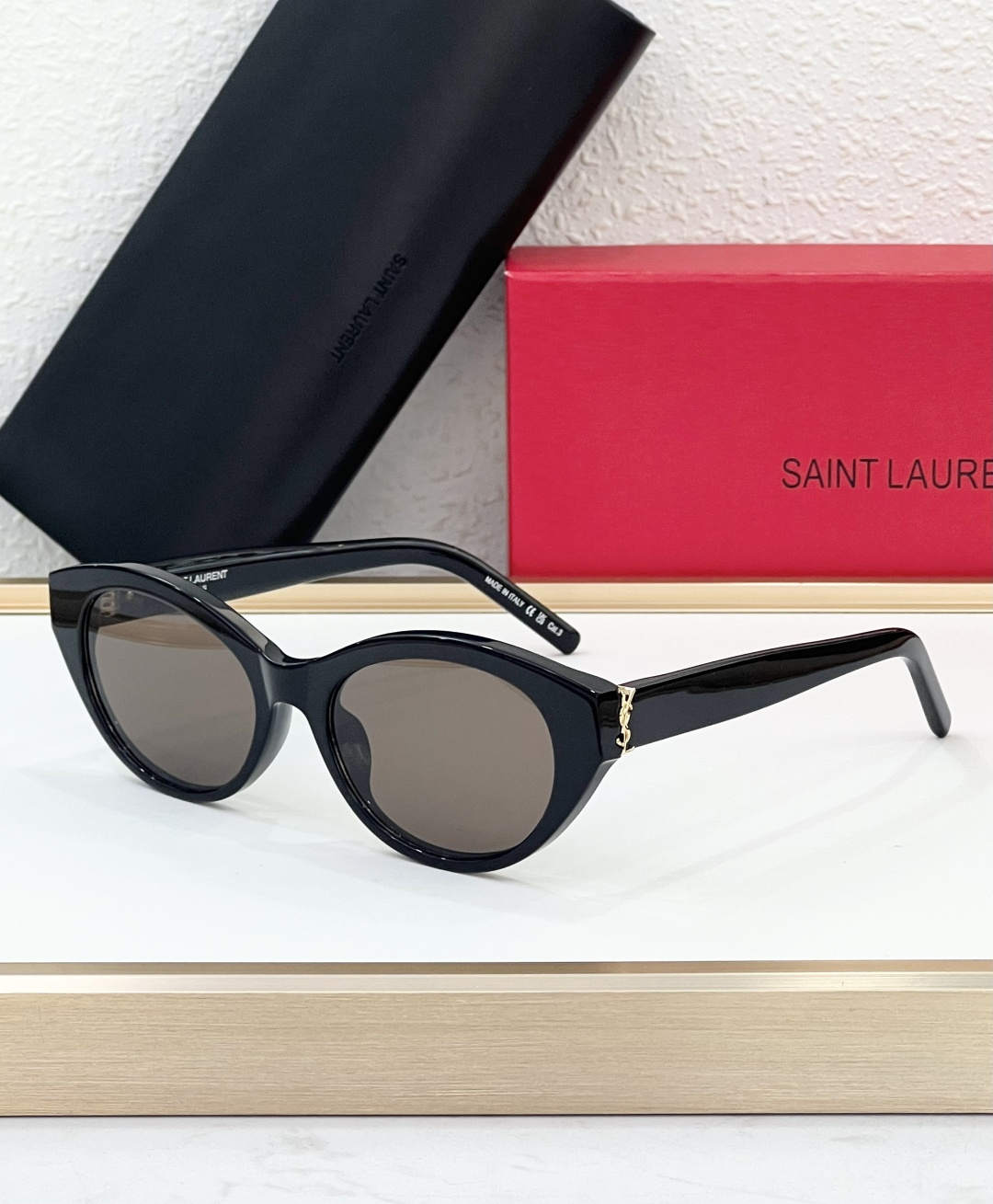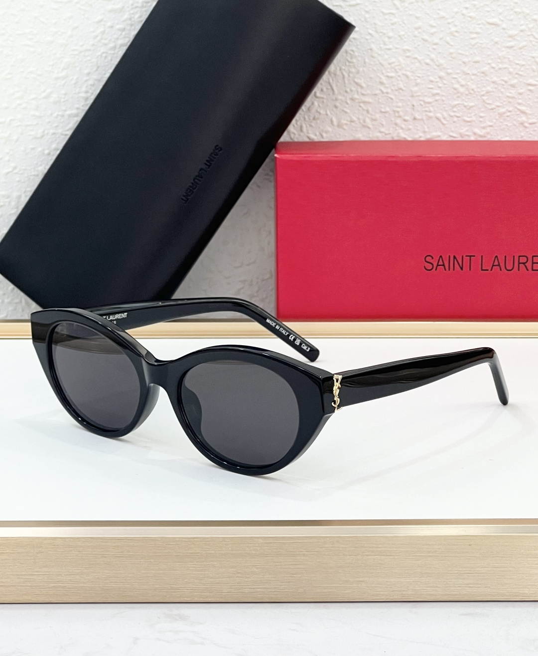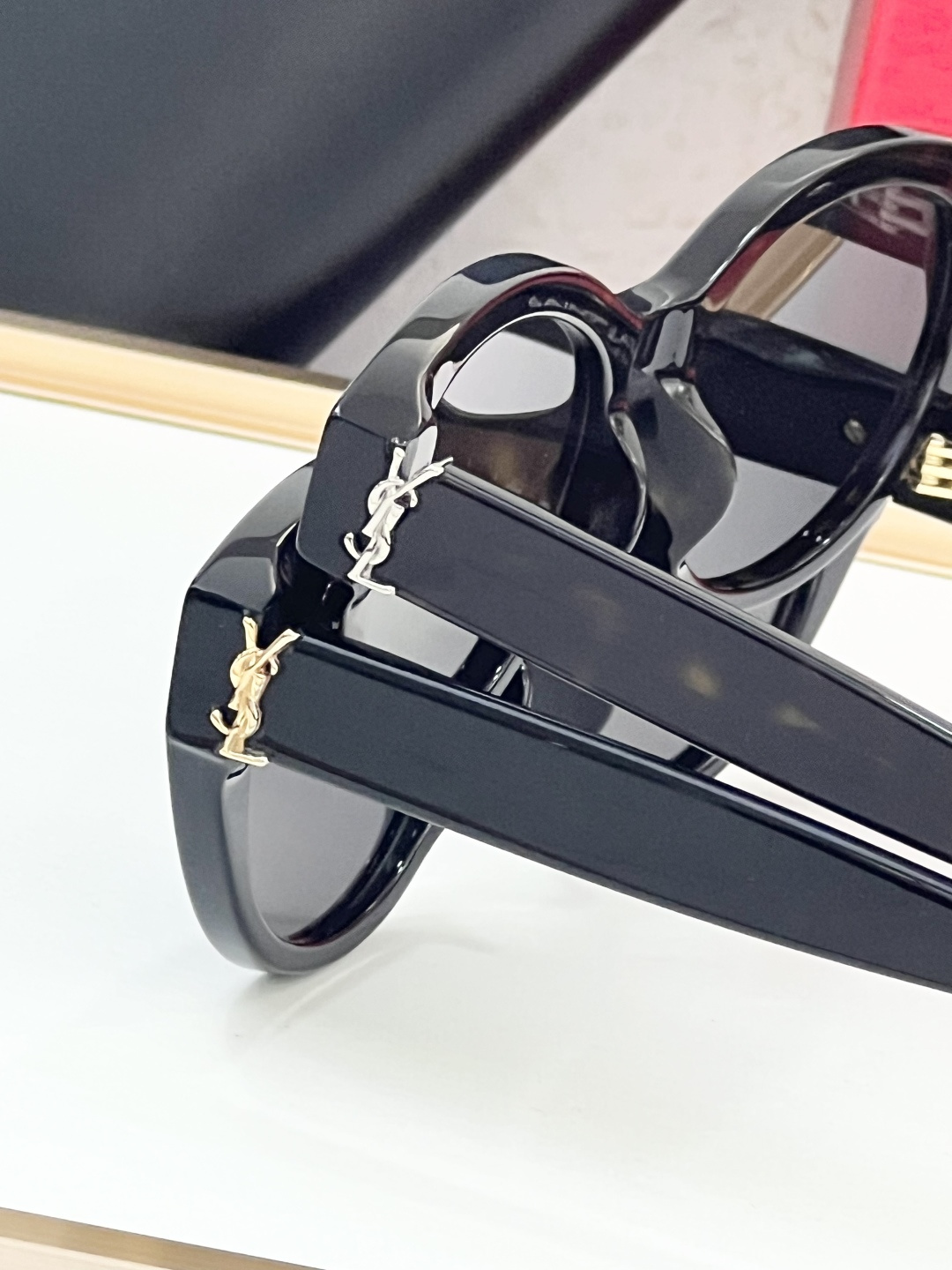 这款太阳眼镜是AAAAA 1:1 质量 (非常棒). 使用了和原版一模一样的材料. 商标部分也保持了和圣罗兰/Saint Laurent一样. 图片拍摄是实物太阳眼镜拍摄, 您所收到的实物保证和我们图片一模一样.