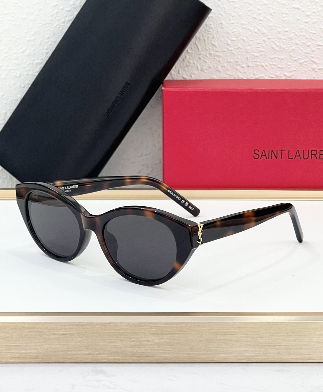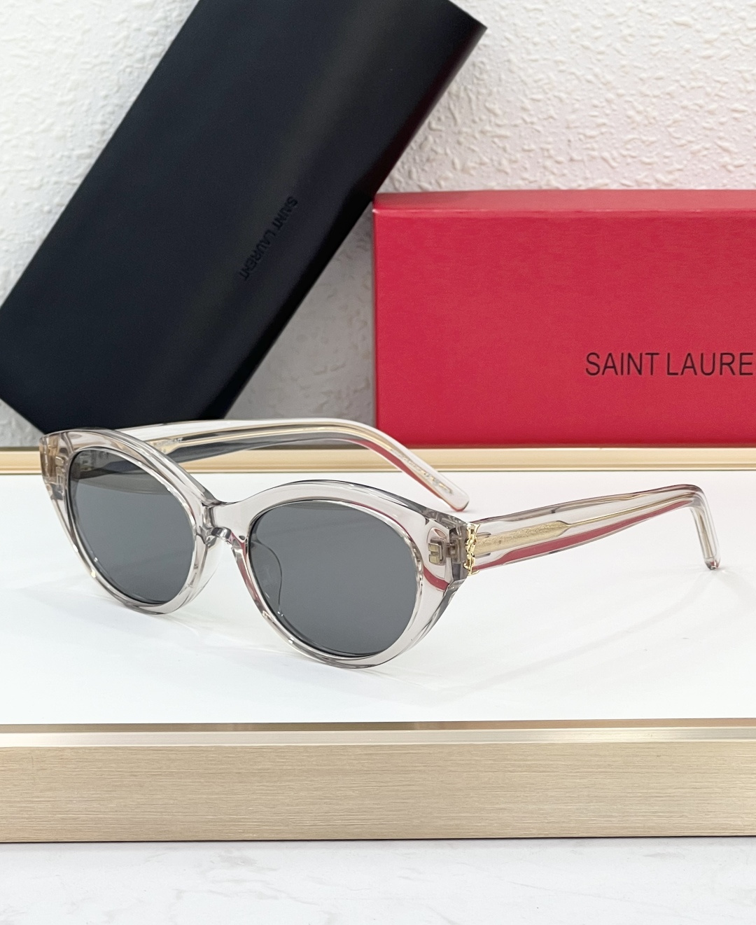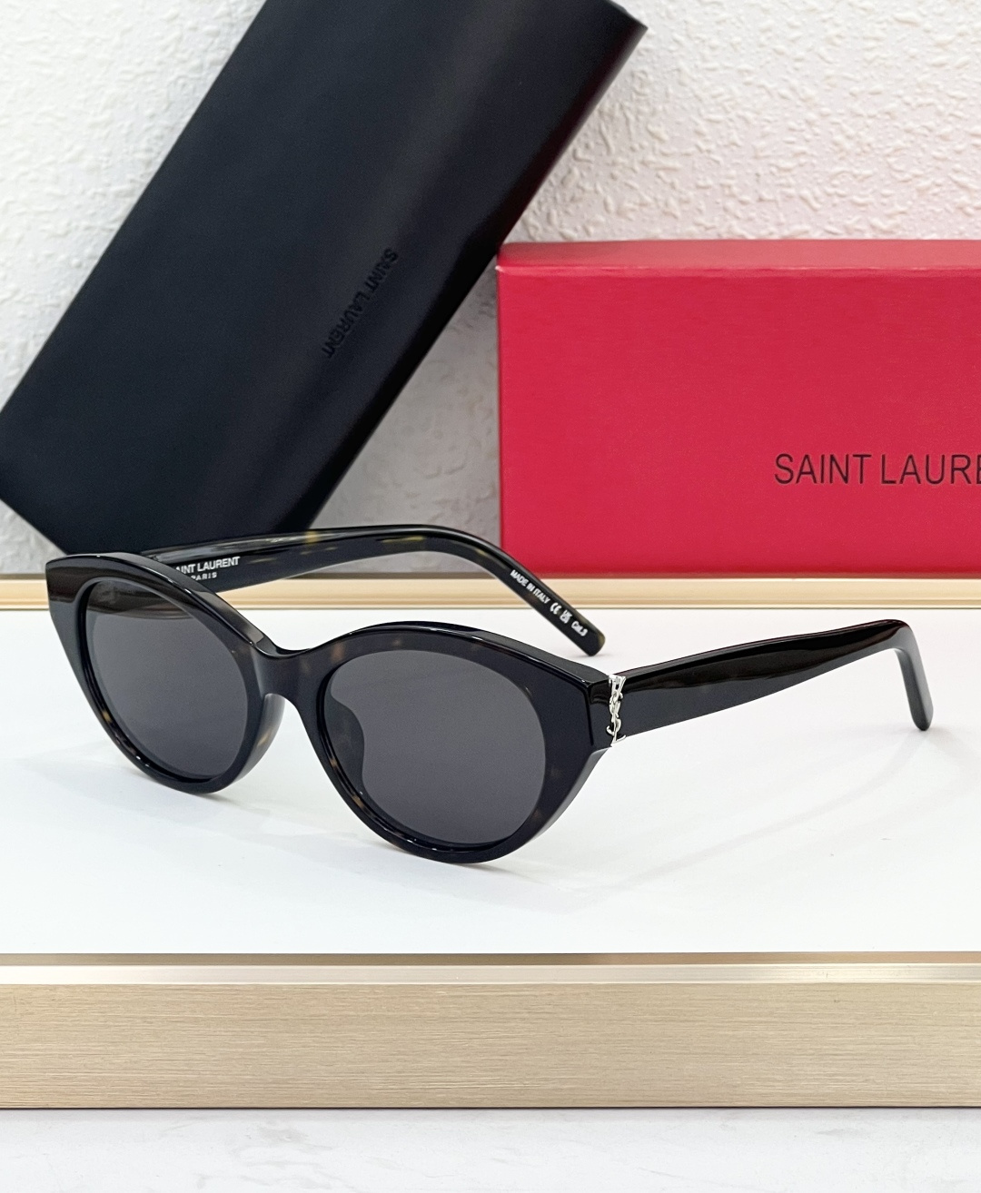这款太阳眼镜是AAAAA 1:1 质量 (非常棒). 使用了和原版一模一样的材料. 商标部分也保持了和圣罗兰/Saint Laurent一样. 图片拍摄是实物太阳眼镜拍摄, 您所收到的实物保证和我们图片一模一样.
