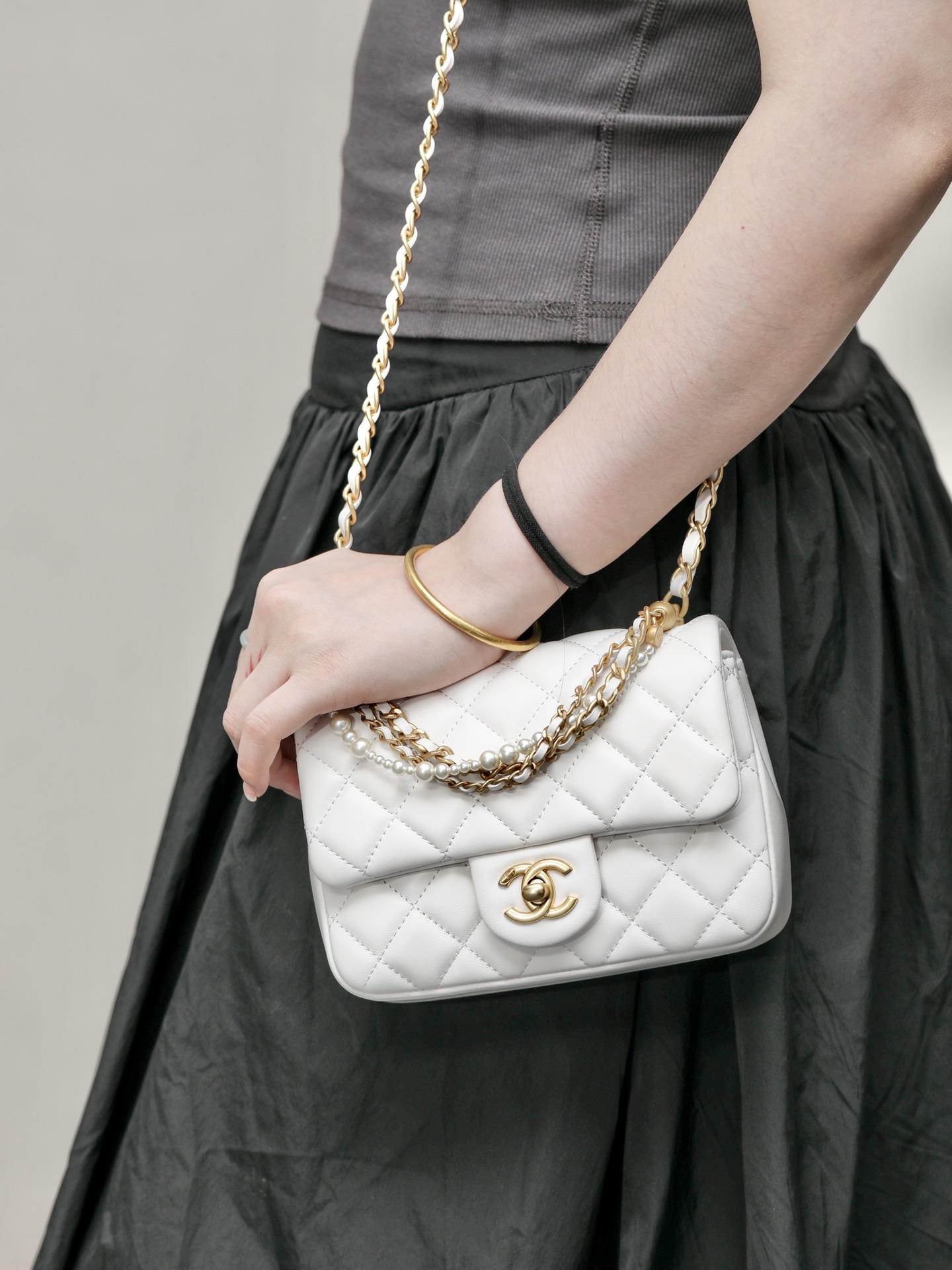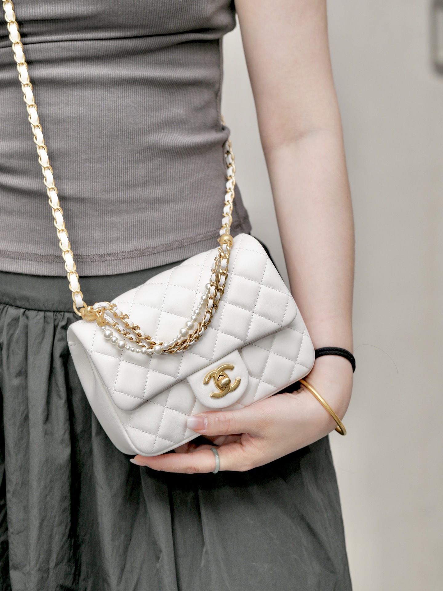 这款包包是AAAAA 1:1 质量 (非常棒). 使用了和原版一模一样的材料. 商标部分也保持了和香奈儿/Chanel一样. 图片拍摄是实物包包拍摄, 您所收到的实物保证和我们图片一模一样.