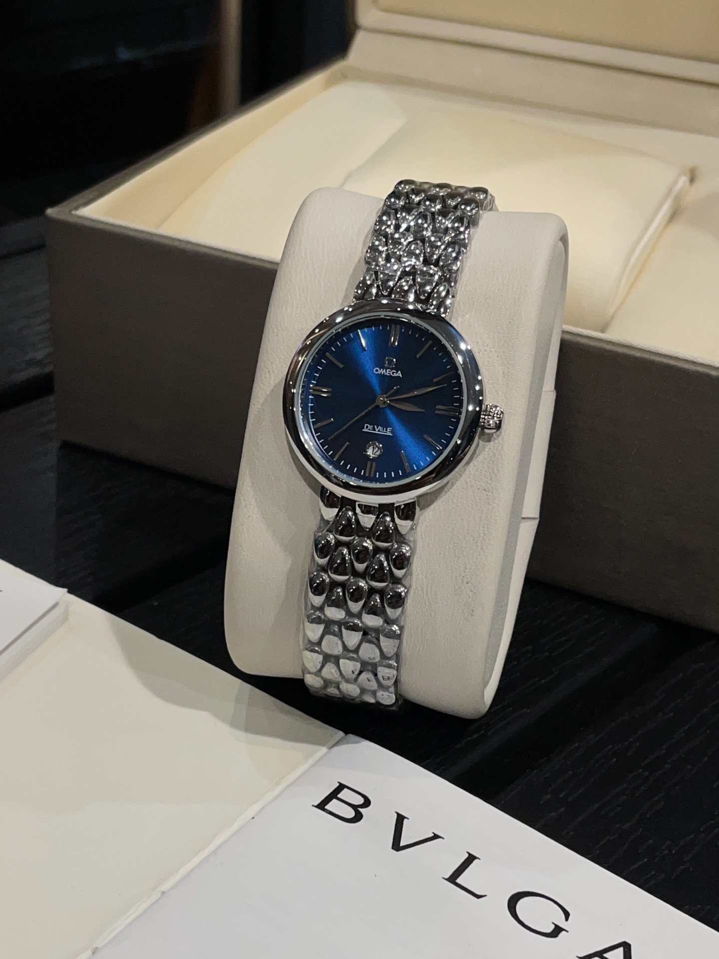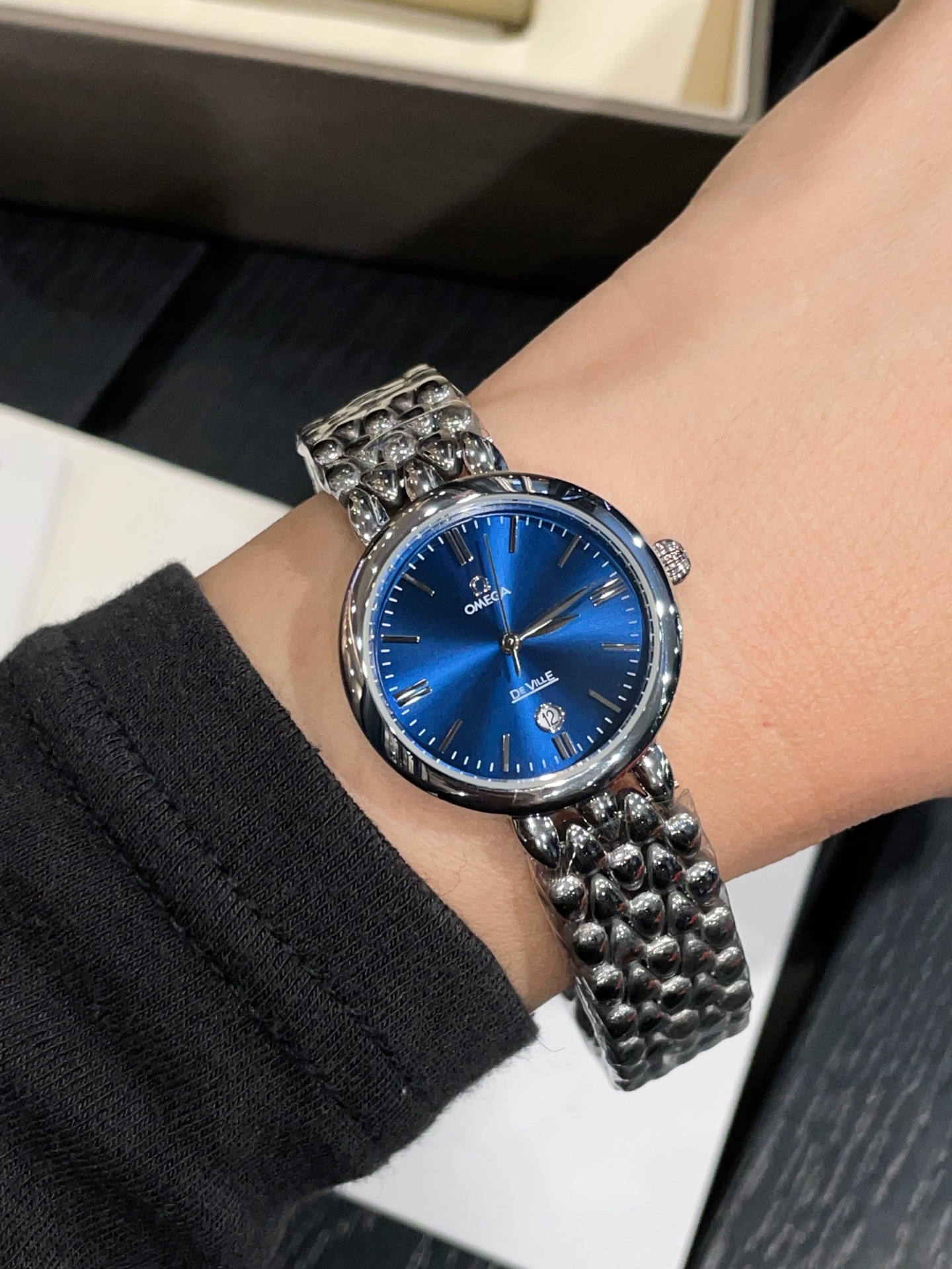 这款手表是AAAAA 1:1 质量 (非常棒). 使用了和原版一模一样的材料. 商标部分也保持了和欧米茄/Omega一样. 图片拍摄是实物手表拍摄, 您所收到的实物保证和我们图片一模一样.