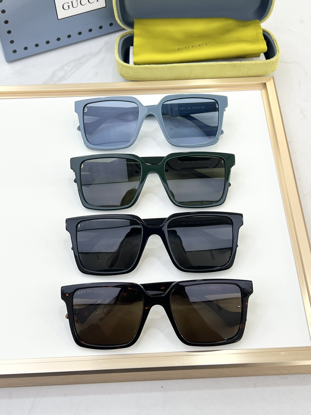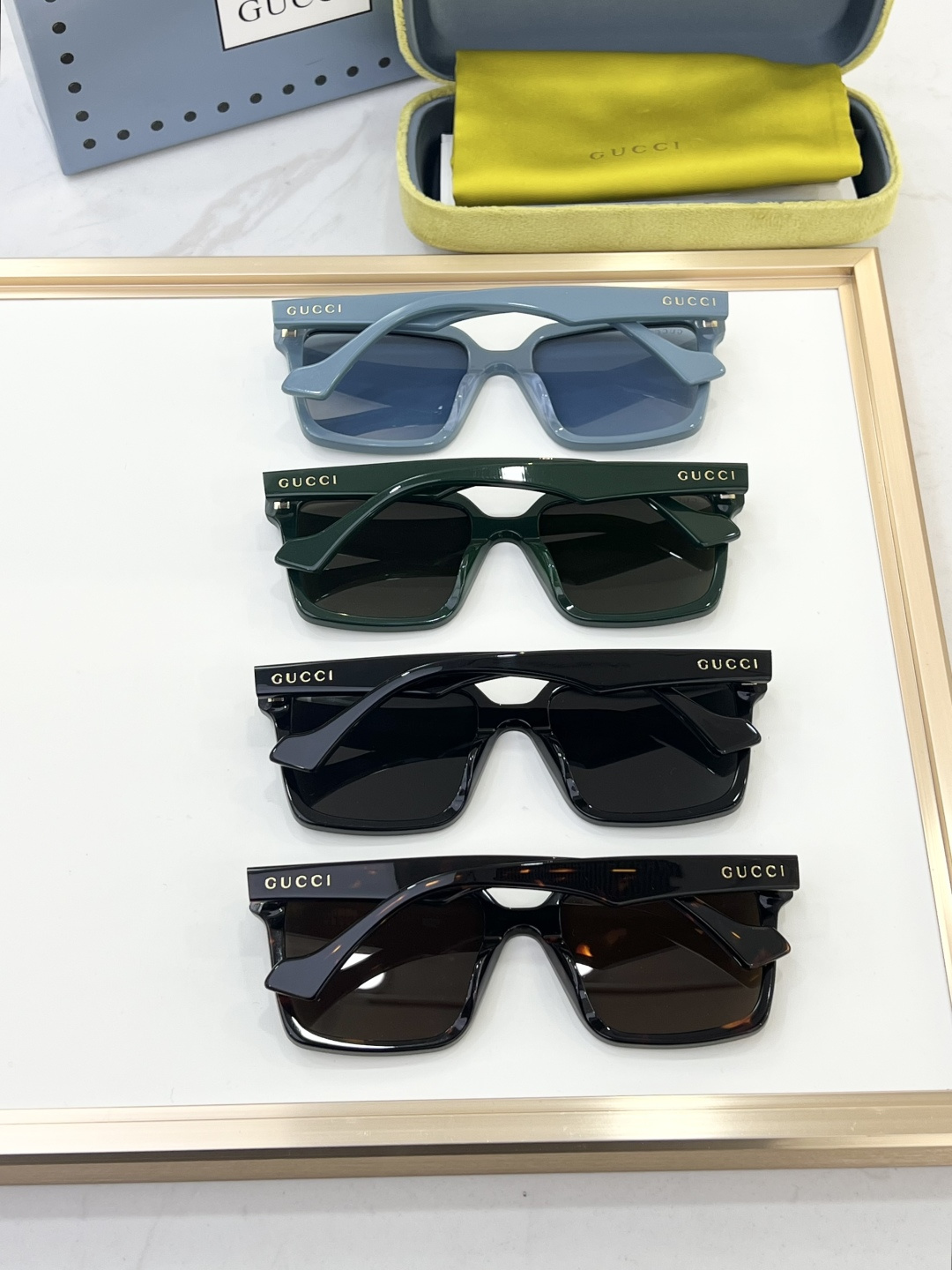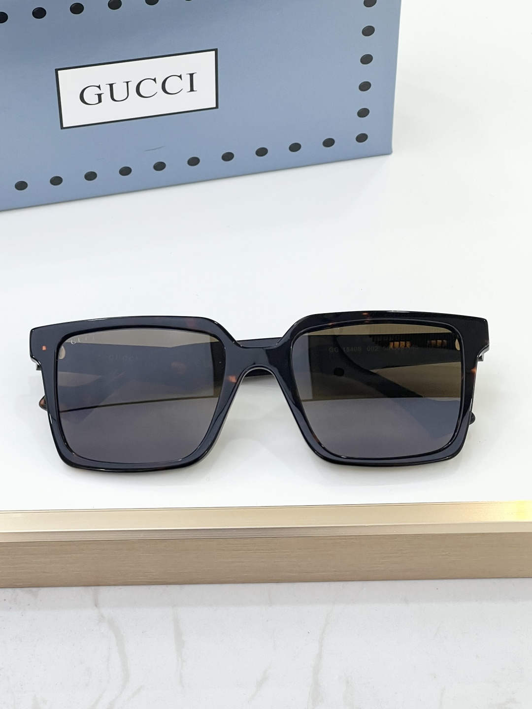 这款太阳眼镜是AAAAA 1:1 质量 (非常棒). 使用了和原版一模一样的材料. 商标部分也保持了和古奇/Gucci一样. 图片拍摄是实物太阳眼镜拍摄, 您所收到的实物保证和我们图片一模一样.