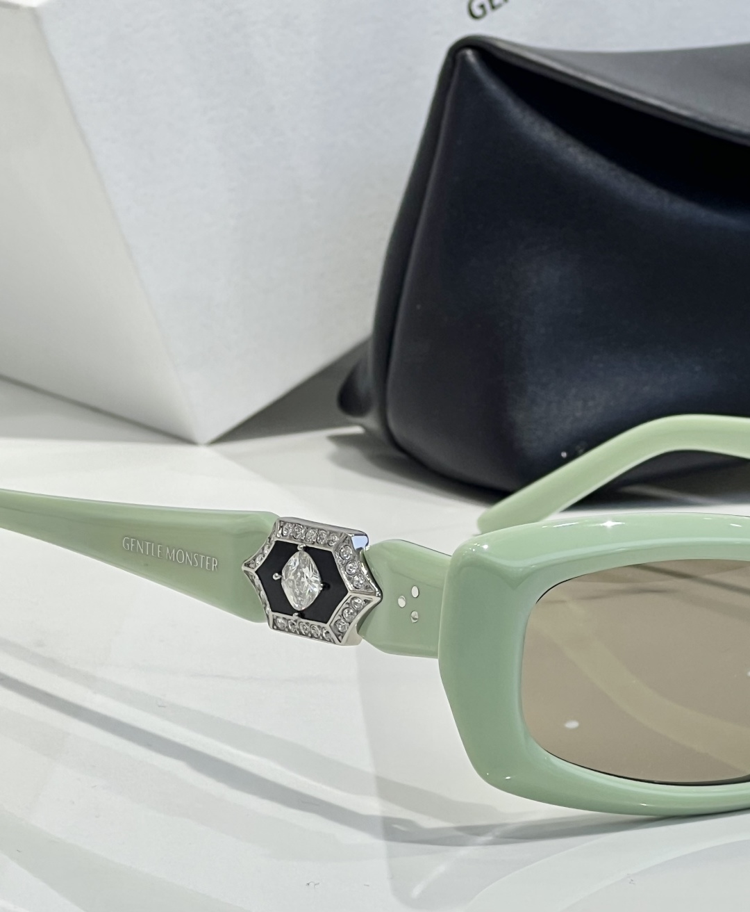这款太阳眼镜是AAAAA 1:1 质量 (非常棒). 使用了和原版一模一样的材料. 商标部分也保持了和Gentle Monster一样. 图片拍摄是实物太阳眼镜拍摄, 您所收到的实物保证和我们图片一模一样.