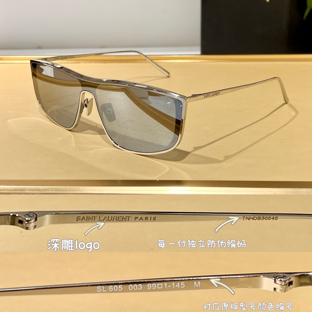 这款太阳眼镜是AAAAA 1:1 质量 (非常棒). 使用了和原版一模一样的材料. 商标部分也保持了和圣罗兰/Saint Laurent一样. 图片拍摄是实物太阳眼镜拍摄, 您所收到的实物保证和我们图片一模一样.