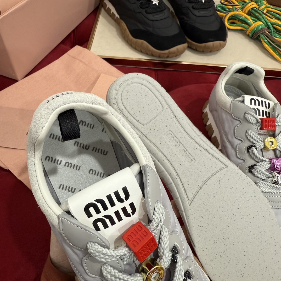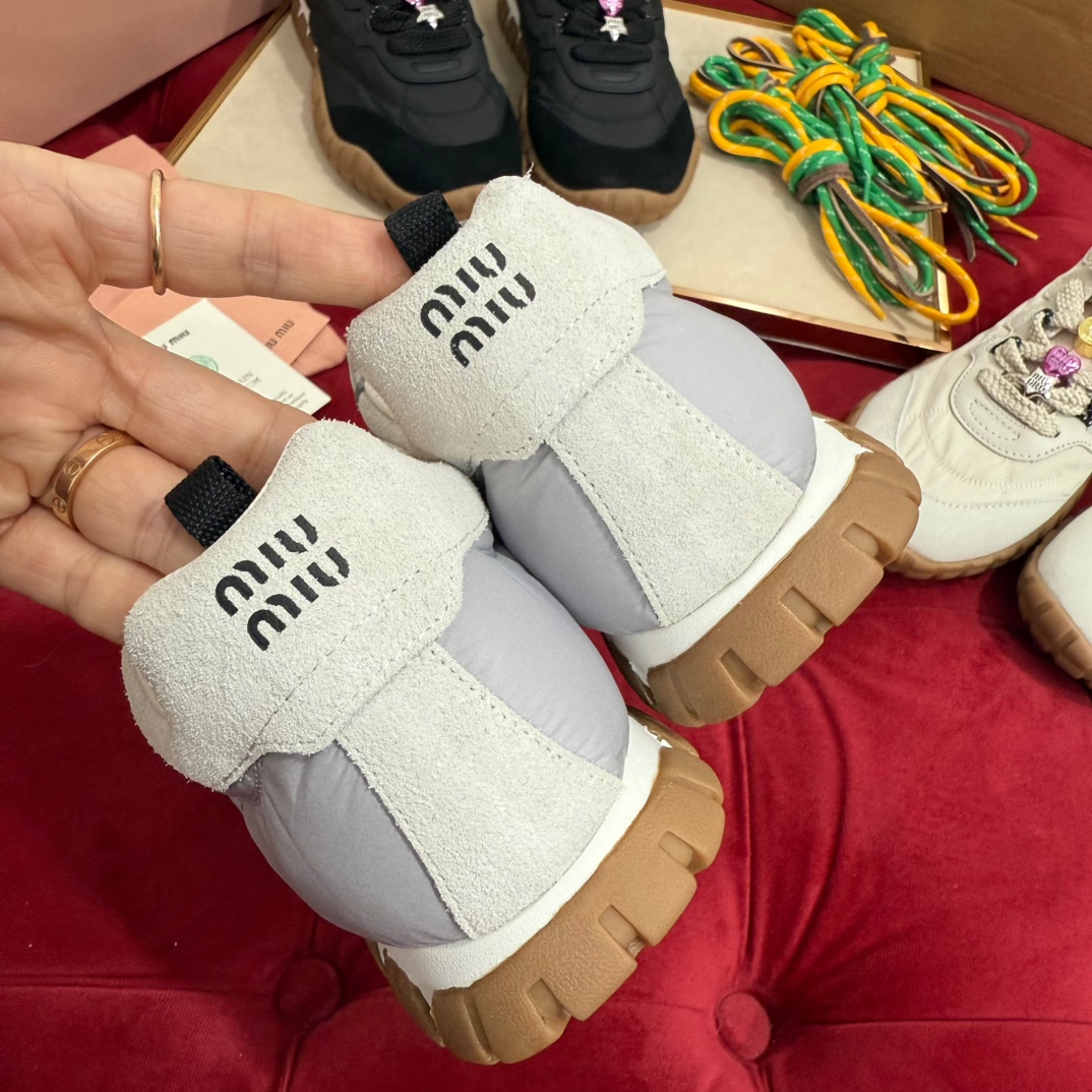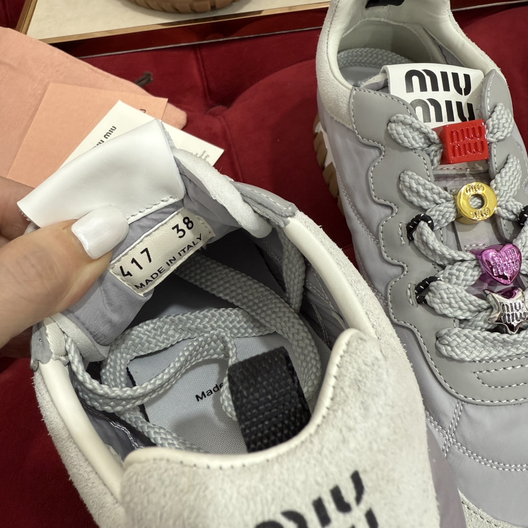 这款鞋子是AAAAA 1:1 质量 (非常棒). 使用了和原版一模一样的材料. 商标部分也保持了和缪缪/Miu Miu一样. 图片拍摄是实物鞋子拍摄, 您所收到的实物保证和我们图片一模一样.