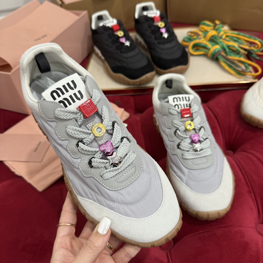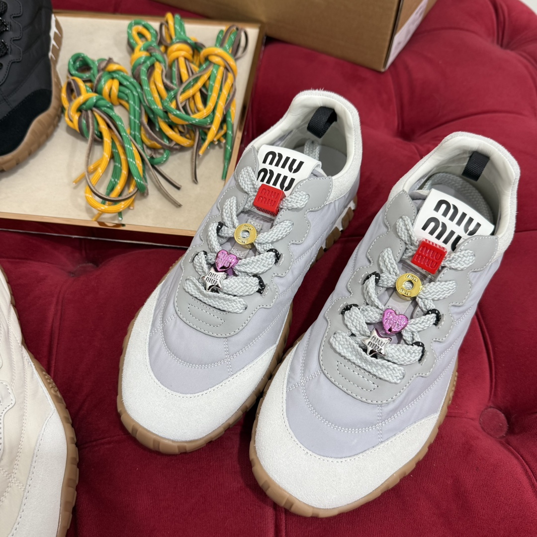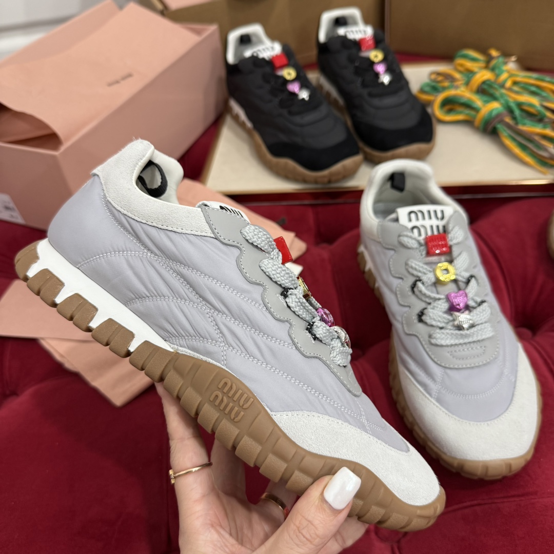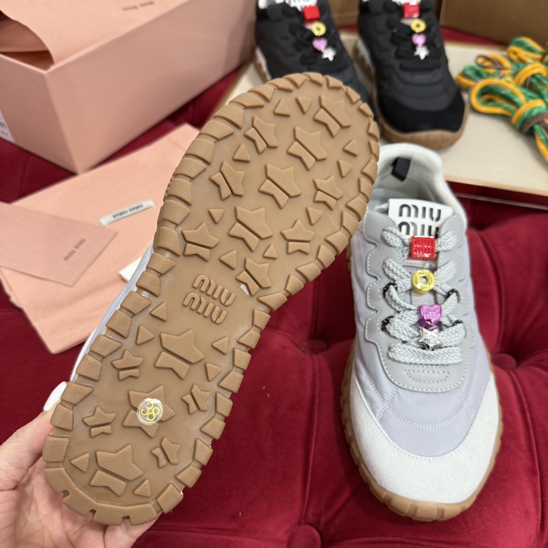 这款鞋子是AAAAA 1:1 质量 (非常棒). 使用了和原版一模一样的材料. 商标部分也保持了和缪缪/Miu Miu一样. 图片拍摄是实物鞋子拍摄, 您所收到的实物保证和我们图片一模一样.