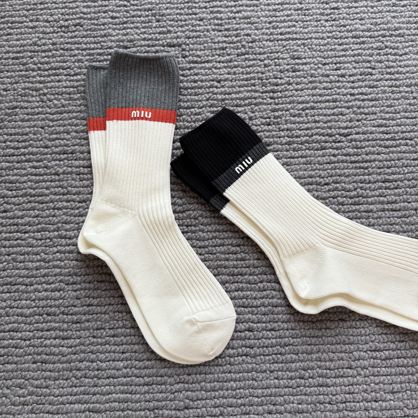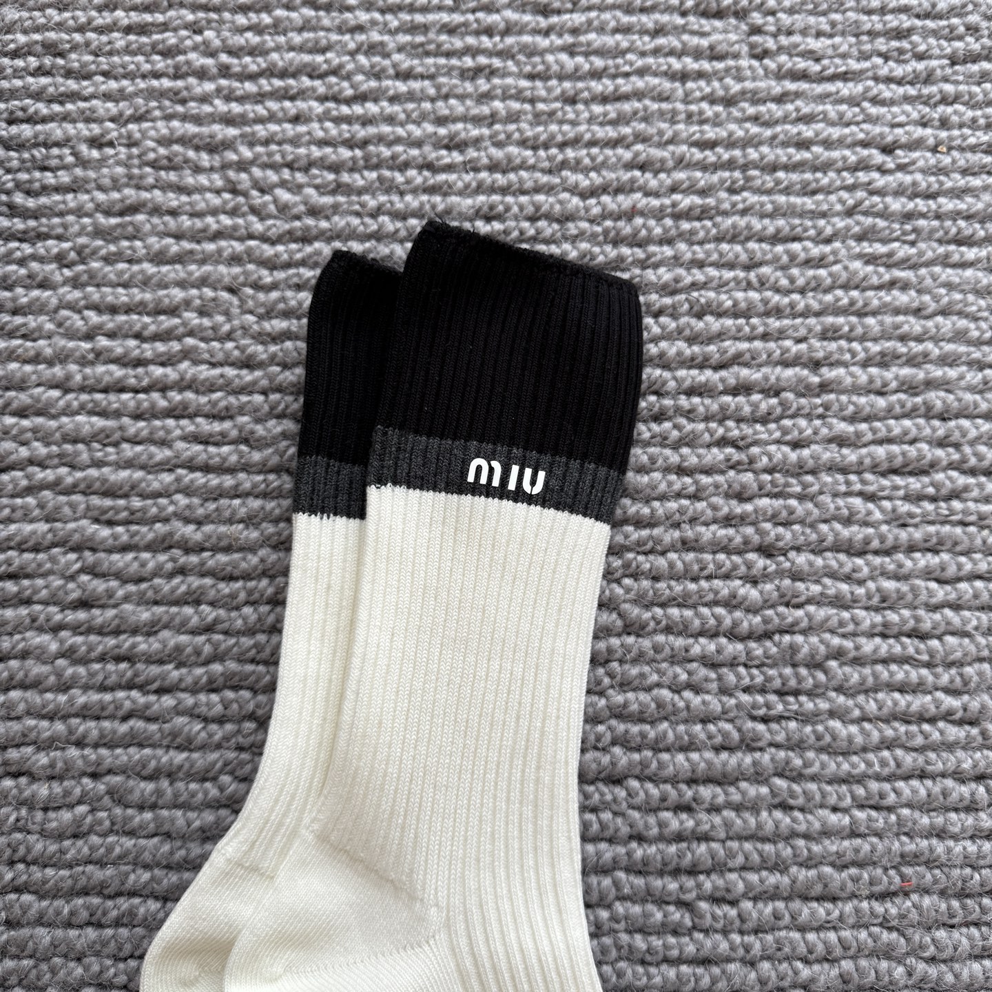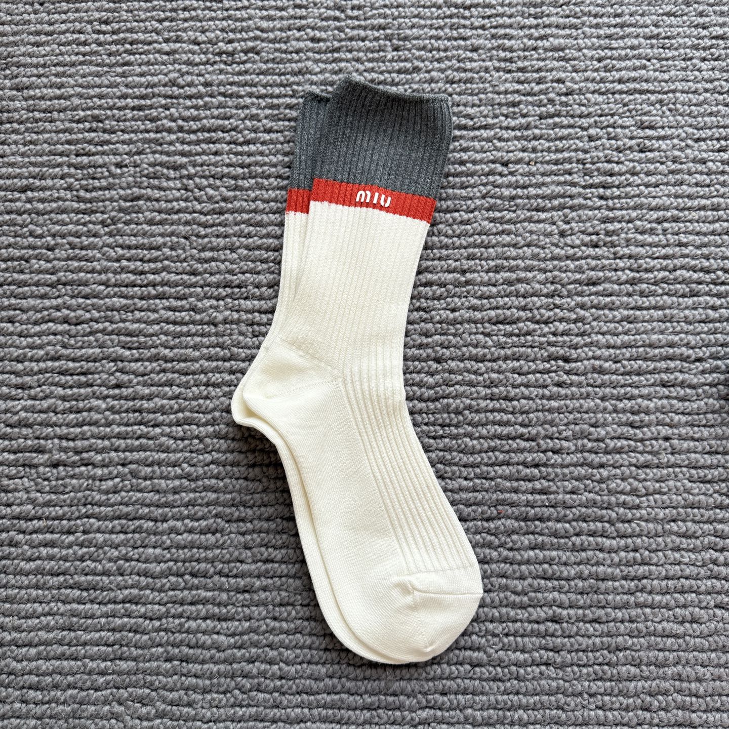 这款sock是AAAAA 1:1 质量 (非常棒). 使用了和原版一模一样的材料. 商标部分也保持了和缪缪/Miu Miu一样. 图片拍摄是实物sock拍摄, 您所收到的实物保证和我们图片一模一样.