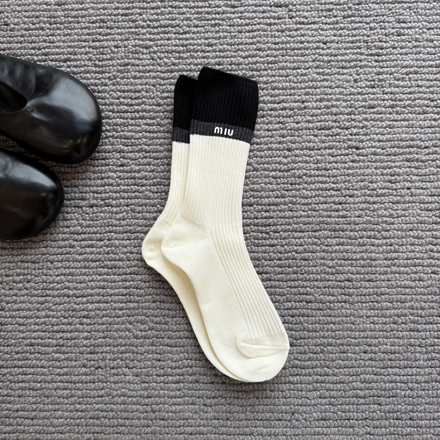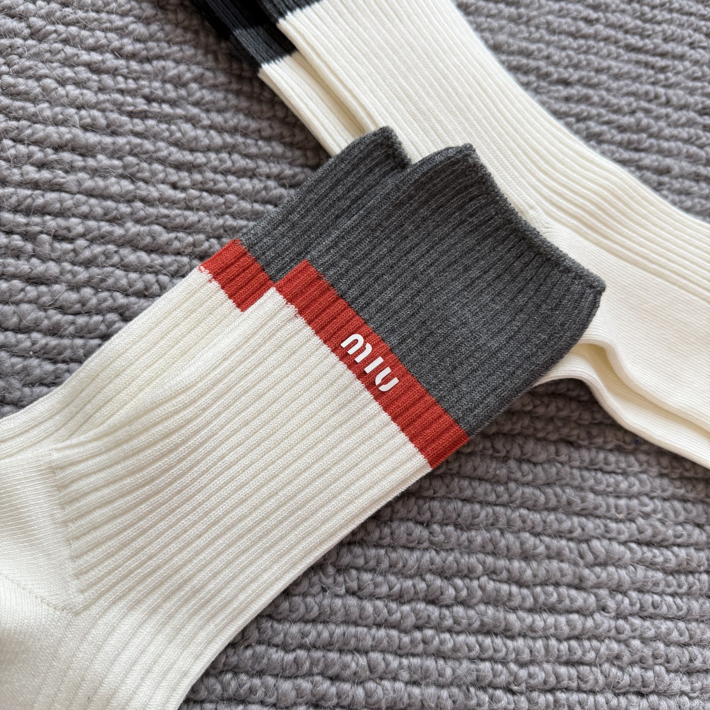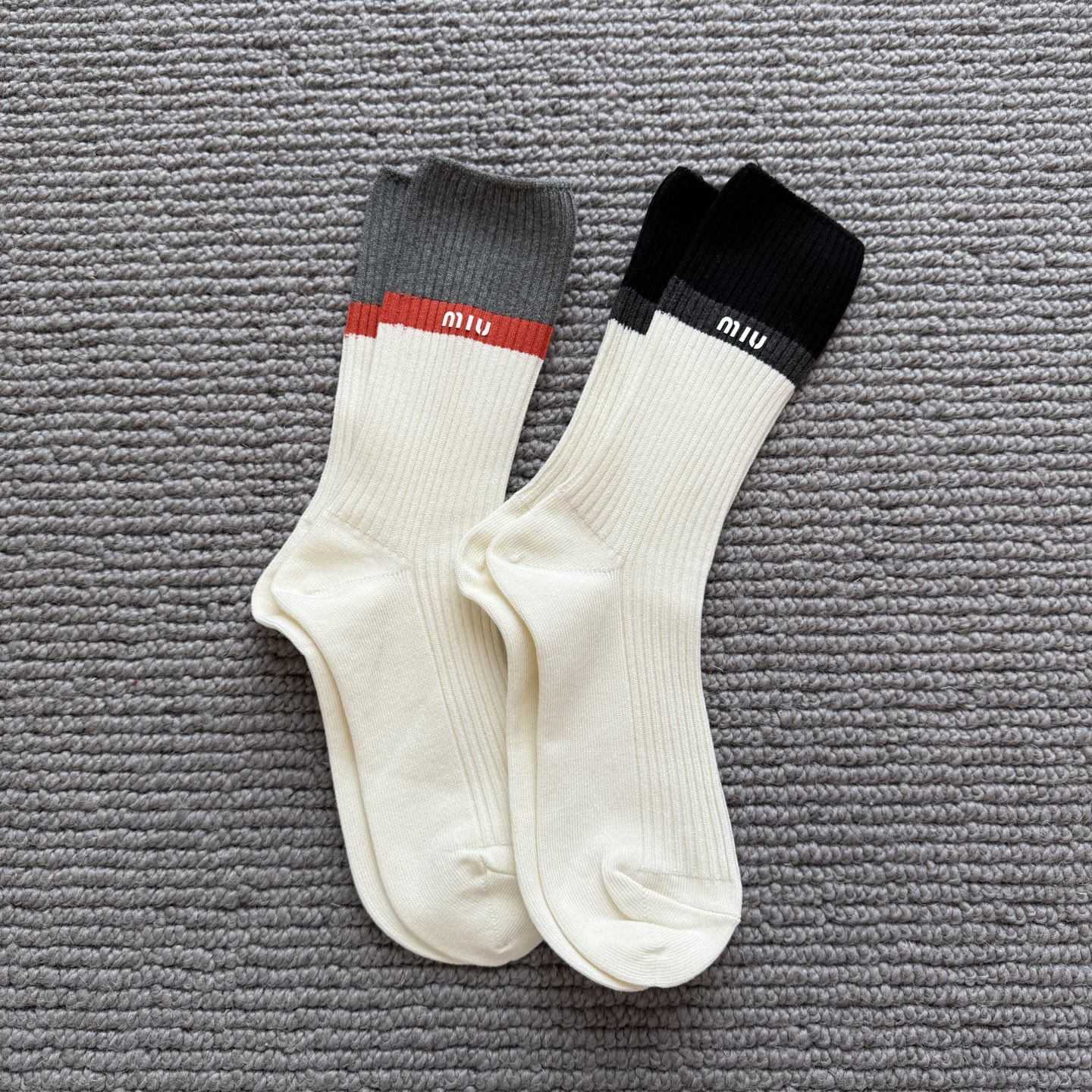 这款sock是AAAAA 1:1 质量 (非常棒). 使用了和原版一模一样的材料. 商标部分也保持了和缪缪/Miu Miu一样. 图片拍摄是实物sock拍摄, 您所收到的实物保证和我们图片一模一样.