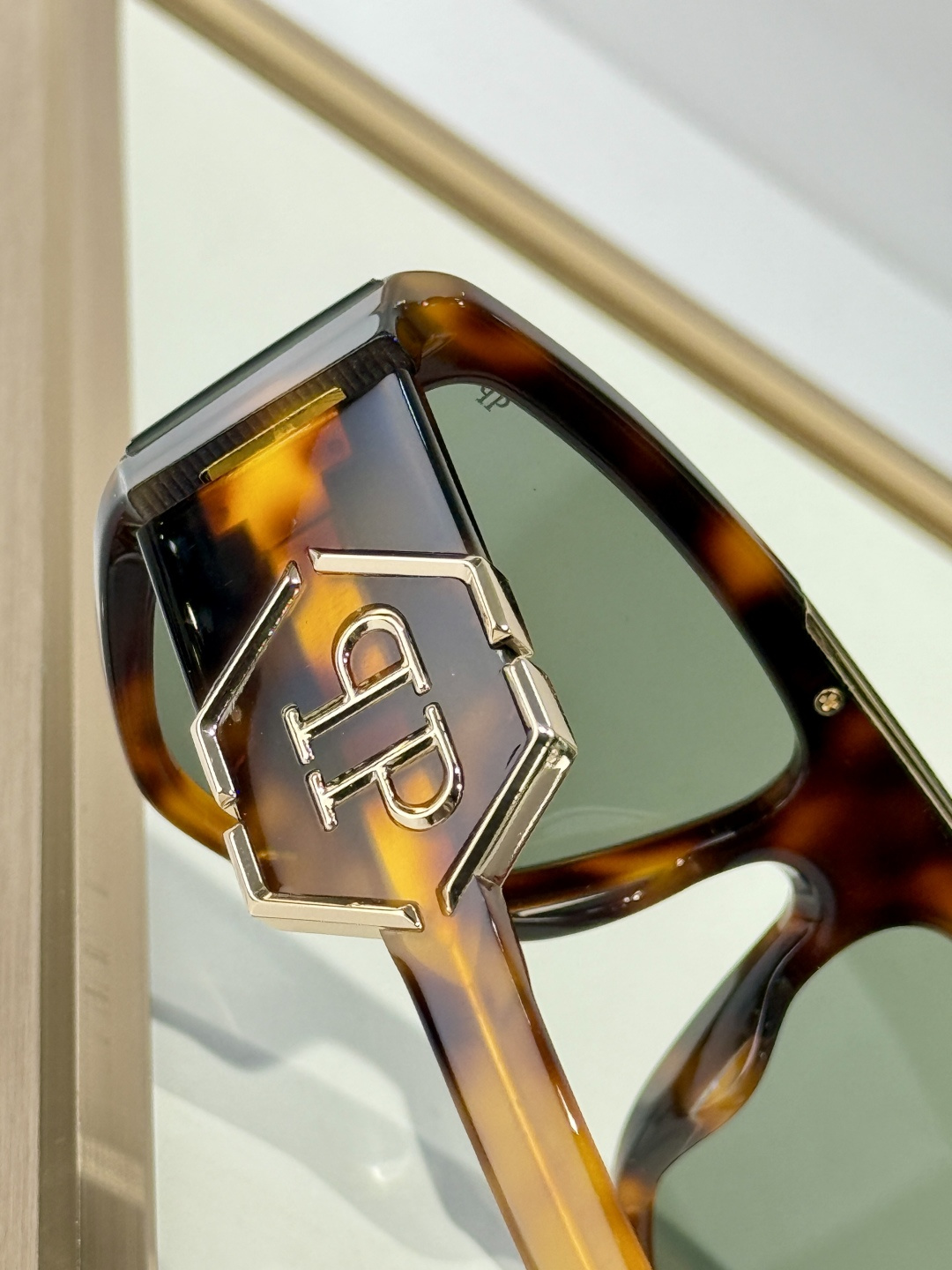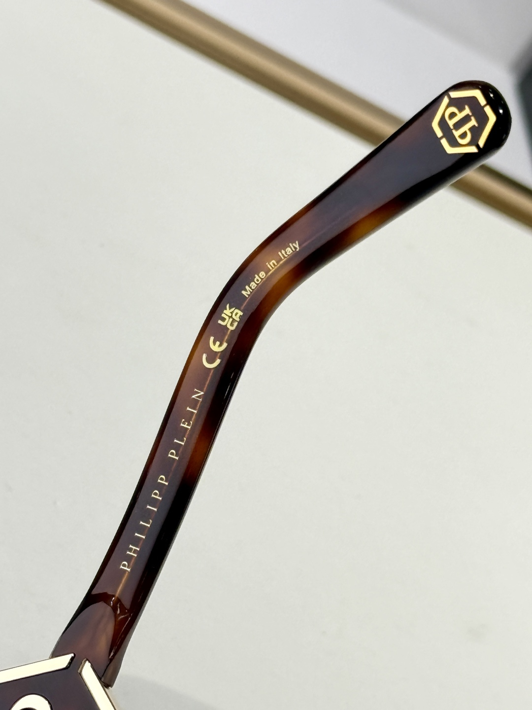 这款太阳眼镜是AAAAA 1:1 质量 (非常棒). 使用了和原版一模一样的材料. 商标部分也保持了和菲利普·普林/Philipp Plein一样. 图片拍摄是实物太阳眼镜拍摄, 您所收到的实物保证和我们图片一模一样.