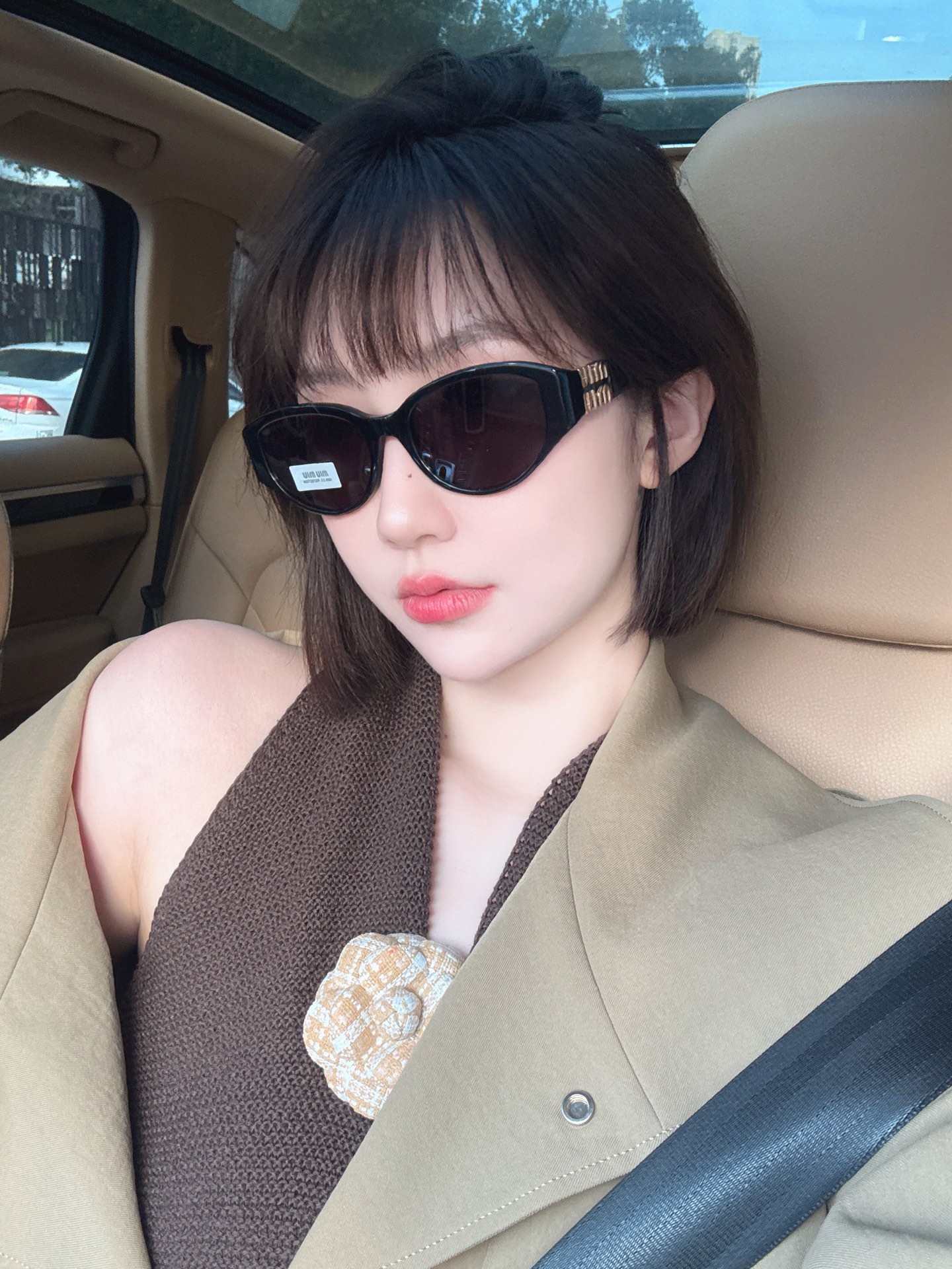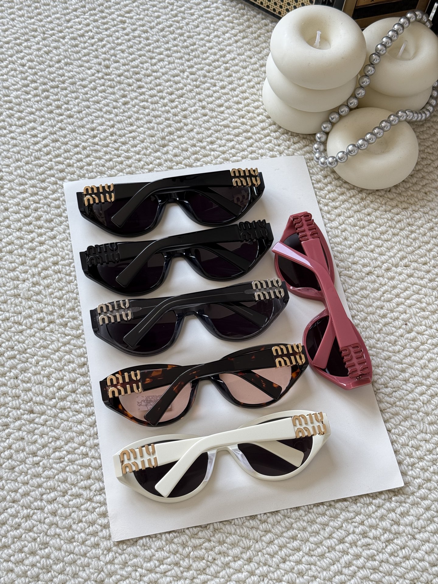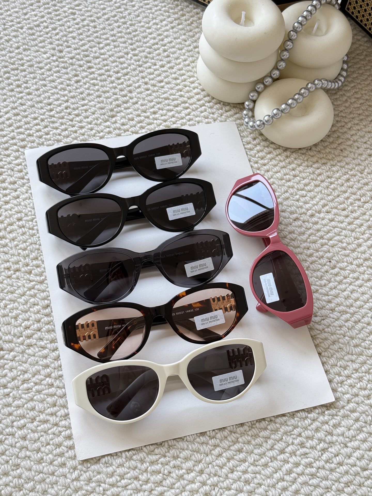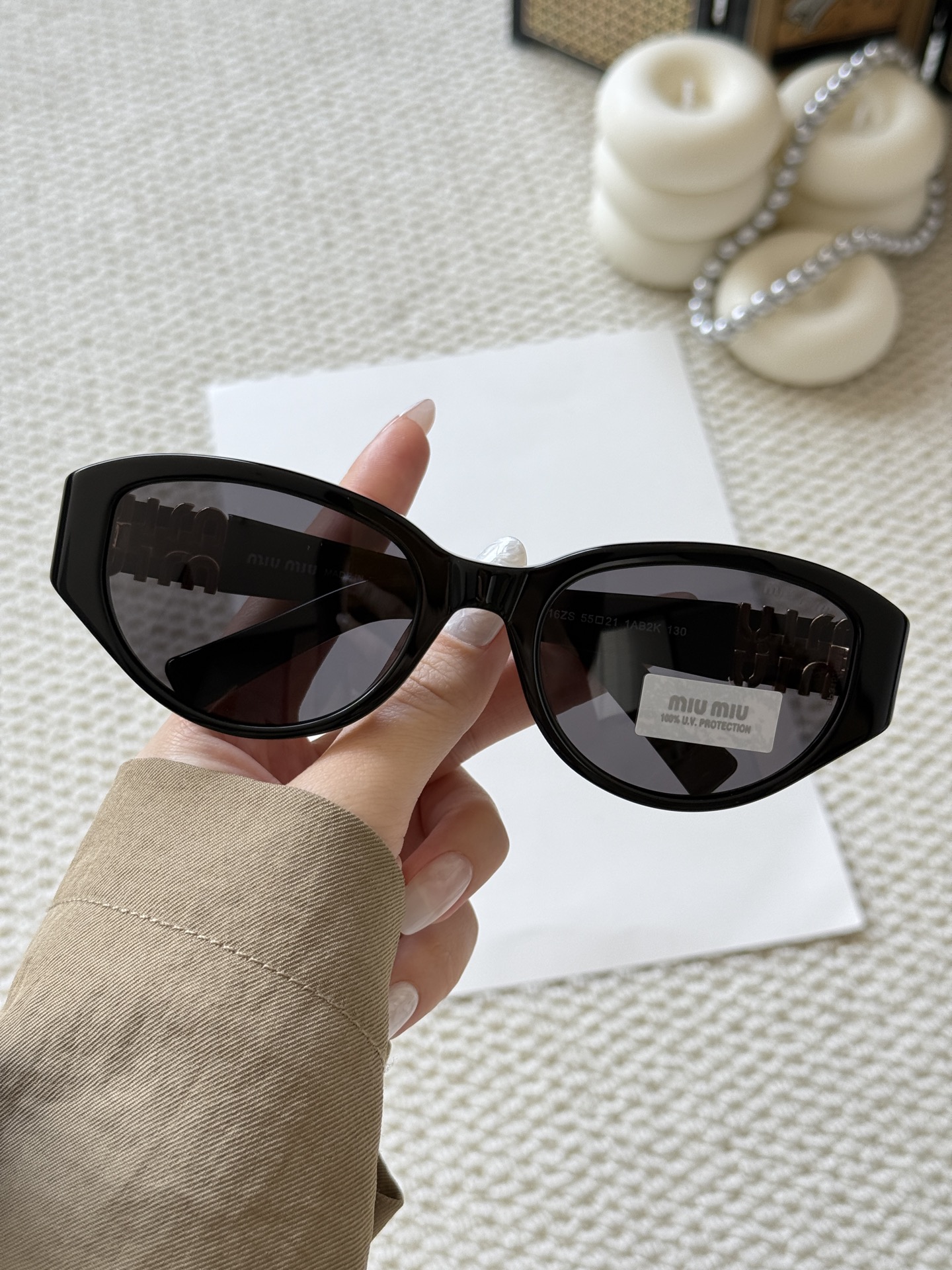 这款太阳眼镜是AAAAA 1:1 质量 (非常棒). 使用了和原版一模一样的材料. 商标部分也保持了和缪缪/Miu Miu一样. 图片拍摄是实物太阳眼镜拍摄, 您所收到的实物保证和我们图片一模一样.