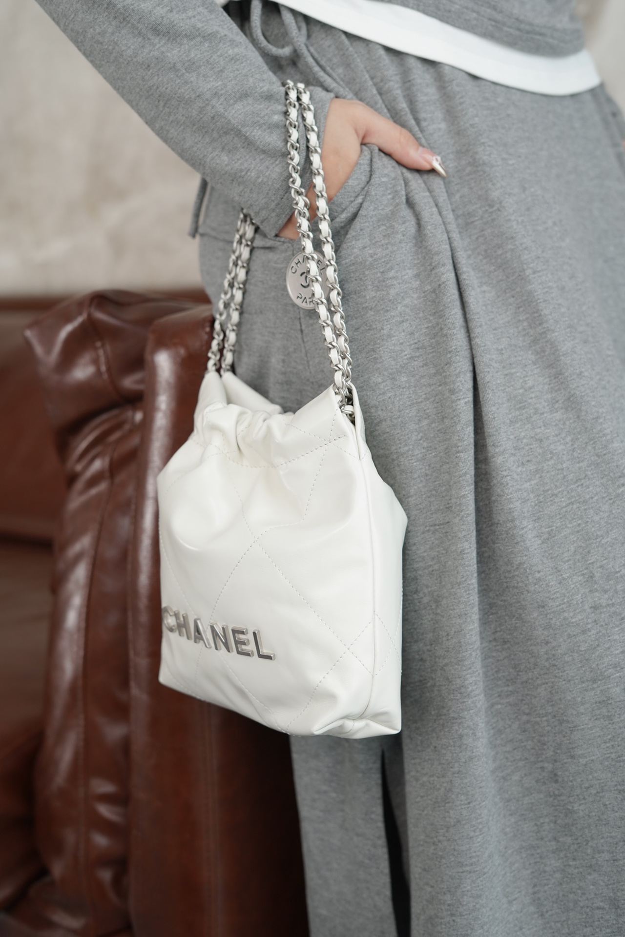 这款包包是AAAAA 1:1 质量 (非常棒). 使用了和原版一模一样的材料. 商标部分也保持了和香奈儿/Chanel一样. 图片拍摄是实物包包拍摄, 您所收到的实物保证和我们图片一模一样.