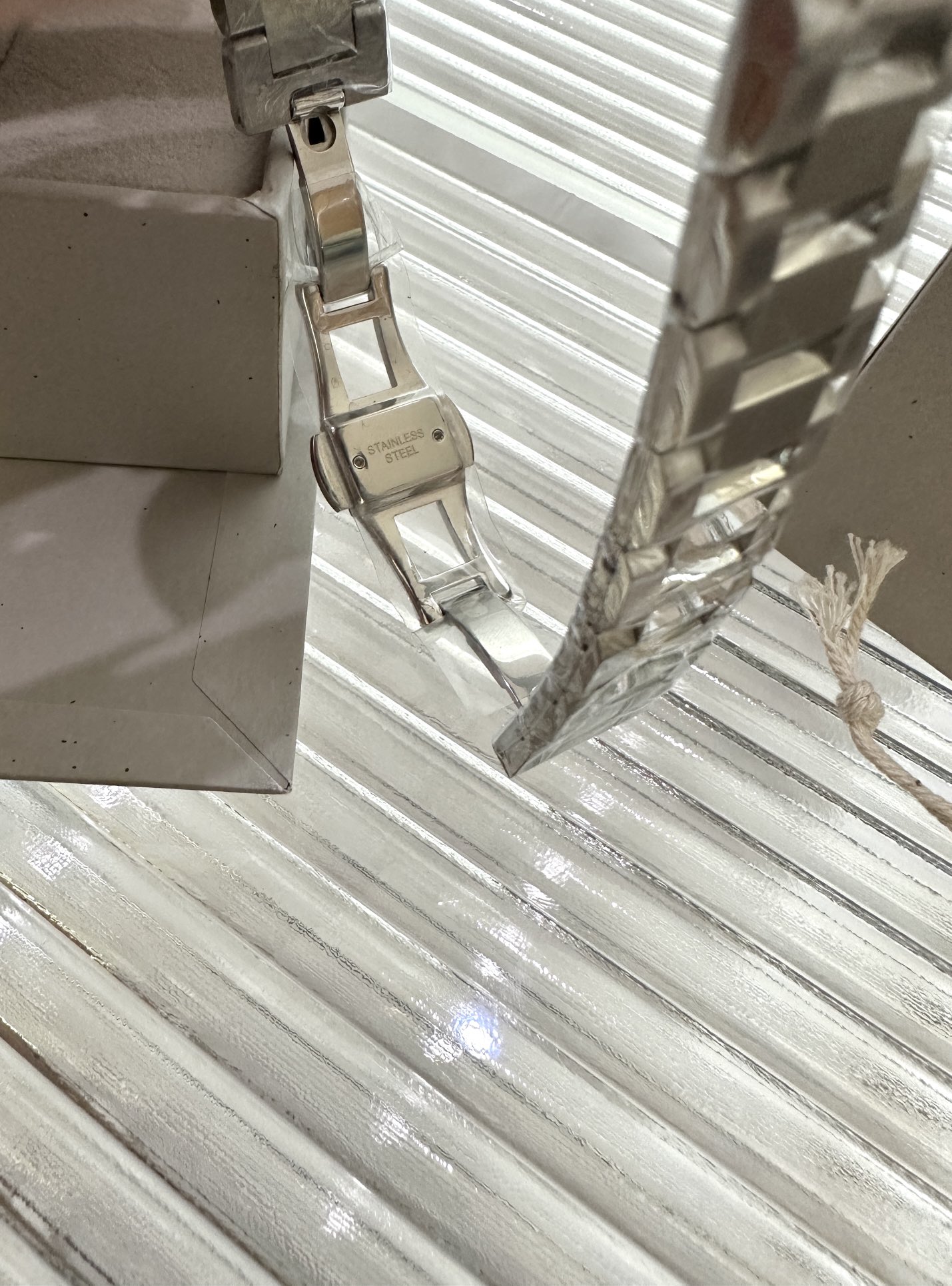 这款手表是AAAAA 1:1 质量 (非常棒). 使用了和原版一模一样的材料. 商标部分也保持了和罗杰维维耶/Roger Vivier一样. 图片拍摄是实物手表拍摄, 您所收到的实物保证和我们图片一模一样.
