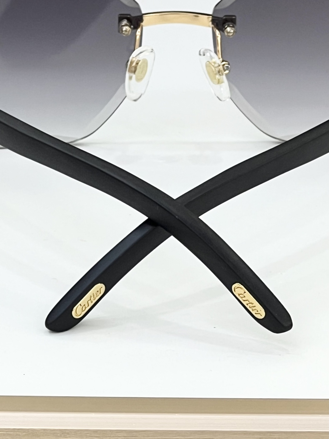 这款太阳眼镜是AAAAA 1:1 质量 (非常棒). 使用了和原版一模一样的材料. 商标部分也保持了和卡地亚/Cartier一样. 图片拍摄是实物太阳眼镜拍摄, 您所收到的实物保证和我们图片一模一样.