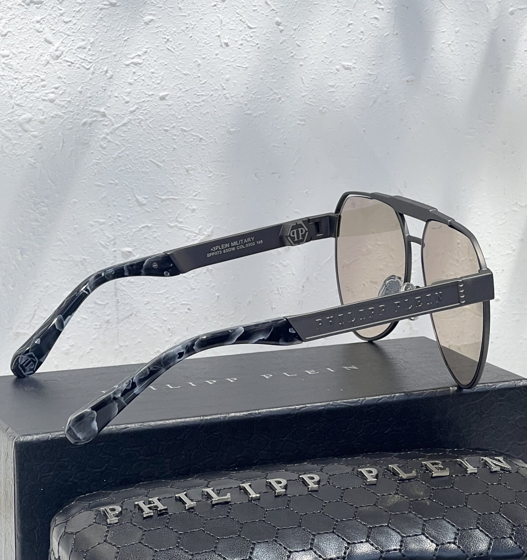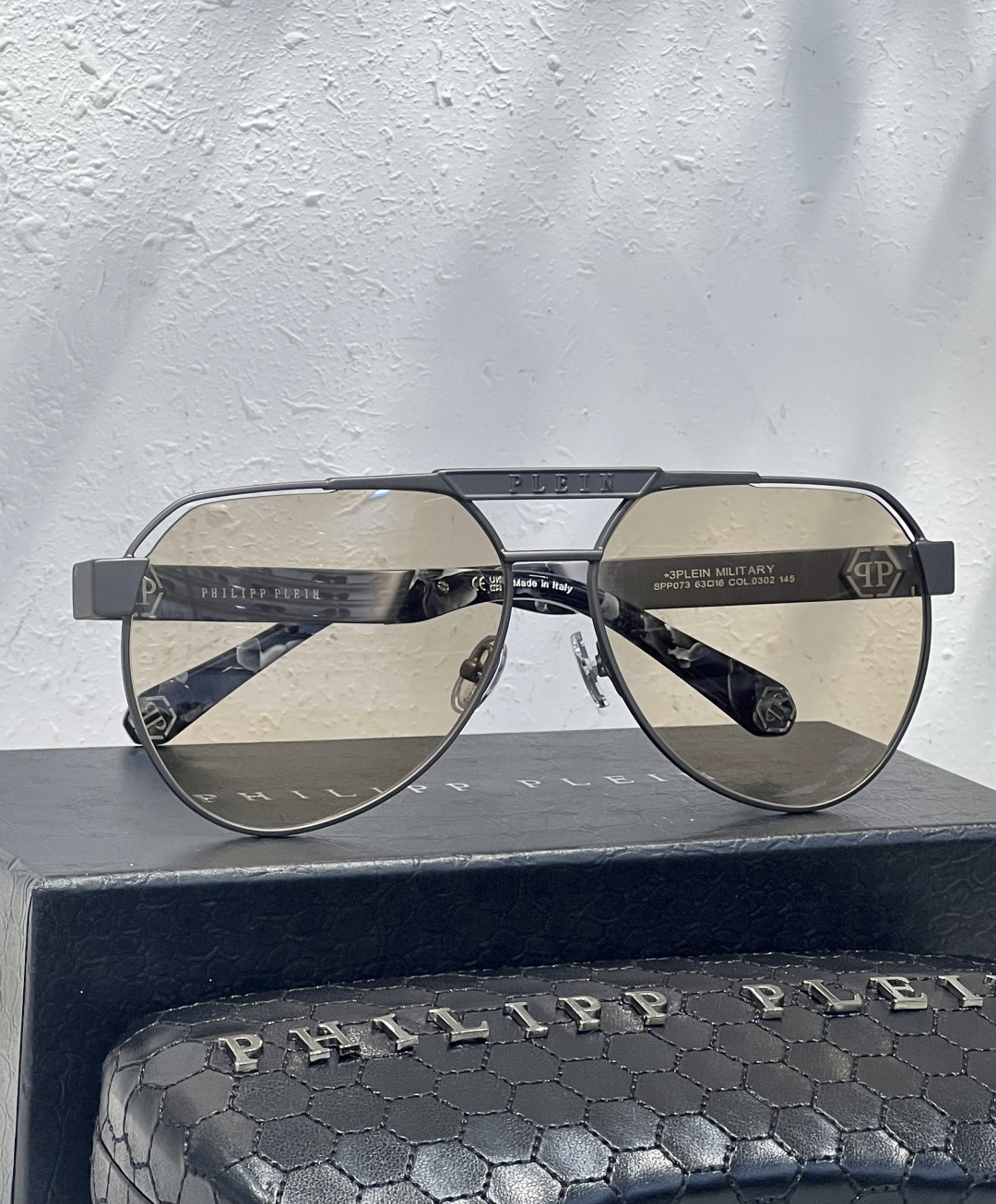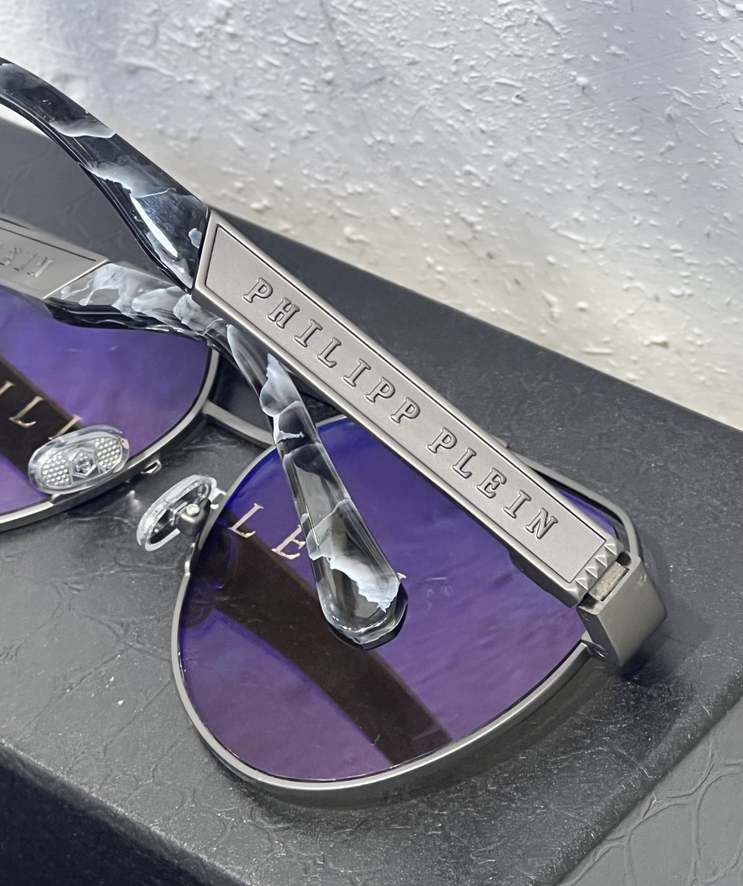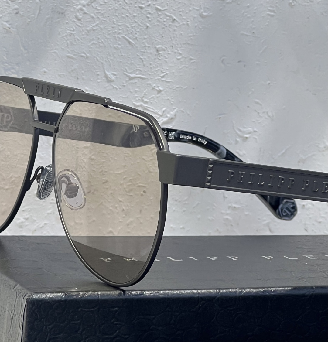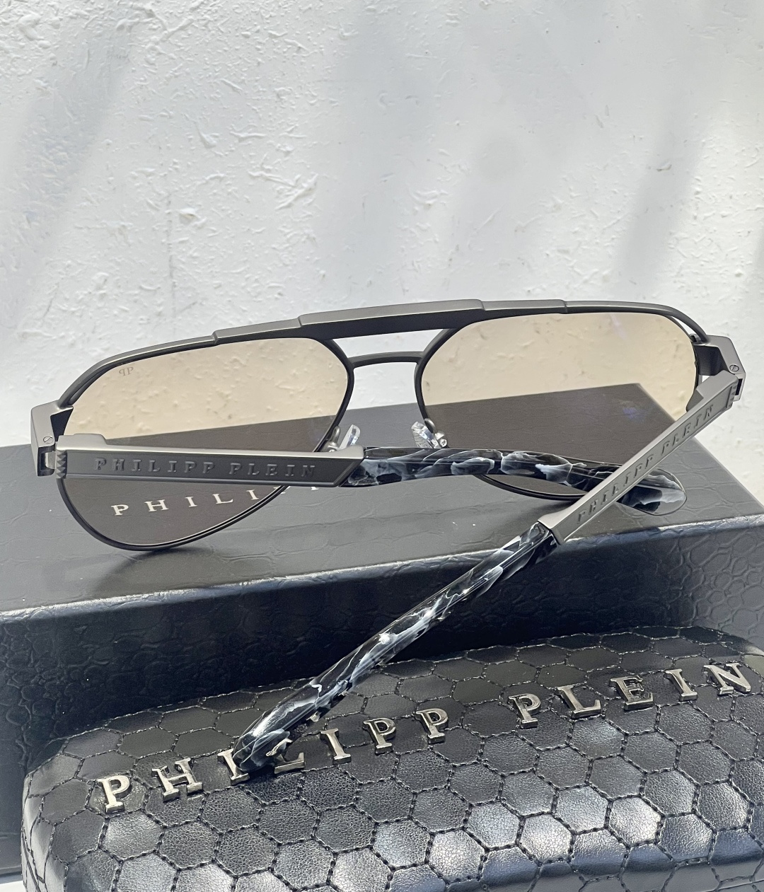 这款太阳眼镜是AAAAA 1:1 质量 (非常棒). 使用了和原版一模一样的材料. 商标部分也保持了和菲利普·普林/Philipp Plein一样. 图片拍摄是实物太阳眼镜拍摄, 您所收到的实物保证和我们图片一模一样.