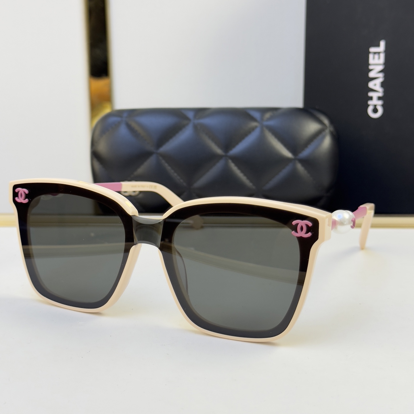 这款太阳眼镜是AAAAA 1:1 质量 (非常棒). 使用了和原版一模一样的材料. 商标部分也保持了和香奈儿/Chanel一样. 图片拍摄是实物太阳眼镜拍摄, 您所收到的实物保证和我们图片一模一样.