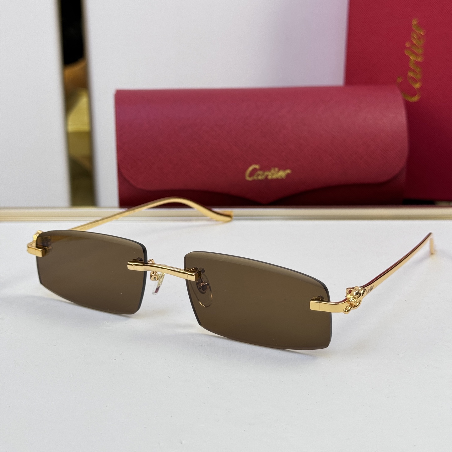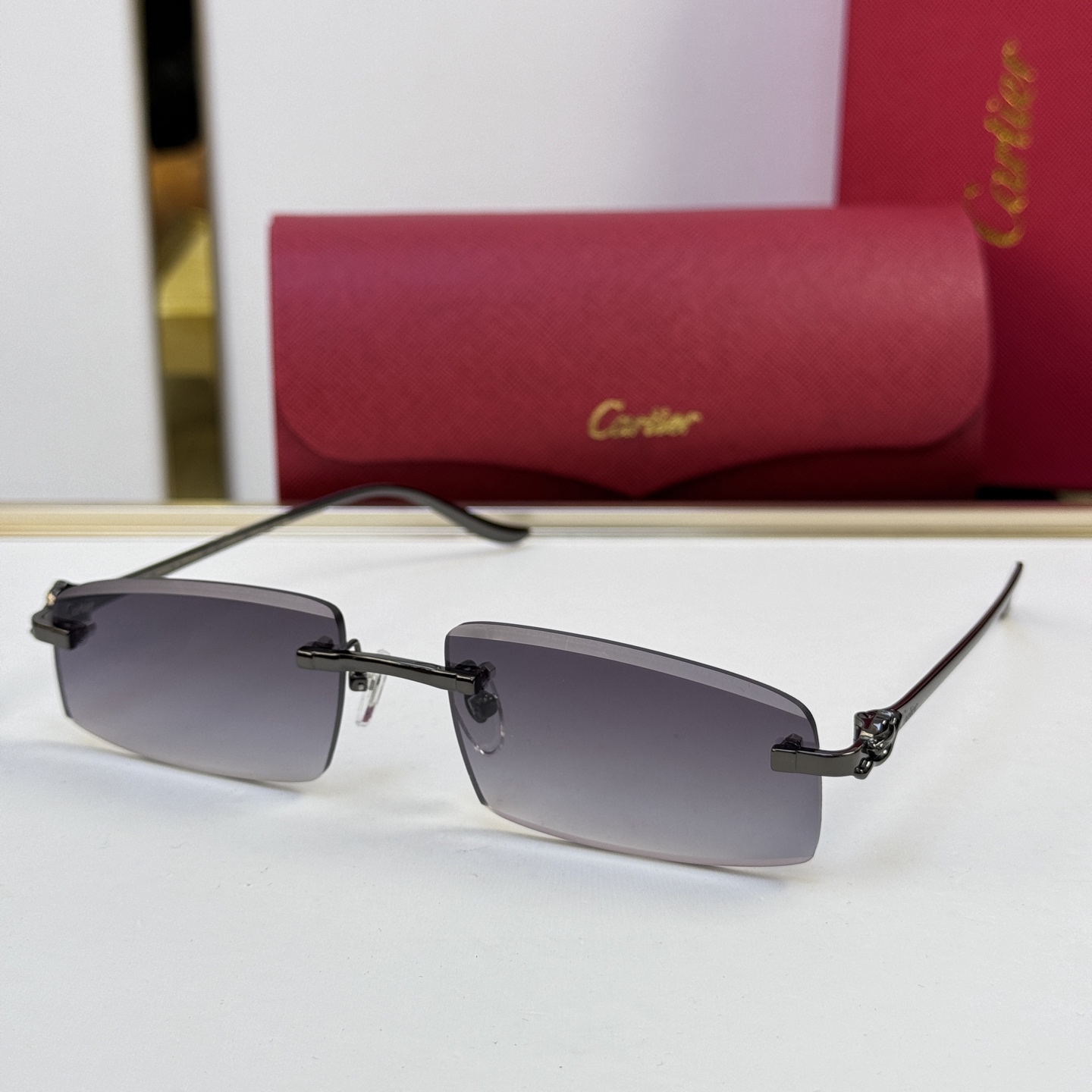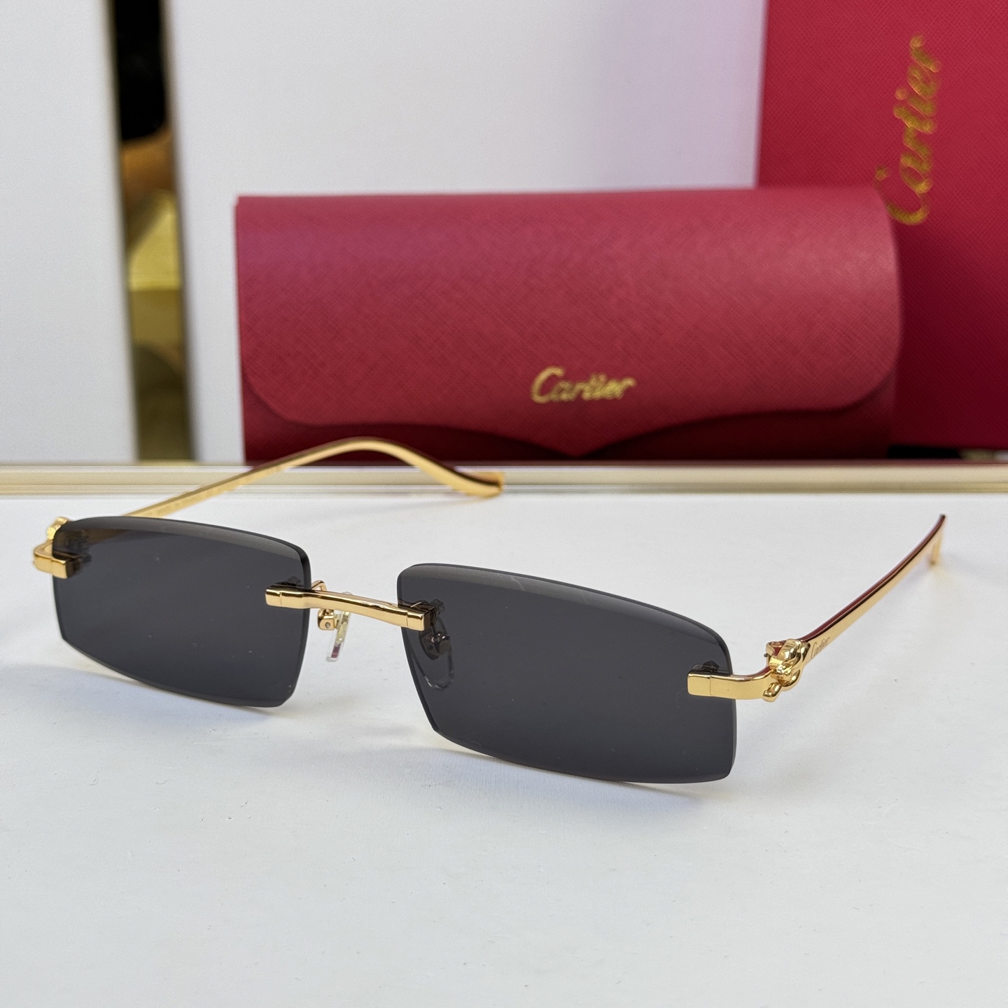 这款太阳眼镜是AAAAA 1:1 质量 (非常棒). 使用了和原版一模一样的材料. 商标部分也保持了和卡地亚/Cartier一样. 图片拍摄是实物太阳眼镜拍摄, 您所收到的实物保证和我们图片一模一样.