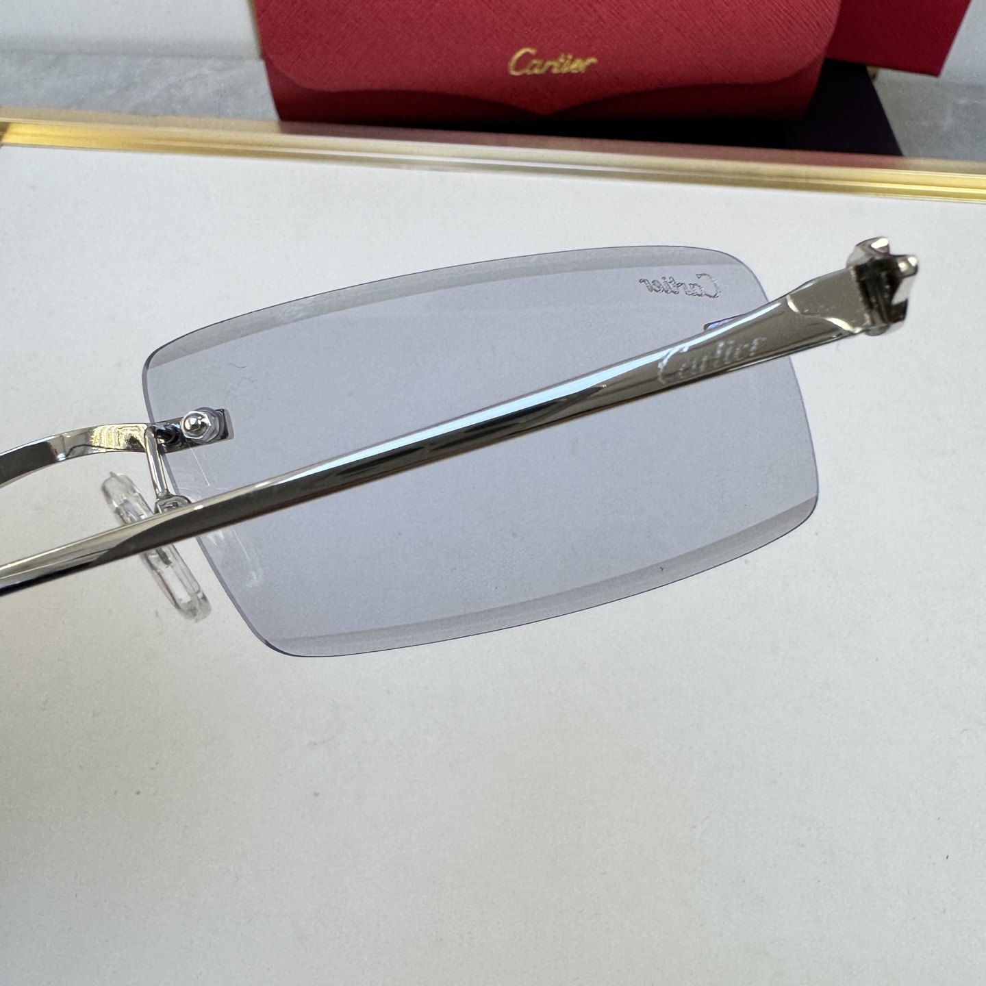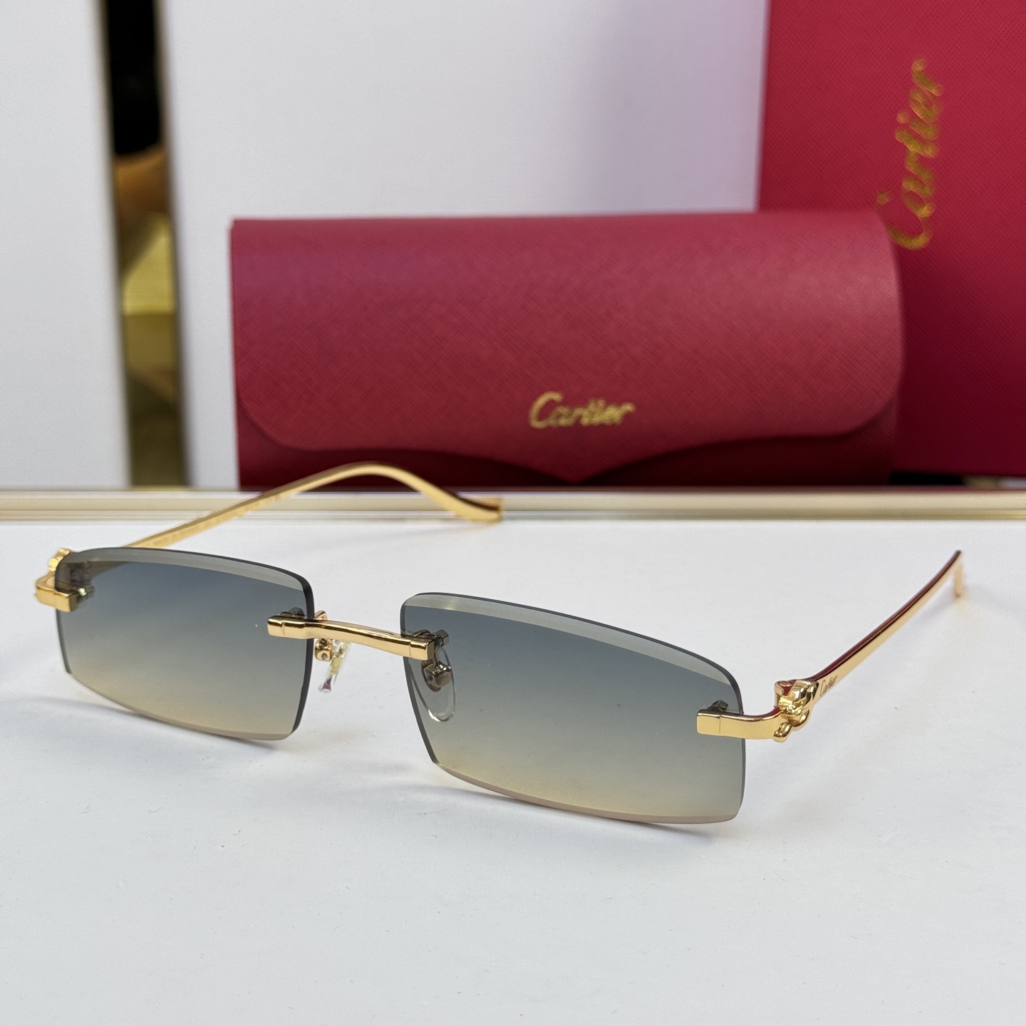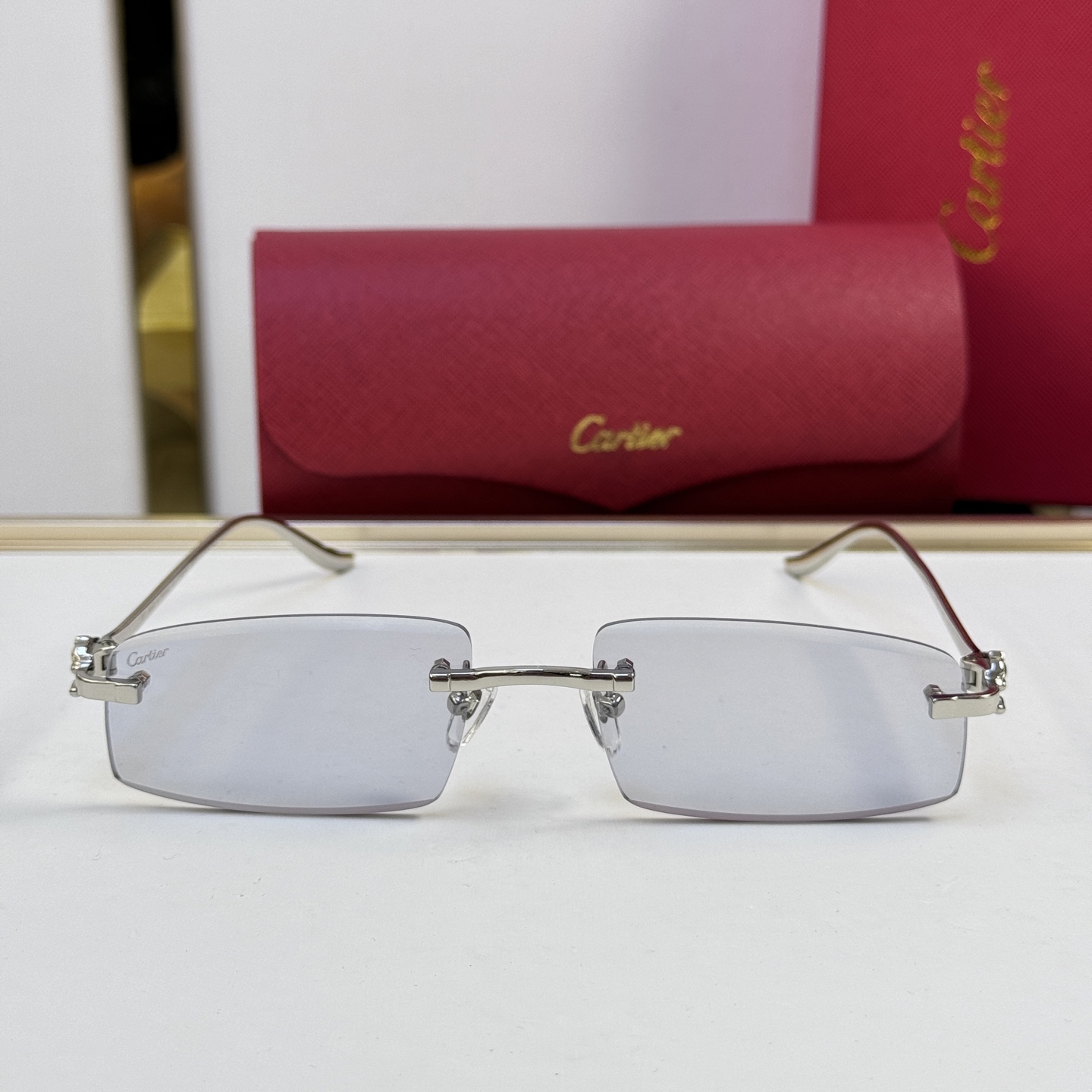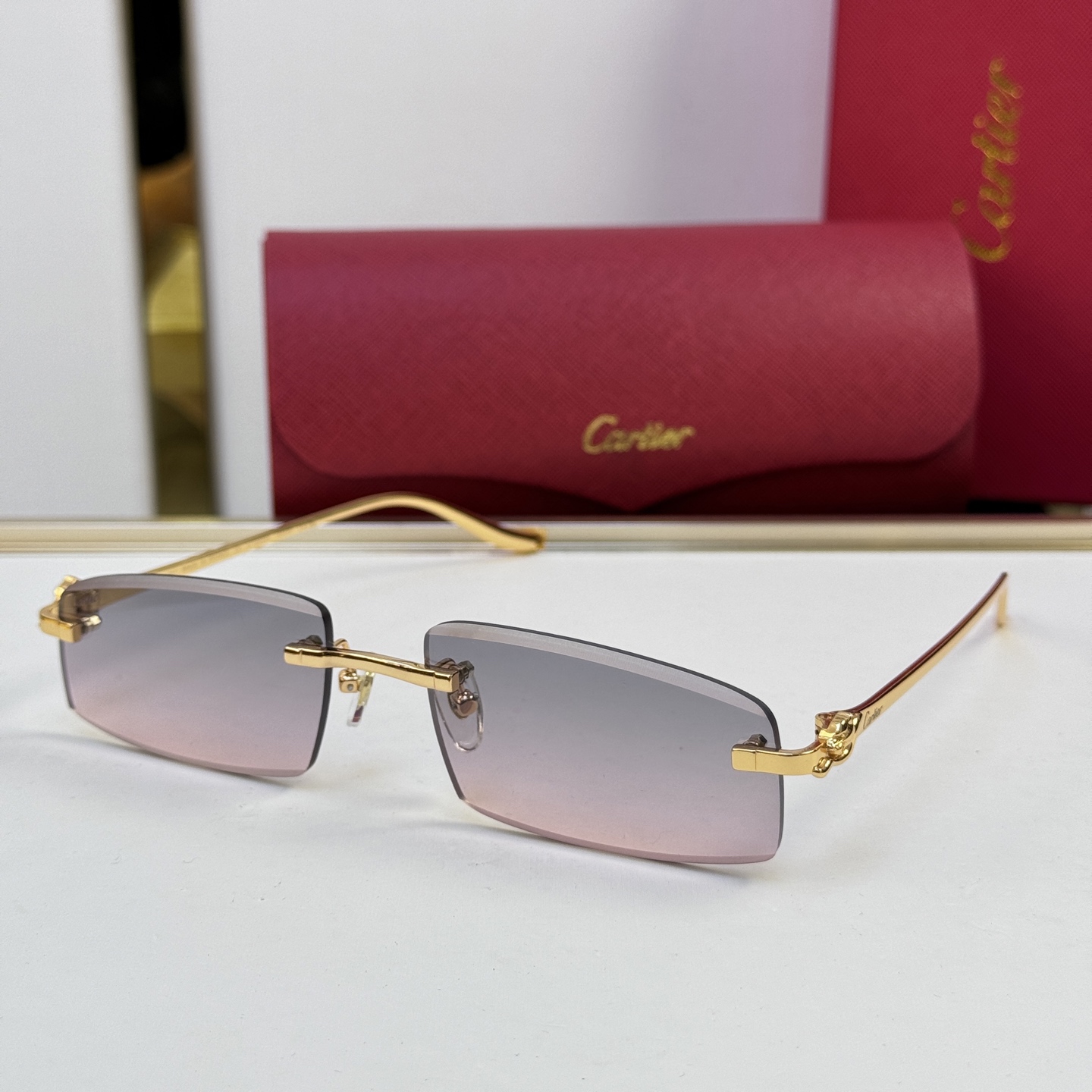 这款太阳眼镜是AAAAA 1:1 质量 (非常棒). 使用了和原版一模一样的材料. 商标部分也保持了和卡地亚/Cartier一样. 图片拍摄是实物太阳眼镜拍摄, 您所收到的实物保证和我们图片一模一样.