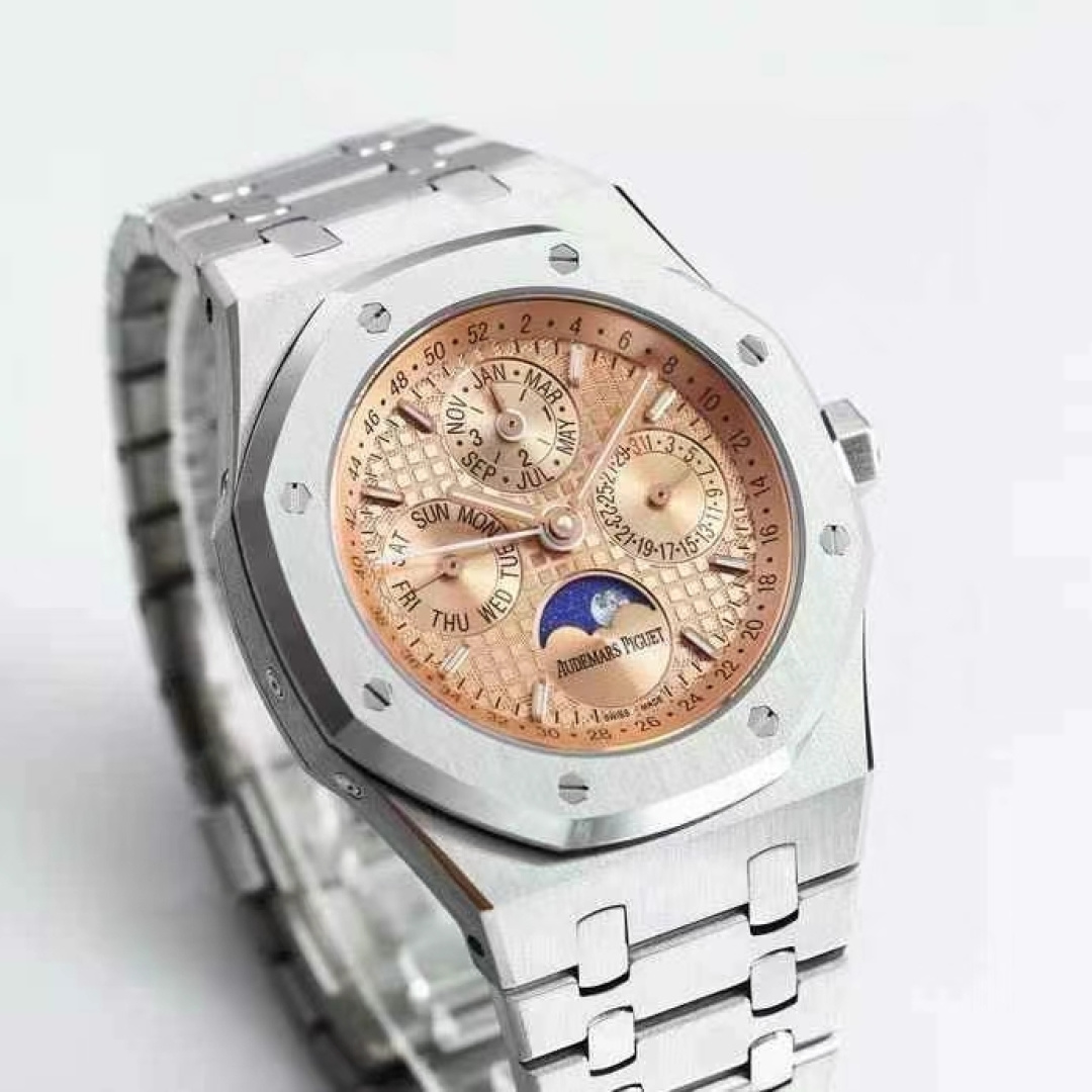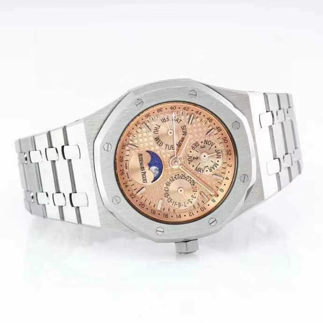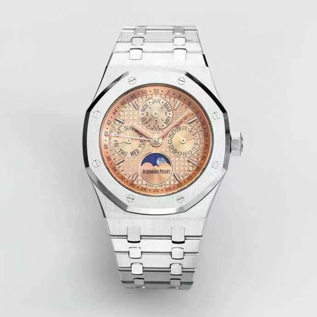这款手表是AAAAA 1:1 质量 (非常棒). 使用了和原版一模一样的材料. 商标部分也保持了和爱彼/Audemars Piguet一样. 图片拍摄是实物手表拍摄, 您所收到的实物保证和我们图片一模一样.
