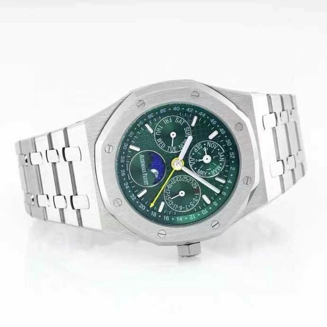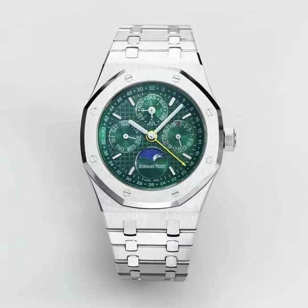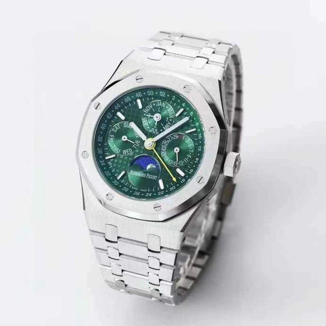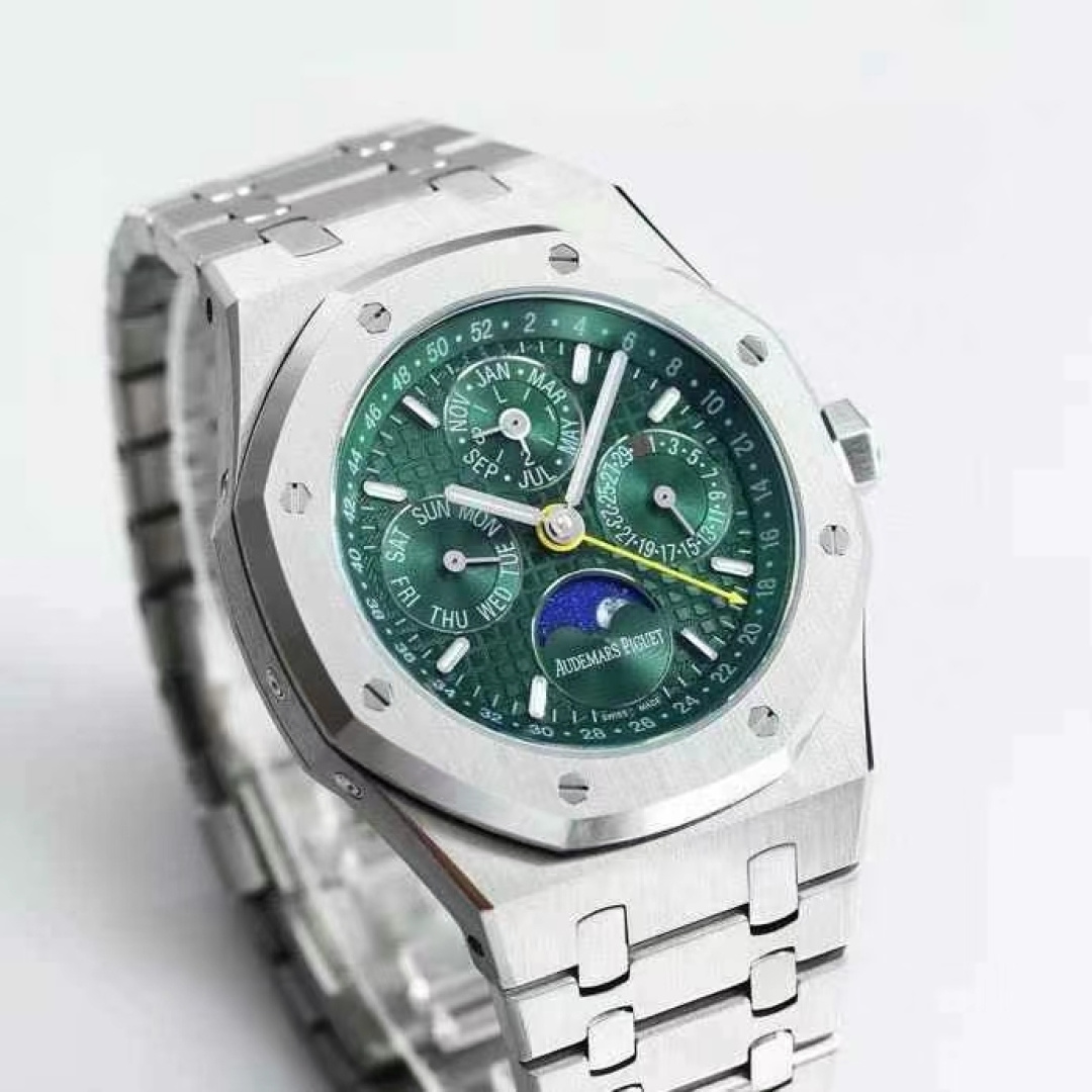 这款手表是AAAAA 1:1 质量 (非常棒). 使用了和原版一模一样的材料. 商标部分也保持了和爱彼/Audemars Piguet一样. 图片拍摄是实物手表拍摄, 您所收到的实物保证和我们图片一模一样.