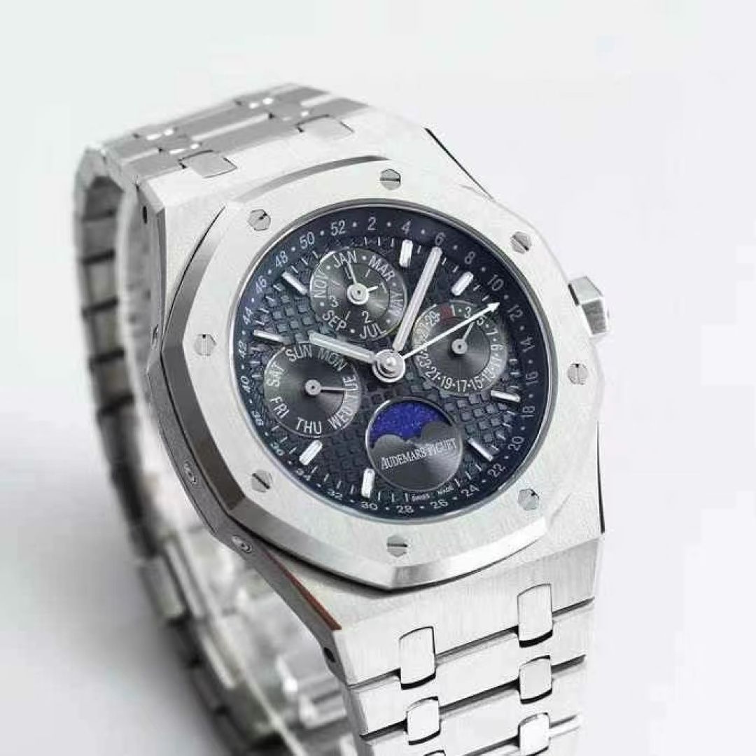 这款手表是AAAAA 1:1 质量 (非常棒). 使用了和原版一模一样的材料. 商标部分也保持了和爱彼/Audemars Piguet一样. 图片拍摄是实物手表拍摄, 您所收到的实物保证和我们图片一模一样.