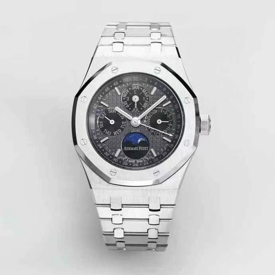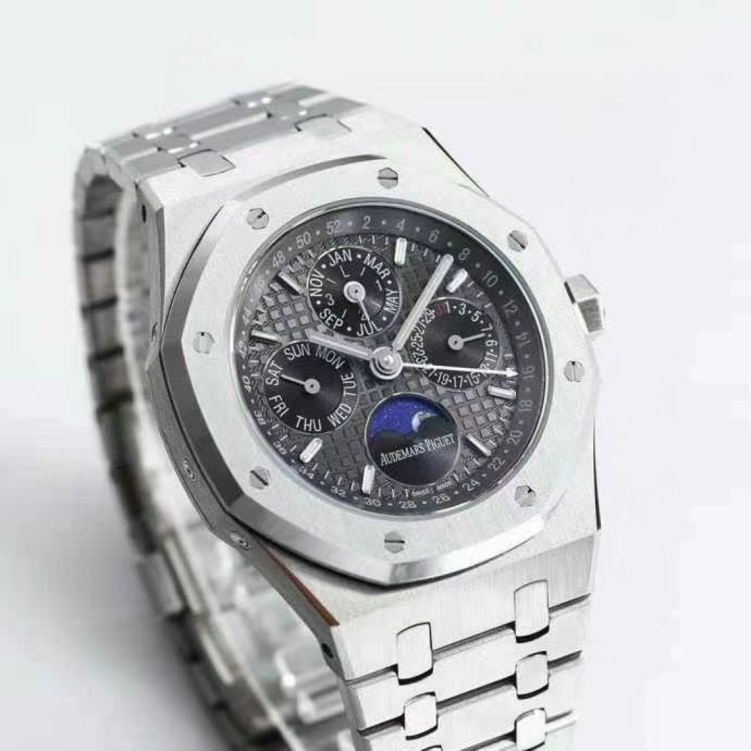 这款手表是AAAAA 1:1 质量 (非常棒). 使用了和原版一模一样的材料. 商标部分也保持了和爱彼/Audemars Piguet一样. 图片拍摄是实物手表拍摄, 您所收到的实物保证和我们图片一模一样.