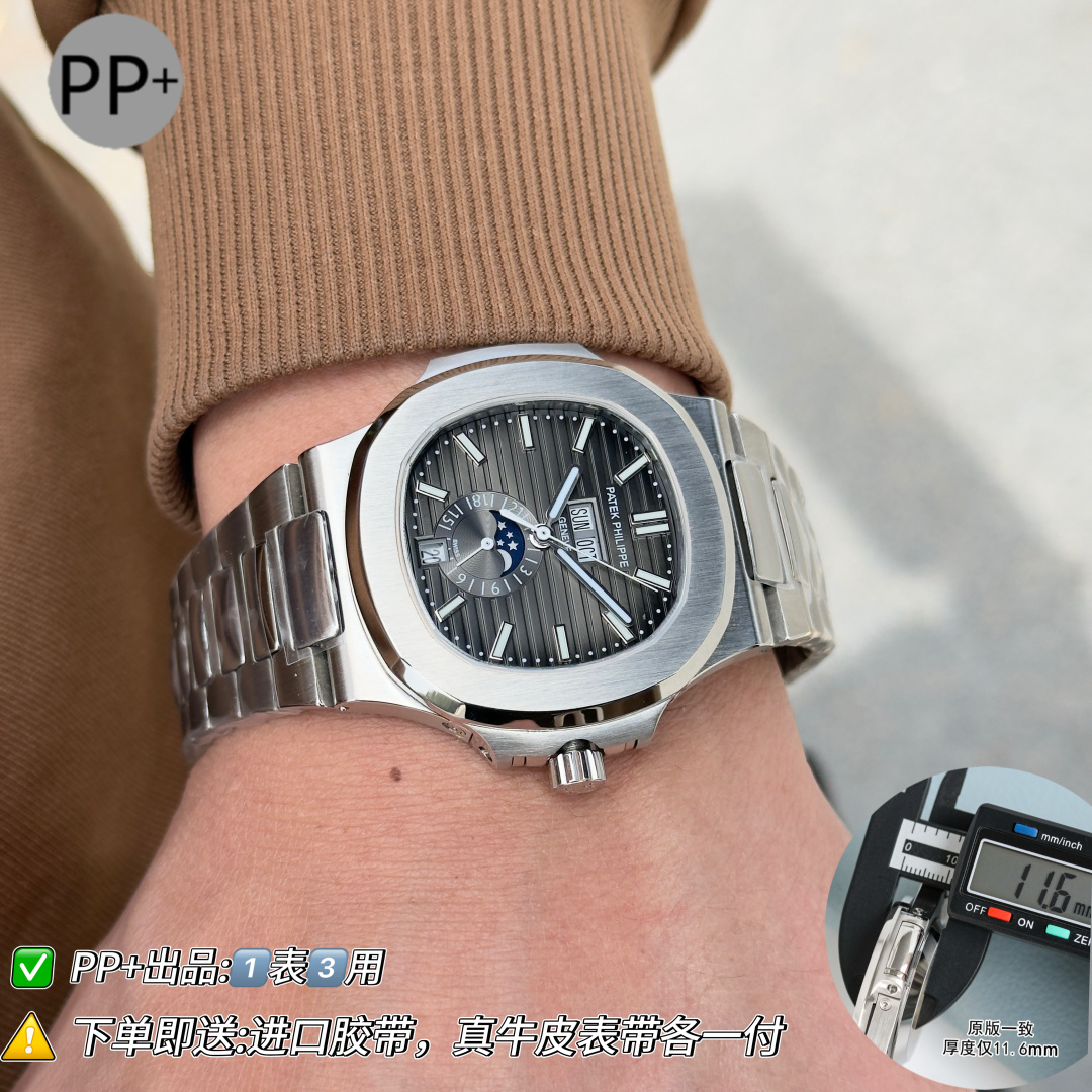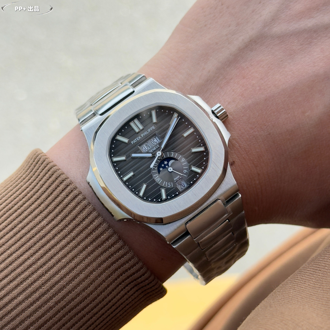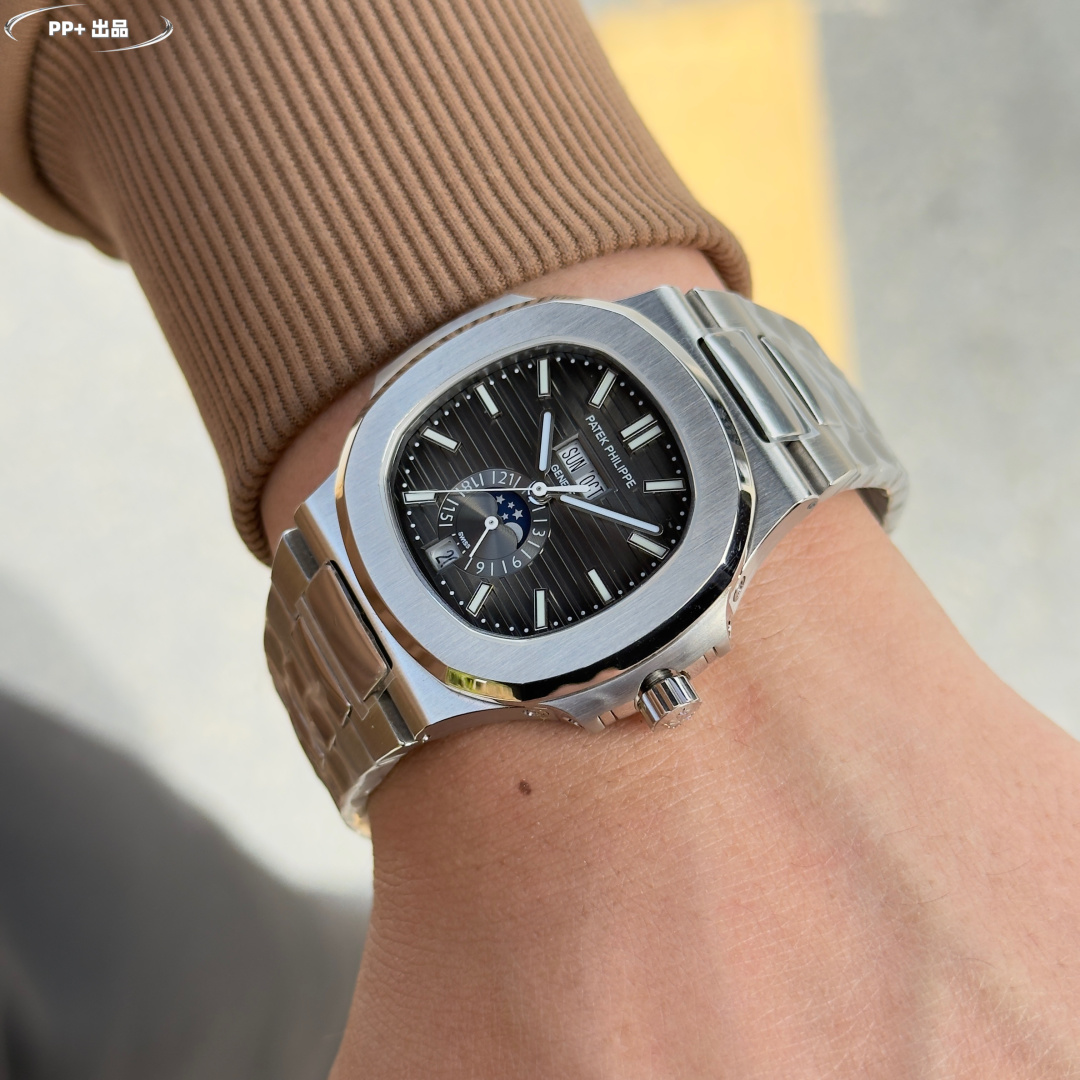 这款手表是AAAAA 1:1 质量 (非常棒). 使用了和原版一模一样的材料. 商标部分也保持了和百达翡丽/Patek Philippe一样. 图片拍摄是实物手表拍摄, 您所收到的实物保证和我们图片一模一样.