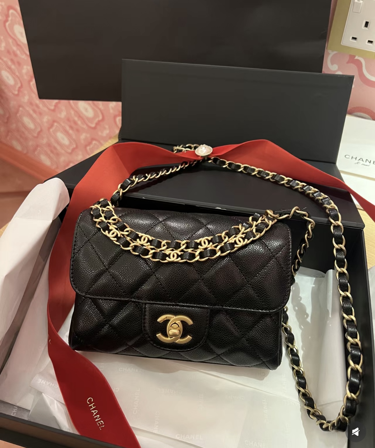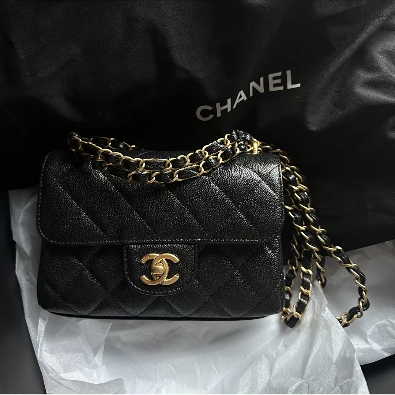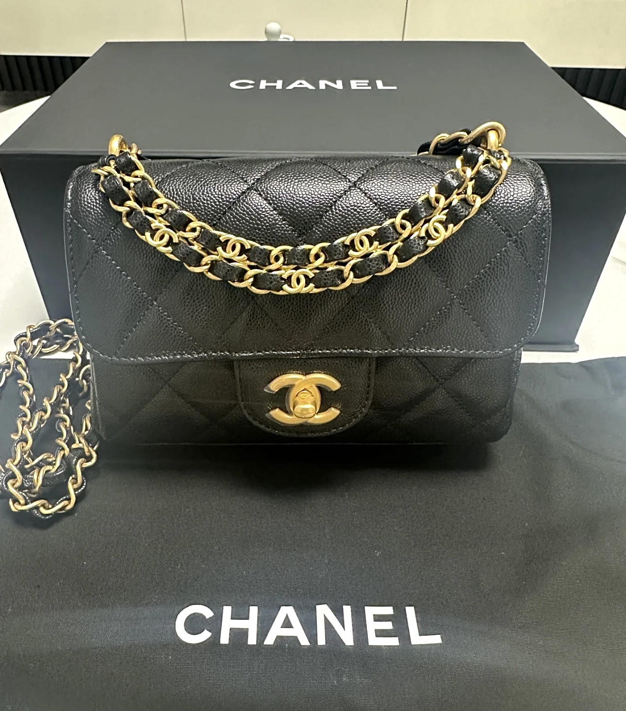 这款包包是AAAAA 1:1 质量 (非常棒). 使用了和原版一模一样的材料. 商标部分也保持了和香奈儿/Chanel一样. 图片拍摄是实物包包拍摄, 您所收到的实物保证和我们图片一模一样.