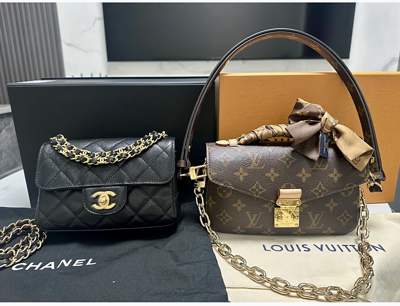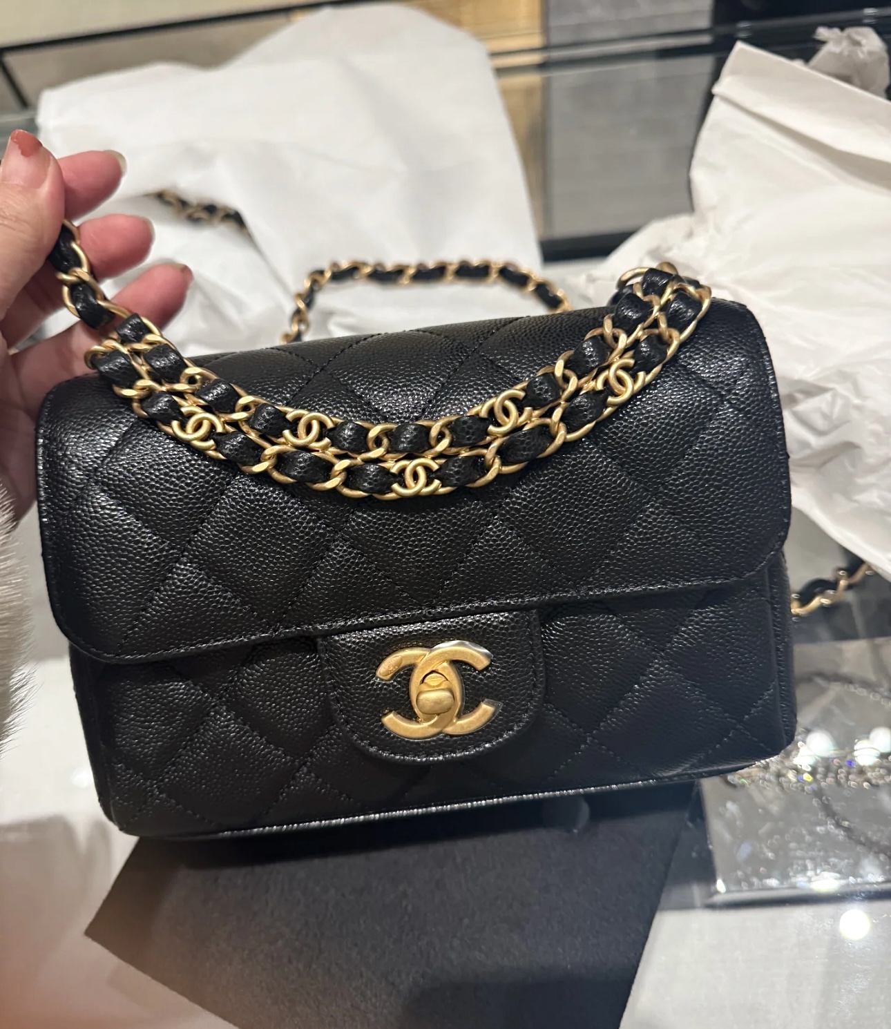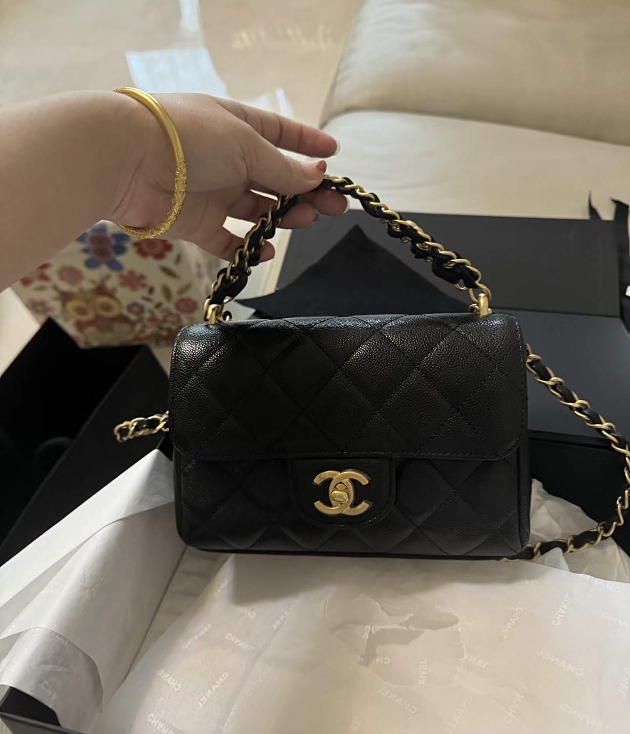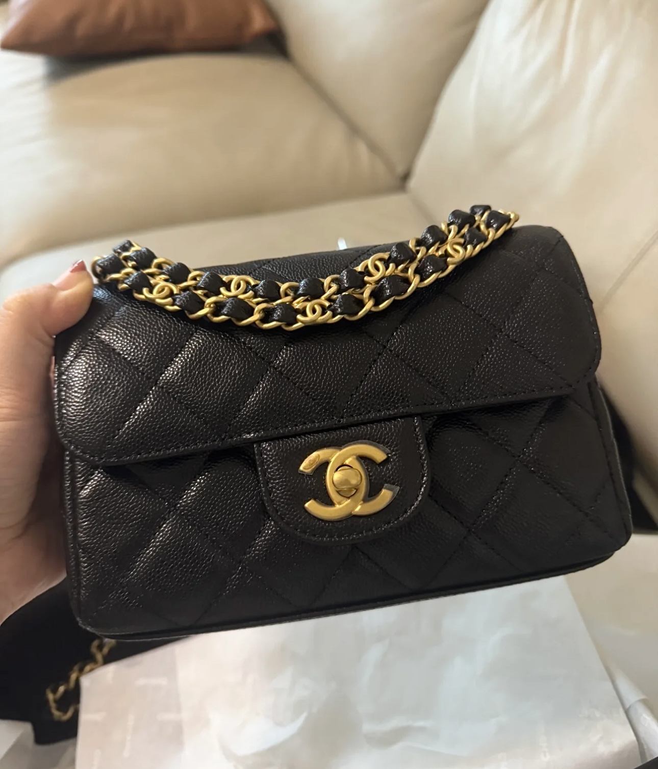 这款包包是AAAAA 1:1 质量 (非常棒). 使用了和原版一模一样的材料. 商标部分也保持了和香奈儿/Chanel一样. 图片拍摄是实物包包拍摄, 您所收到的实物保证和我们图片一模一样.