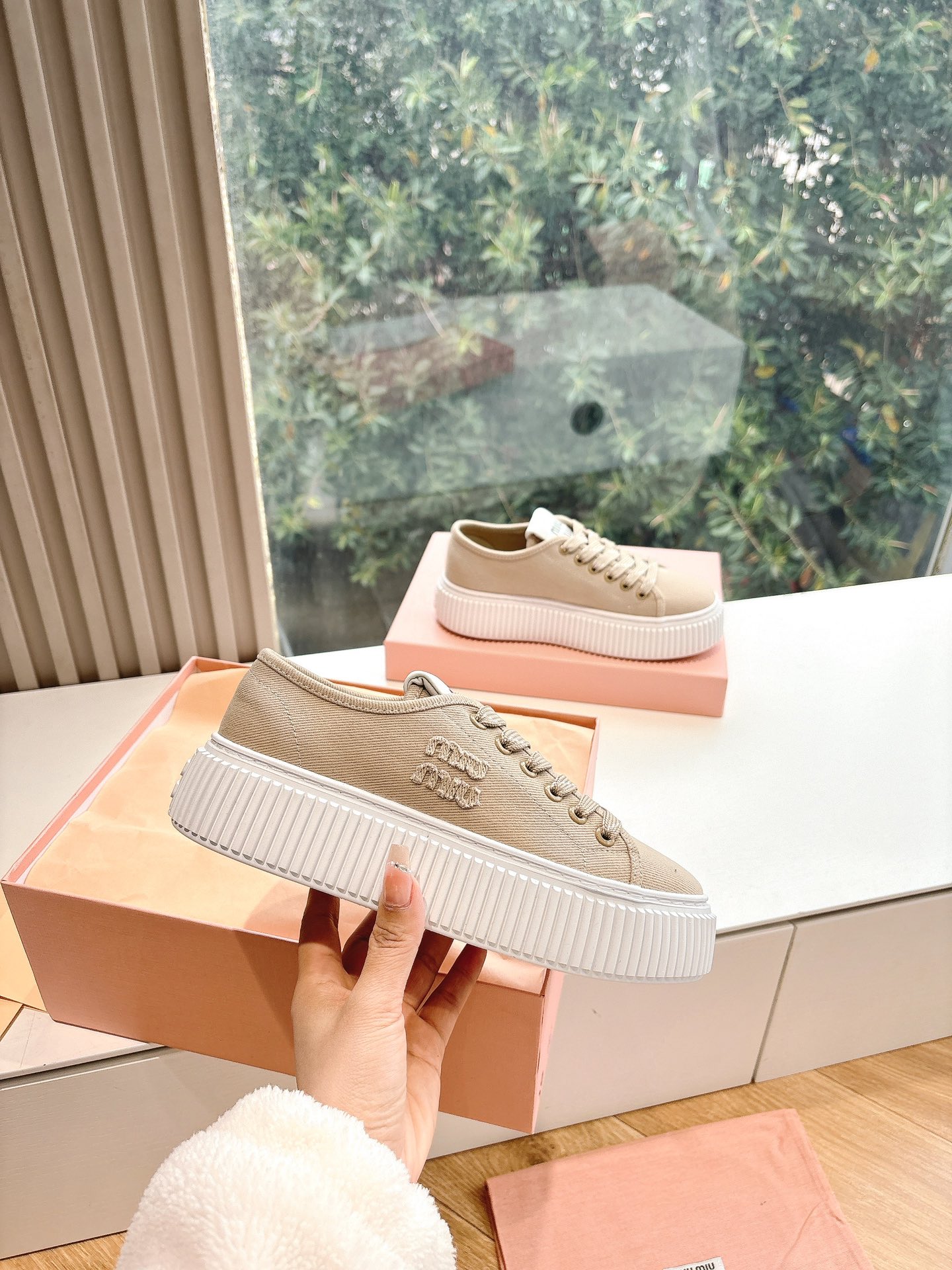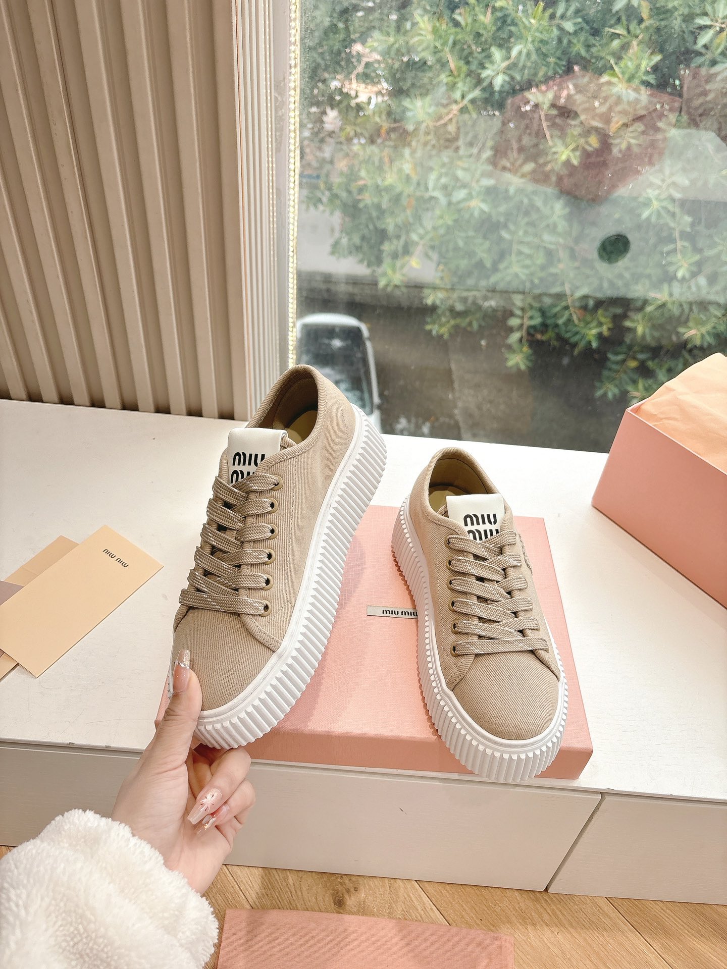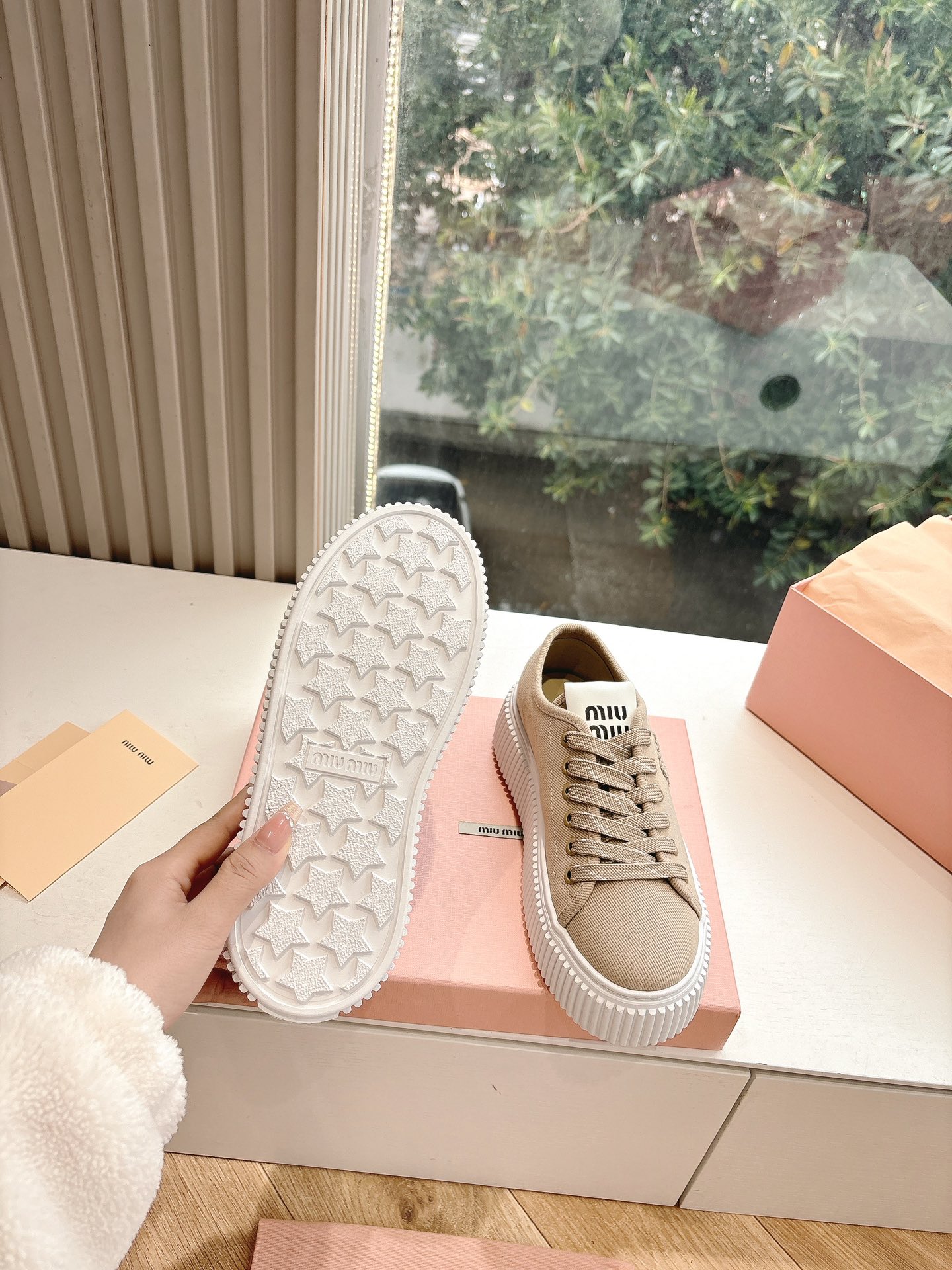 这款鞋子是AAAAA 1:1 质量 (非常棒). 使用了和原版一模一样的材料. 商标部分也保持了和缪缪/Miu Miu一样. 图片拍摄是实物鞋子拍摄, 您所收到的实物保证和我们图片一模一样.