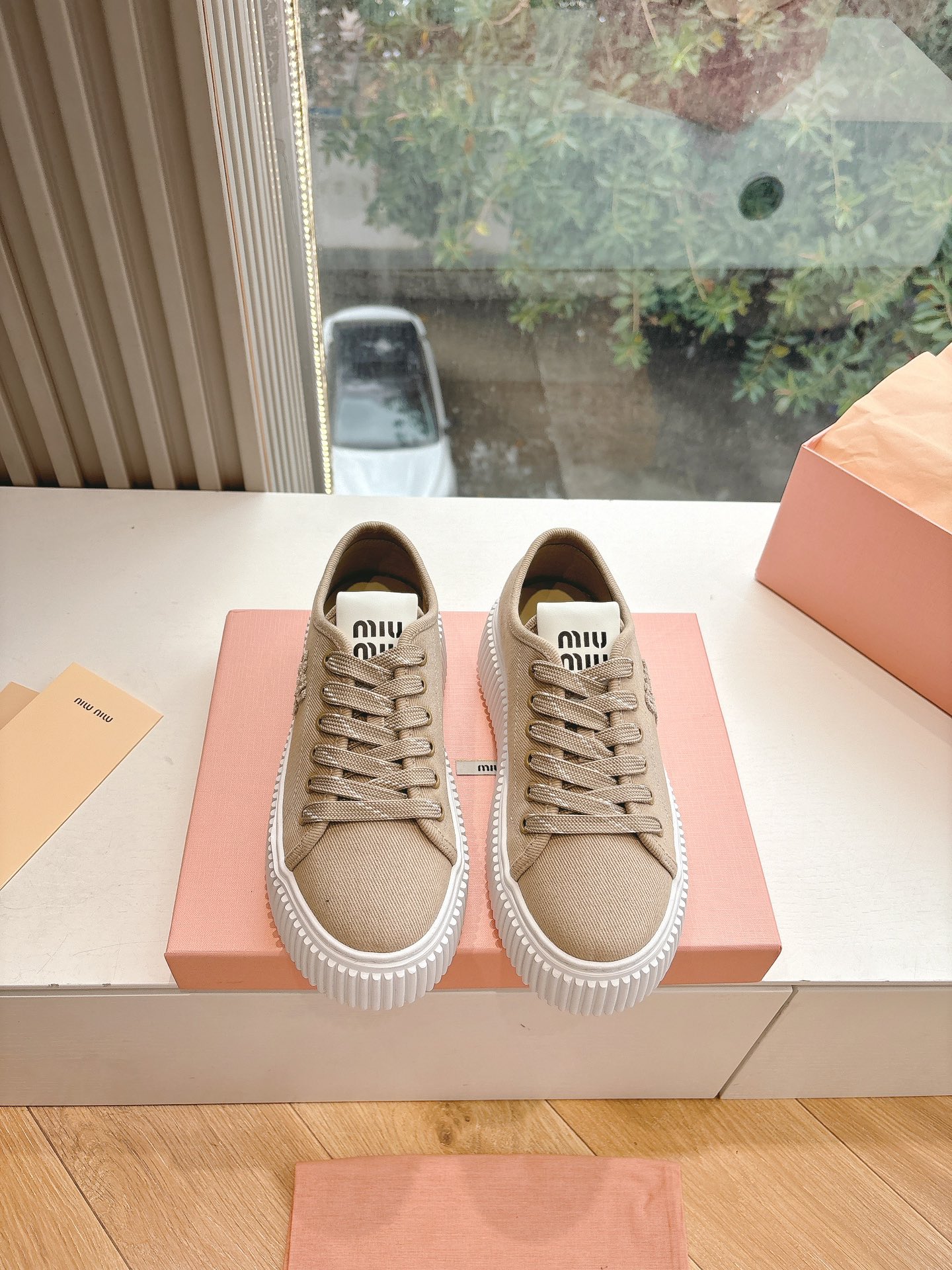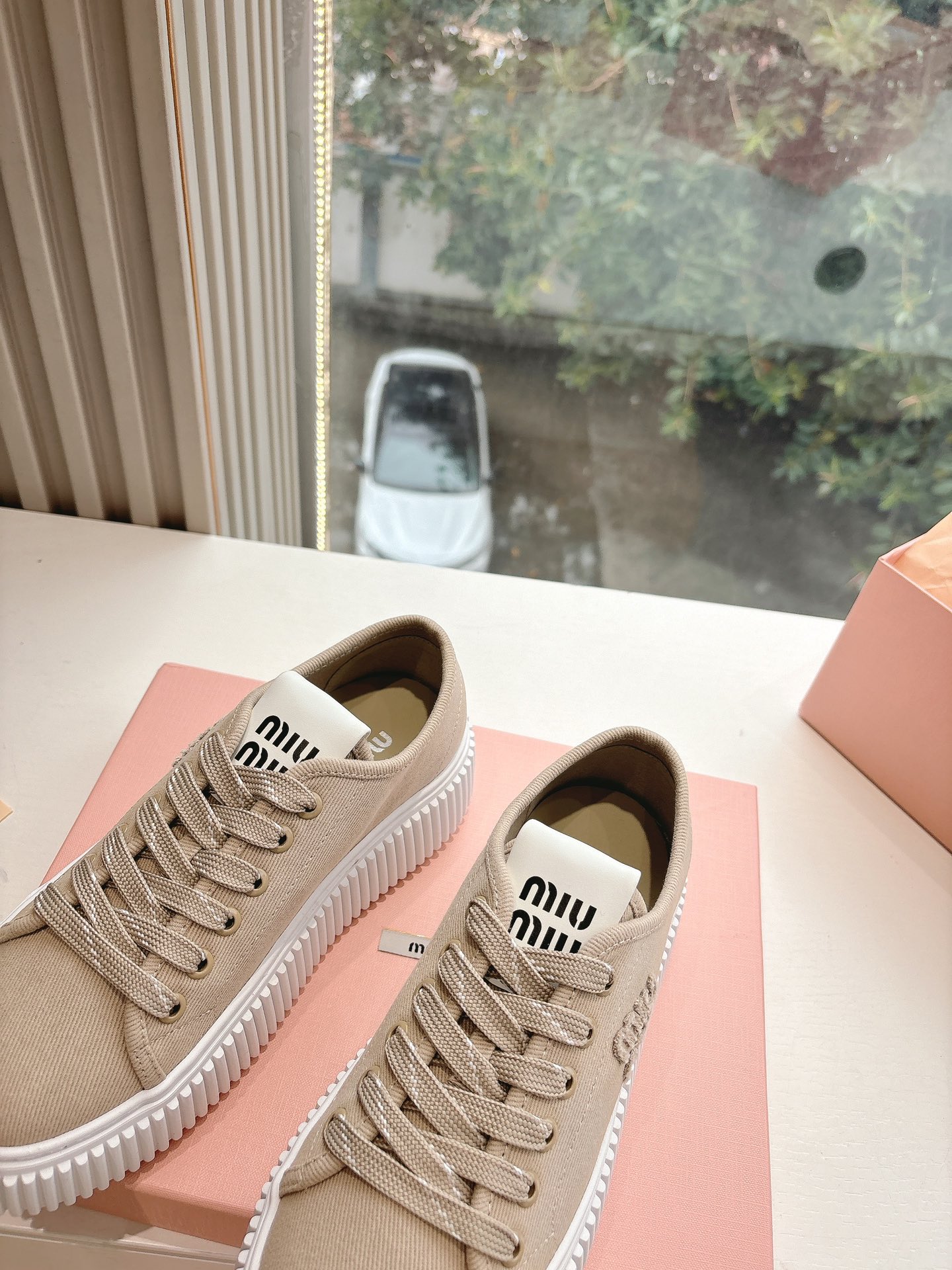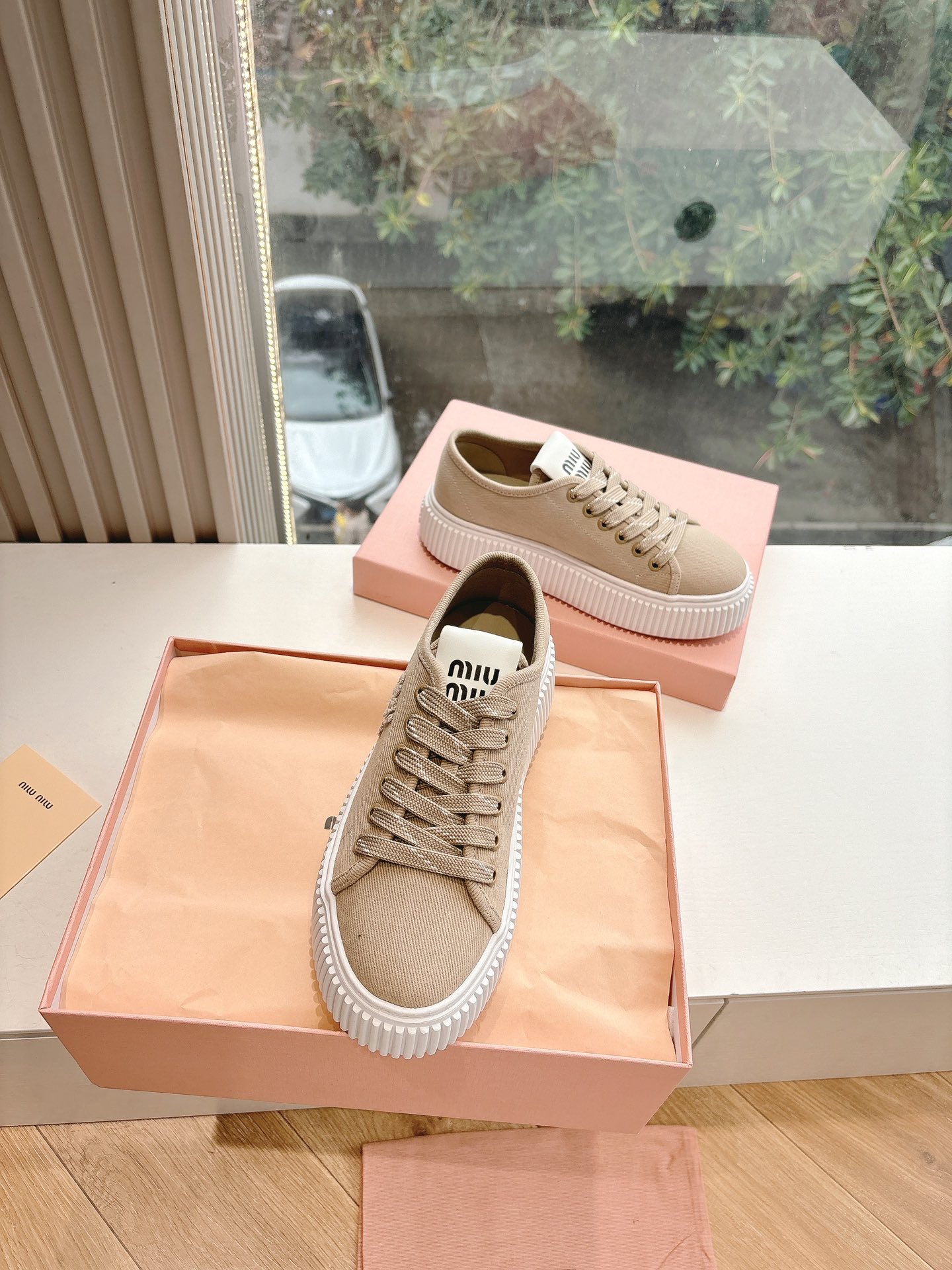 这款鞋子是AAAAA 1:1 质量 (非常棒). 使用了和原版一模一样的材料. 商标部分也保持了和缪缪/Miu Miu一样. 图片拍摄是实物鞋子拍摄, 您所收到的实物保证和我们图片一模一样.