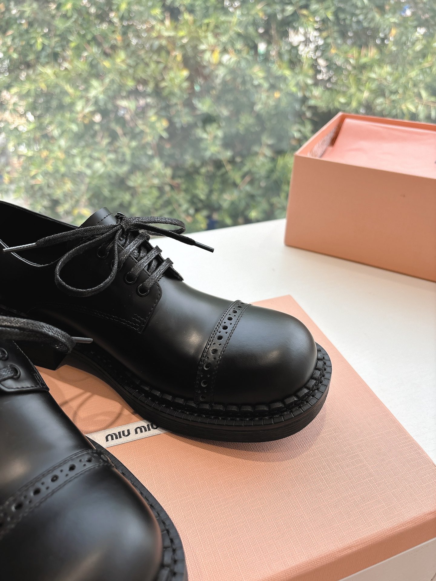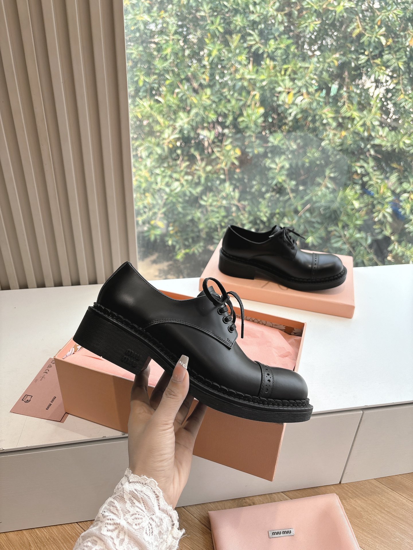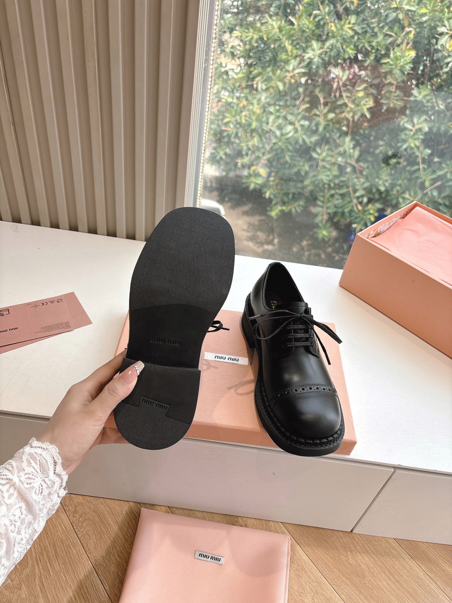 这款鞋子是AAAAA 1:1 质量 (非常棒). 使用了和原版一模一样的材料. 商标部分也保持了和缪缪/Miu Miu一样. 图片拍摄是实物鞋子拍摄, 您所收到的实物保证和我们图片一模一样.