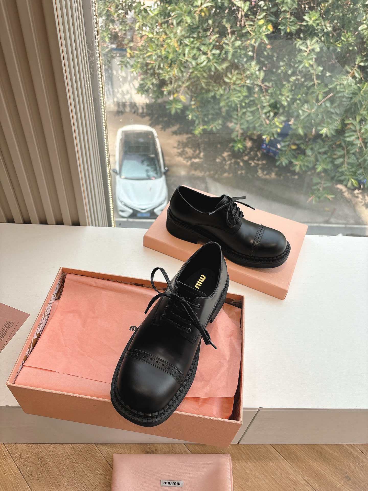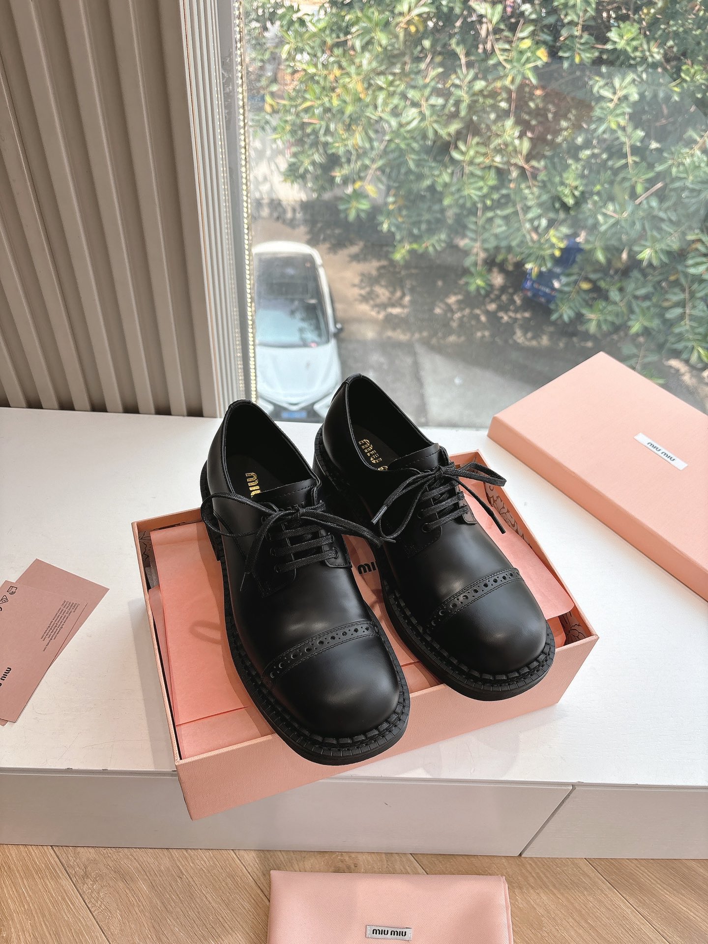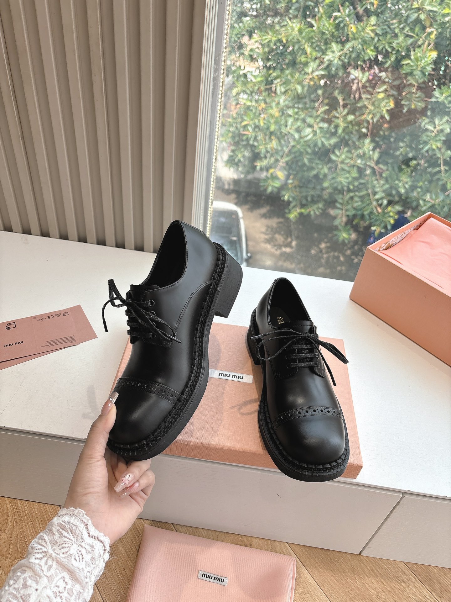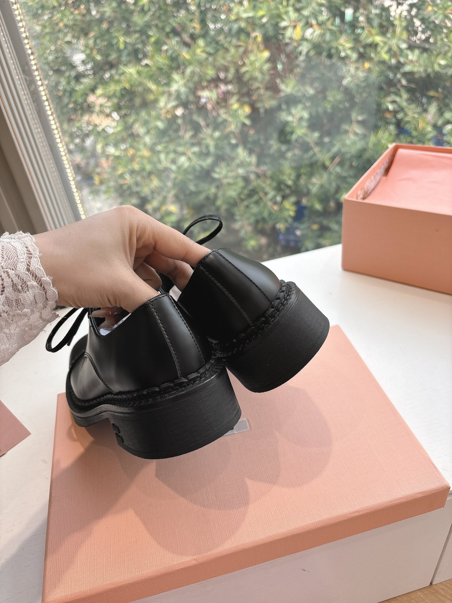 这款鞋子是AAAAA 1:1 质量 (非常棒). 使用了和原版一模一样的材料. 商标部分也保持了和缪缪/Miu Miu一样. 图片拍摄是实物鞋子拍摄, 您所收到的实物保证和我们图片一模一样.