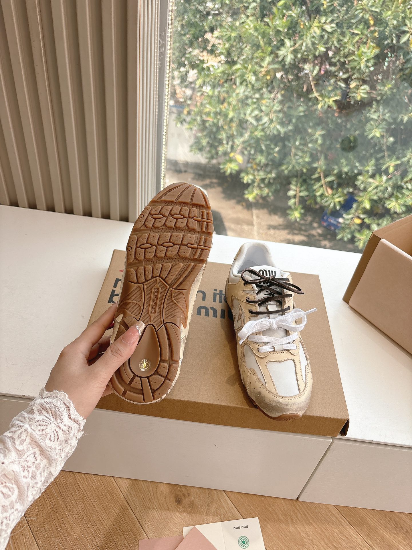 这款鞋子是AAAAA 1:1 质量 (非常棒). 使用了和原版一模一样的材料. 商标部分也保持了和缪缪/Miu Miu一样. 图片拍摄是实物鞋子拍摄, 您所收到的实物保证和我们图片一模一样.