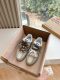 这款鞋子是AAAAA 1:1 质量 (非常棒). 使用了和原版一模一样的材料. 商标部分也保持了和缪缪/Miu Miu一样. 图片拍摄是实物鞋子拍摄, 您所收到的实物保证和我们图片一模一样.