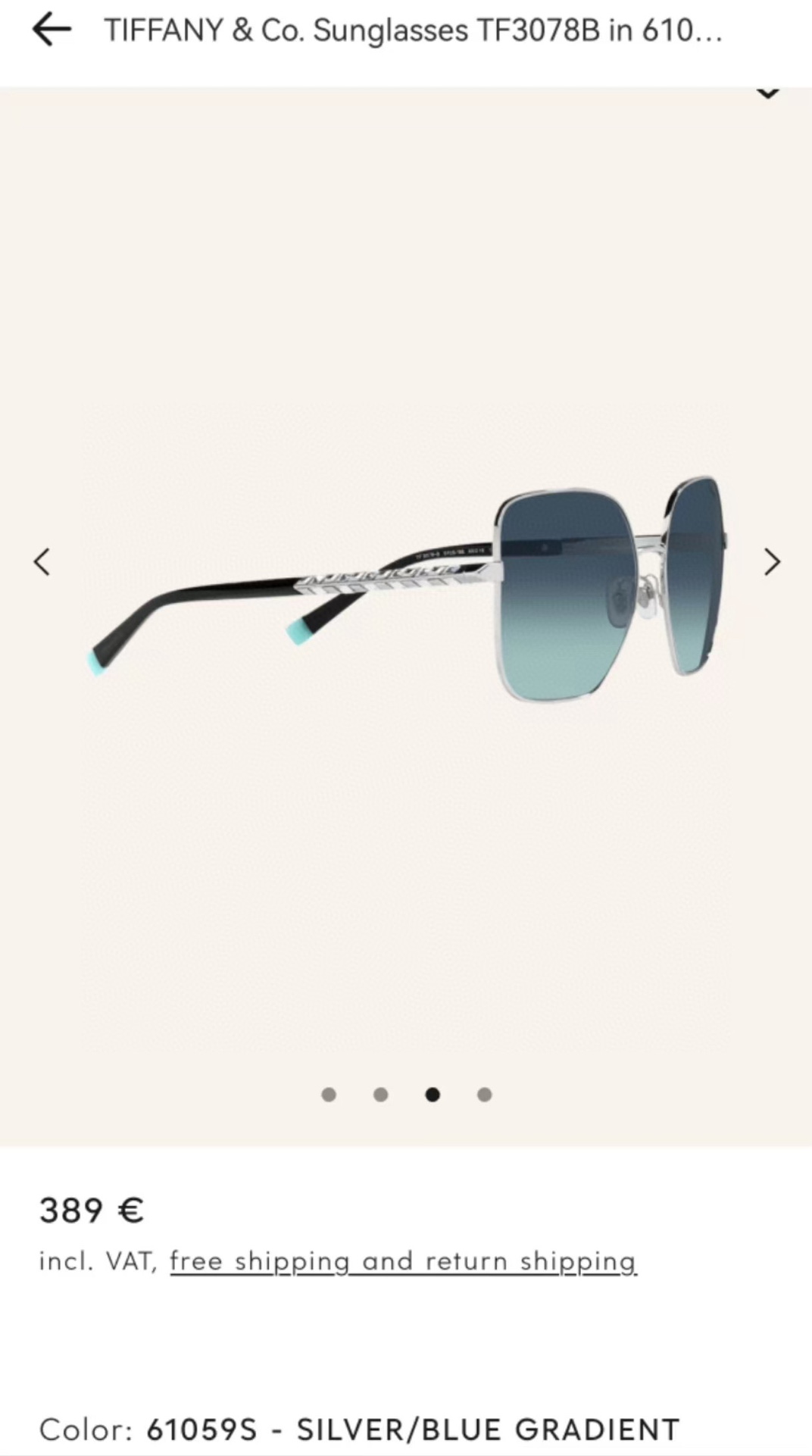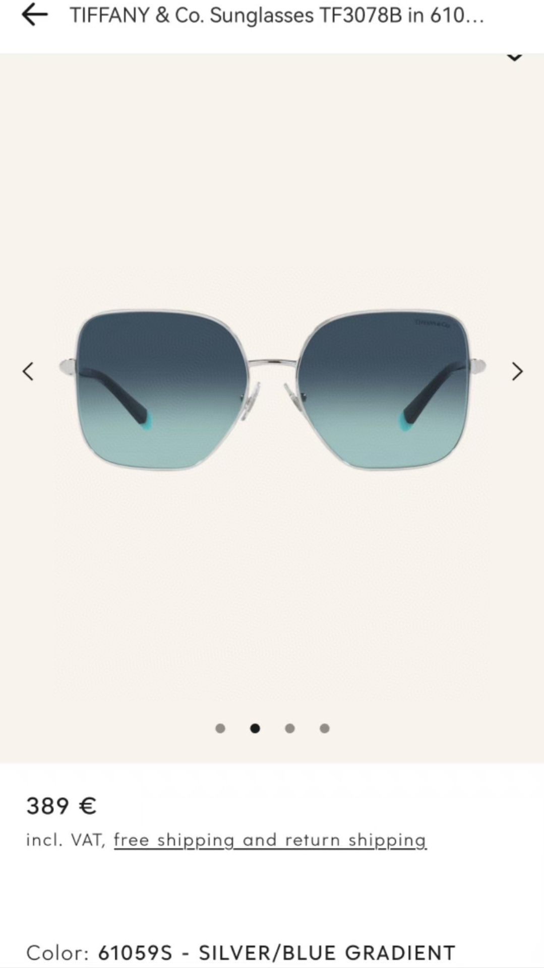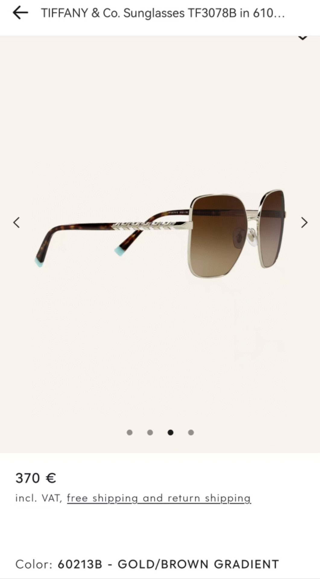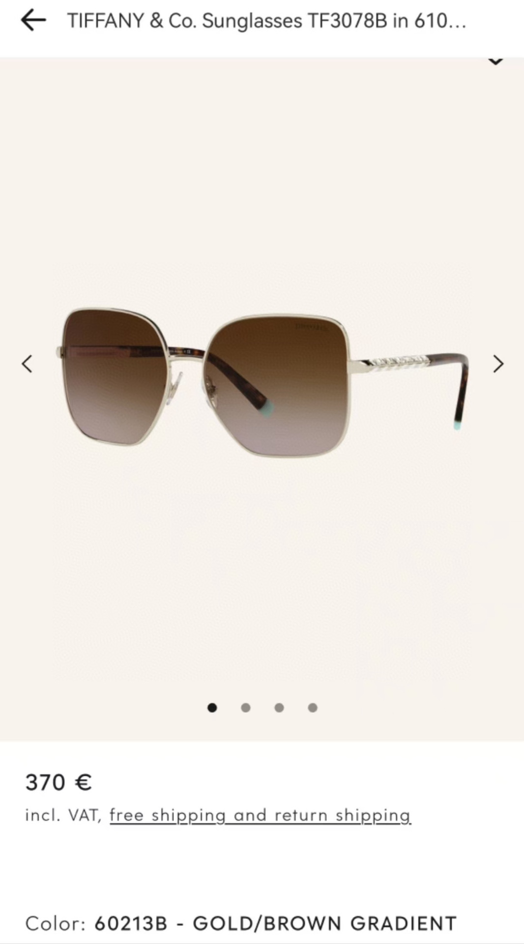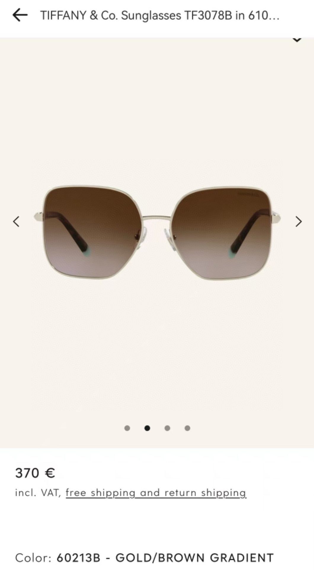 这款太阳眼镜是AAAAA 1:1 质量 (非常棒). 使用了和原版一模一样的材料. 商标部分也保持了和蒂芙尼/Tiffany一样. 图片拍摄是实物太阳眼镜拍摄, 您所收到的实物保证和我们图片一模一样.