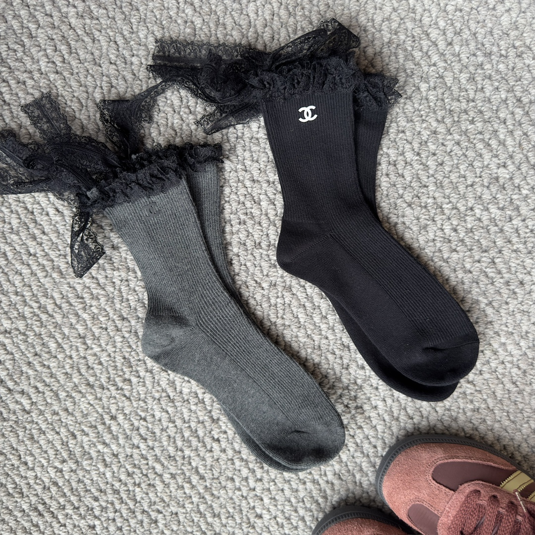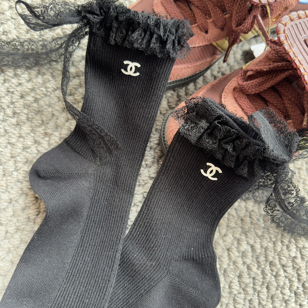 这款sock是AAAAA 1:1 质量 (非常棒). 使用了和原版一模一样的材料. 商标部分也保持了和香奈儿/Chanel一样. 图片拍摄是实物sock拍摄, 您所收到的实物保证和我们图片一模一样.