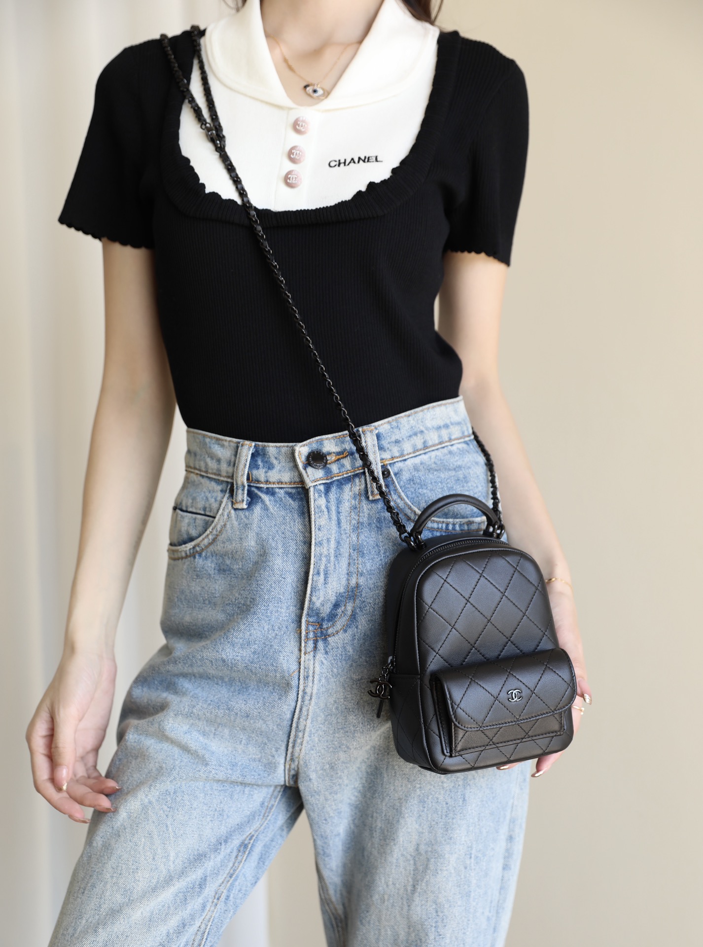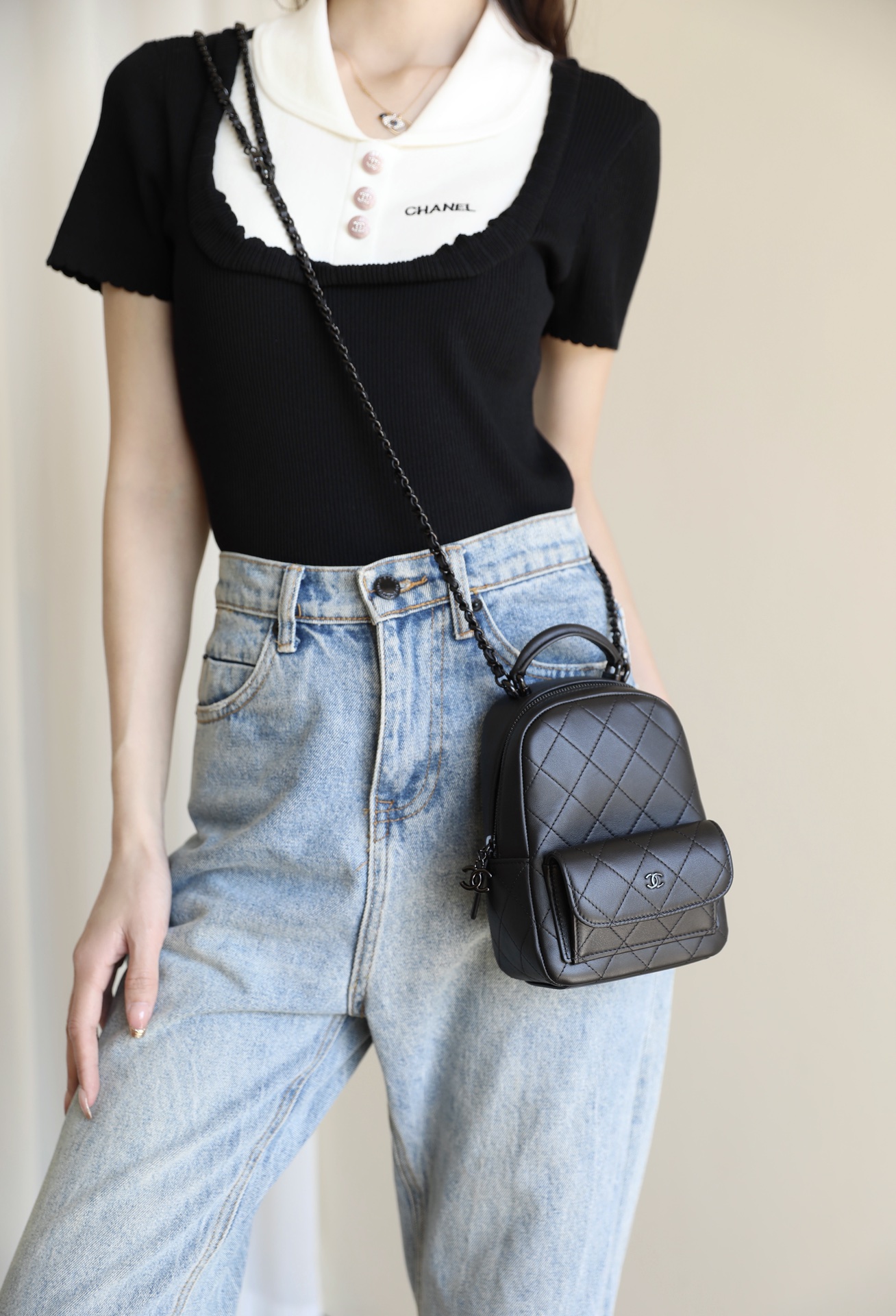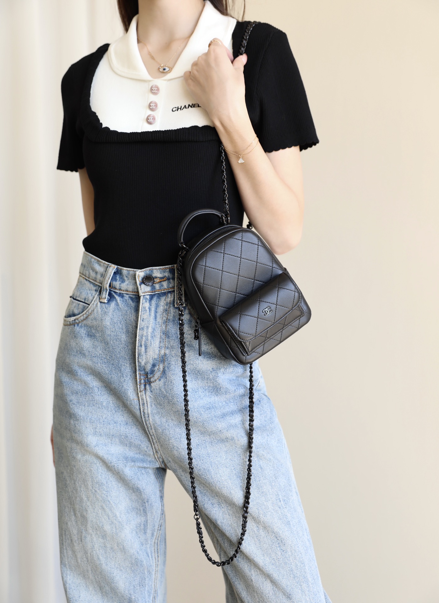 这款包包是AAAAA 1:1 质量 (非常棒). 使用了和原版一模一样的材料. 商标部分也保持了和香奈儿/Chanel一样. 图片拍摄是实物包包拍摄, 您所收到的实物保证和我们图片一模一样.