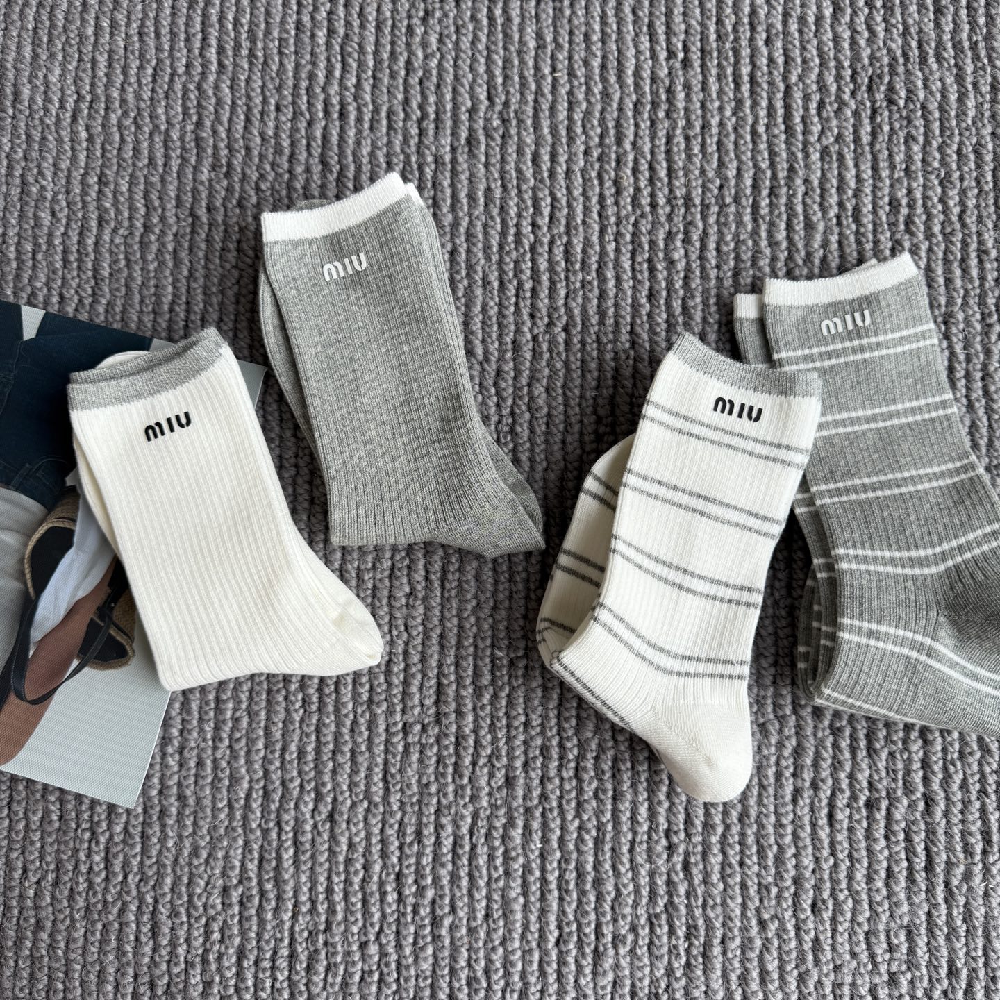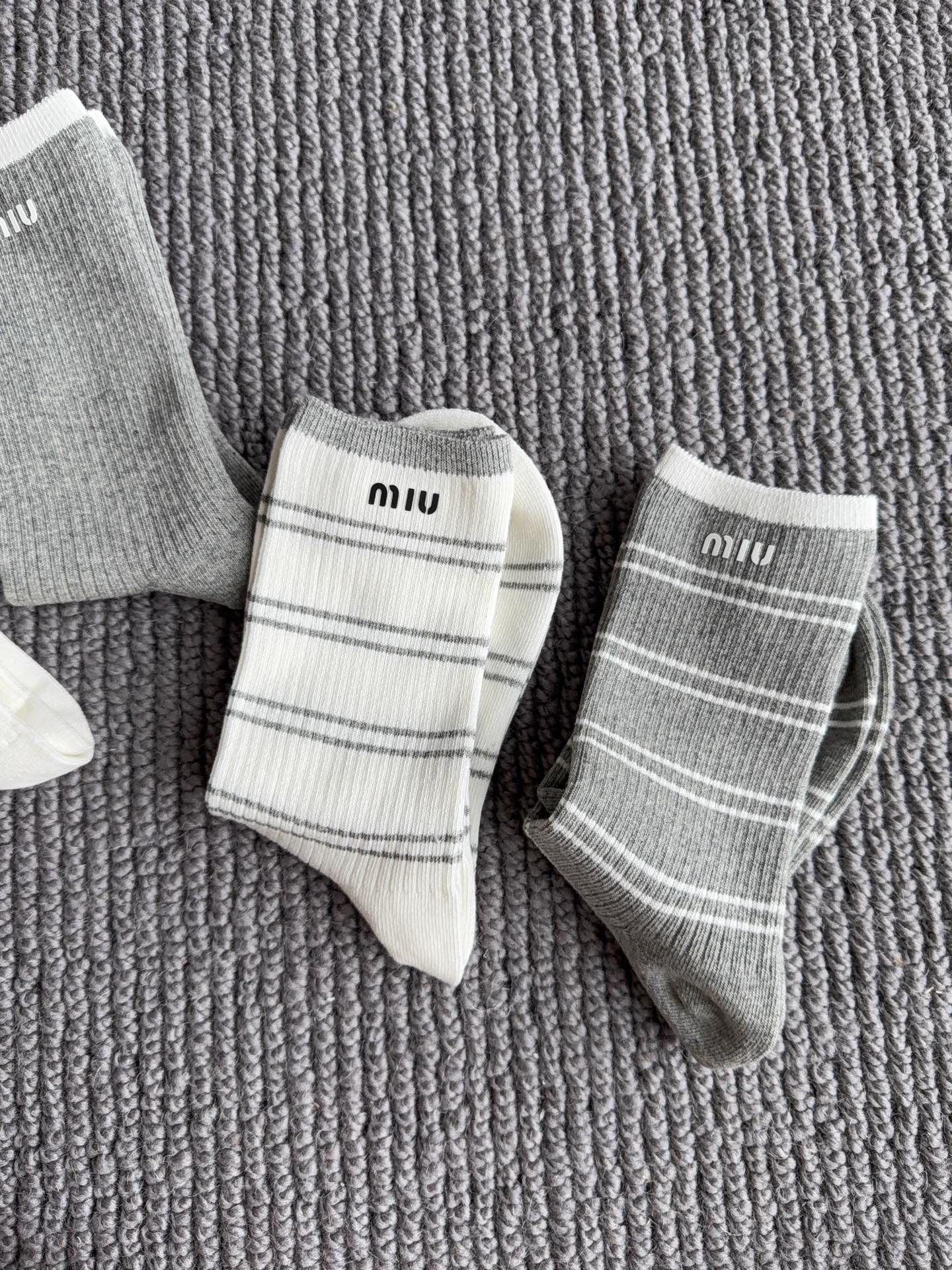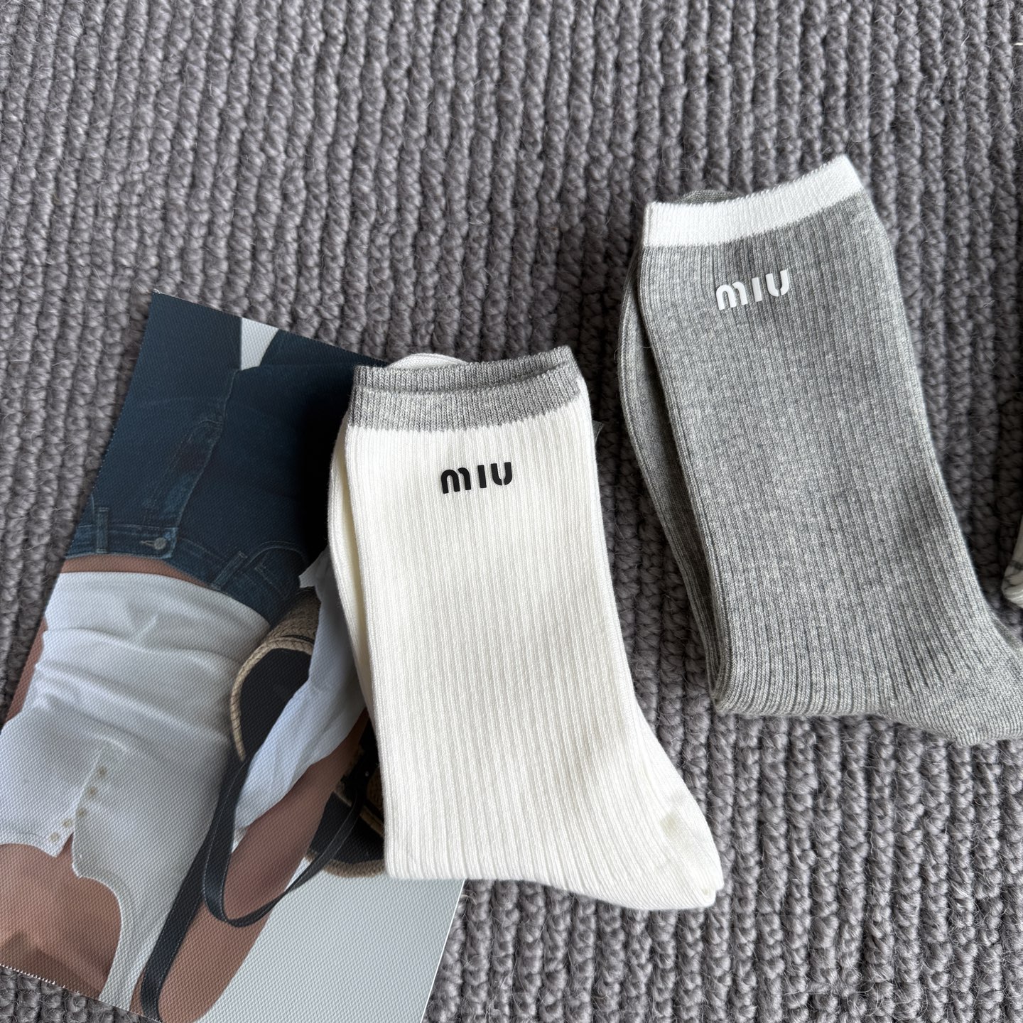 这款sock是AAAAA 1:1 质量 (非常棒). 使用了和原版一模一样的材料. 商标部分也保持了和缪缪/Miu Miu一样. 图片拍摄是实物sock拍摄, 您所收到的实物保证和我们图片一模一样.