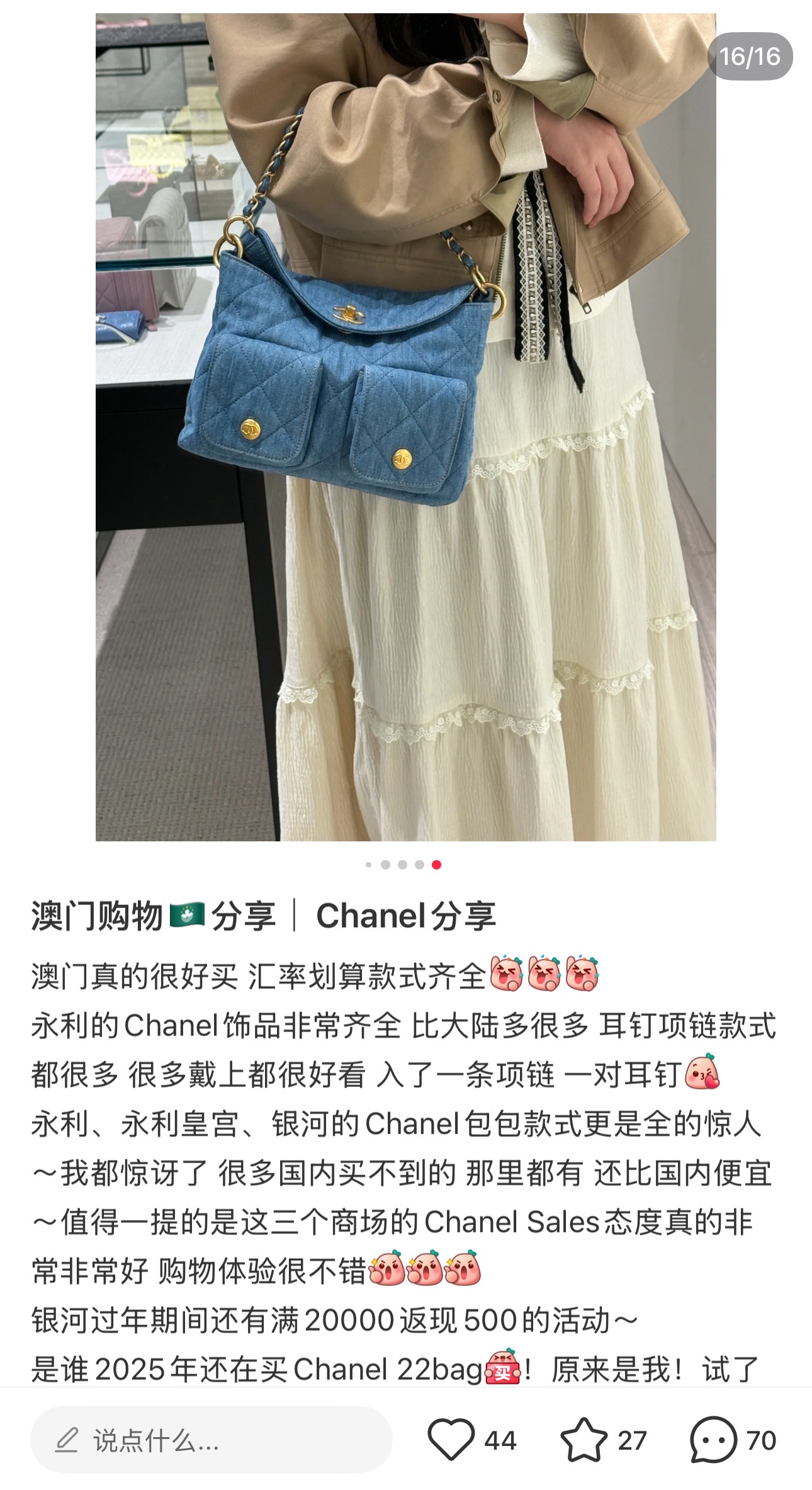 这款包包是AAAAA 1:1 质量 (非常棒). 使用了和原版一模一样的材料. 商标部分也保持了和香奈儿/Chanel一样. 图片拍摄是实物包包拍摄, 您所收到的实物保证和我们图片一模一样.